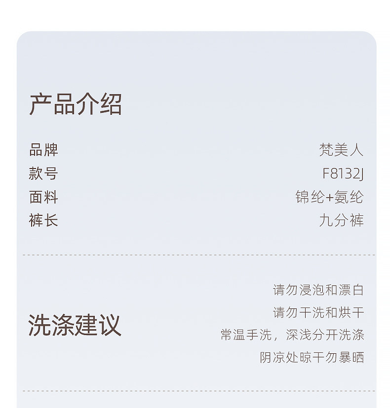 梵美人 F8132 瑜伽蜜桃臀九分裤 莱卡云感 有松紧 无尴尬线