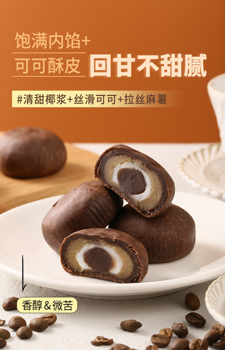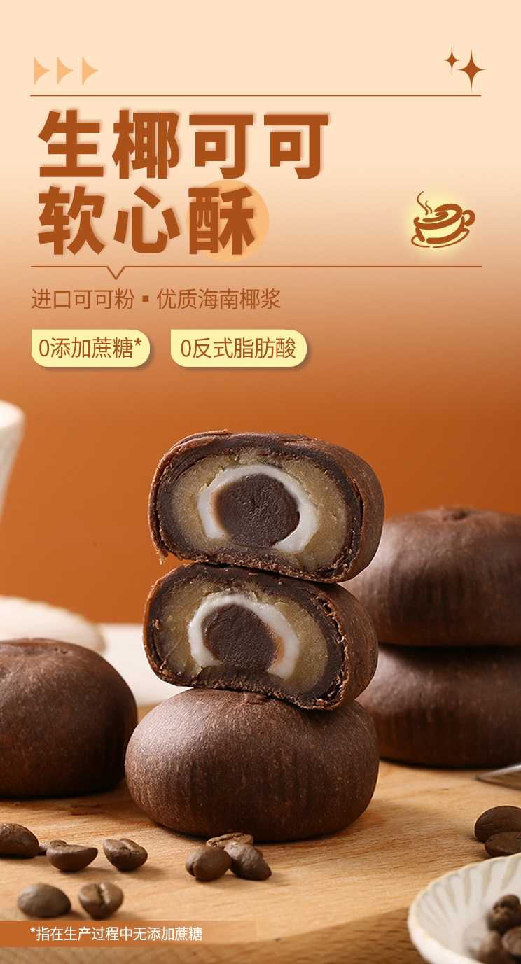 0蔗糖,0反式脂肪酸【进口可可+海南椰浆!】爆浆流心,外酥内软,生椰可可软心酥无蔗糖麻薯咖啡代餐早餐糕点心解馋小吃。ha