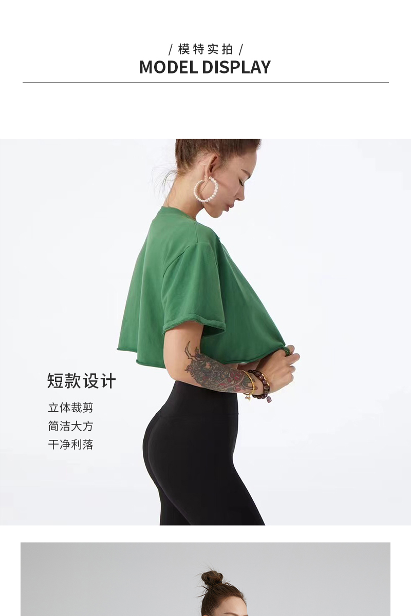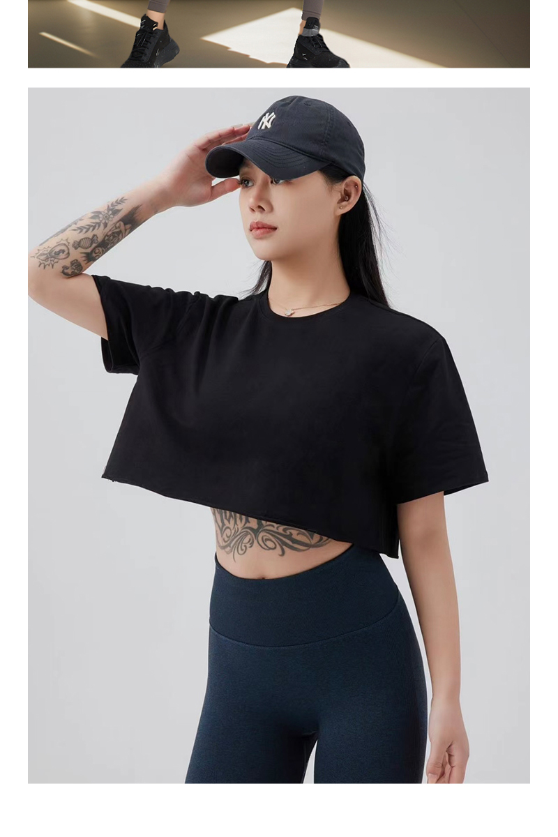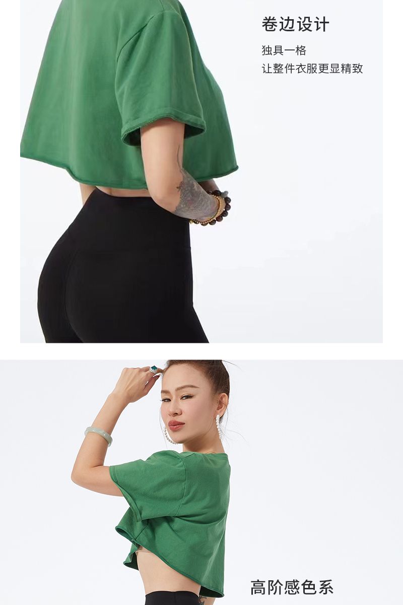 运动卷边t恤防紫外线速干透气瑜伽服晨跑服夏季户外百搭