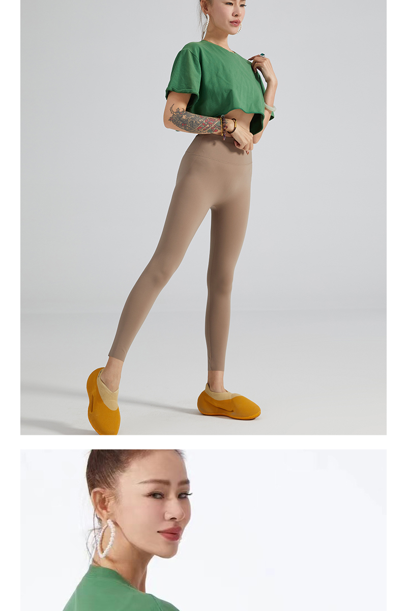新款塑型裤高腰弹力蜜桃臀透气运动三文鱼肌理微压纯色美臀运动裤
