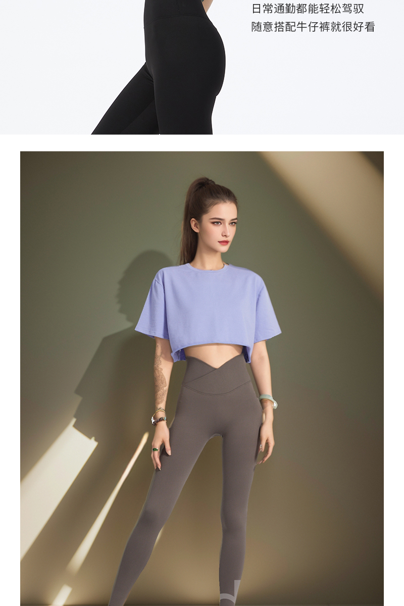 新款无缝交叉V腰夏季运动蜜桃臀收腹弹力九分紧身高腰无痕运动裤