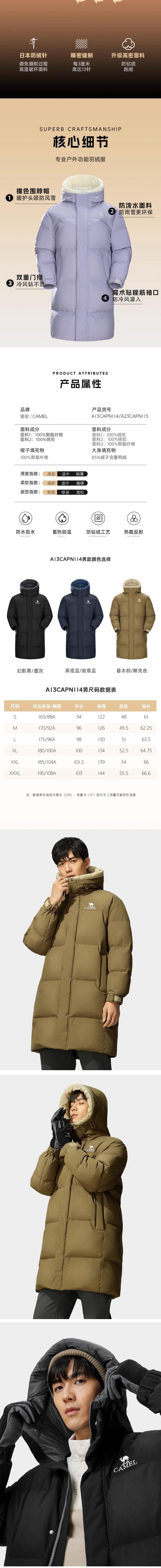 骆驼 男中长中厚羽绒服 A13CAPN114