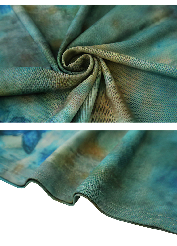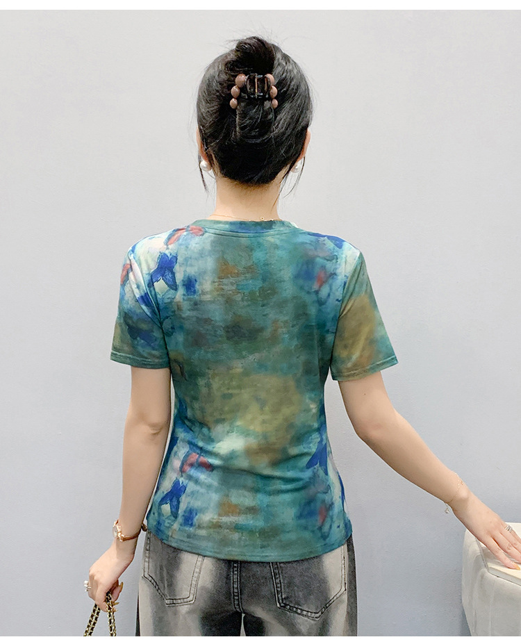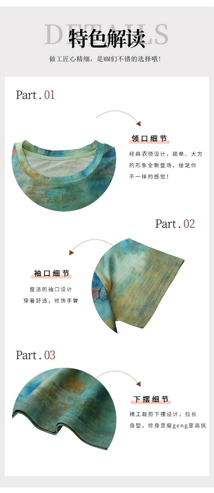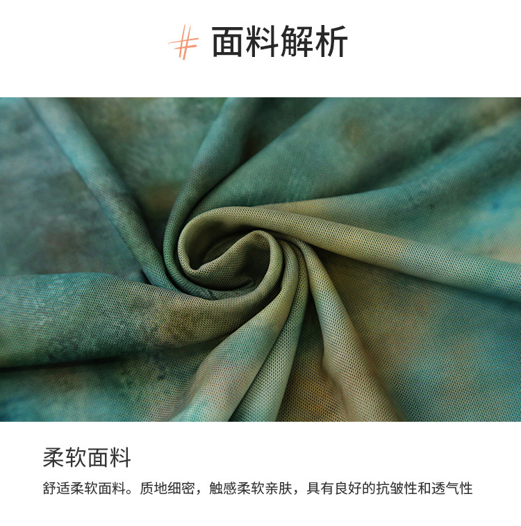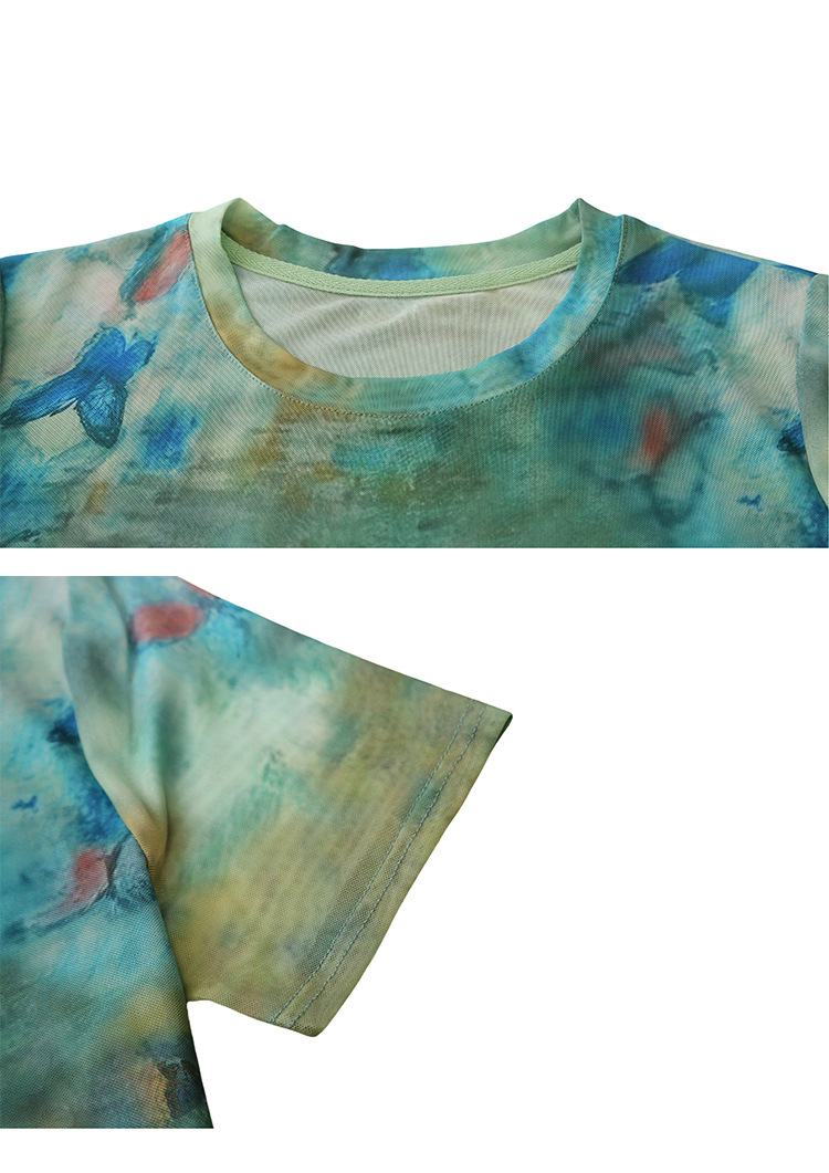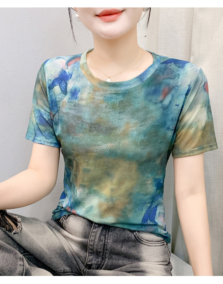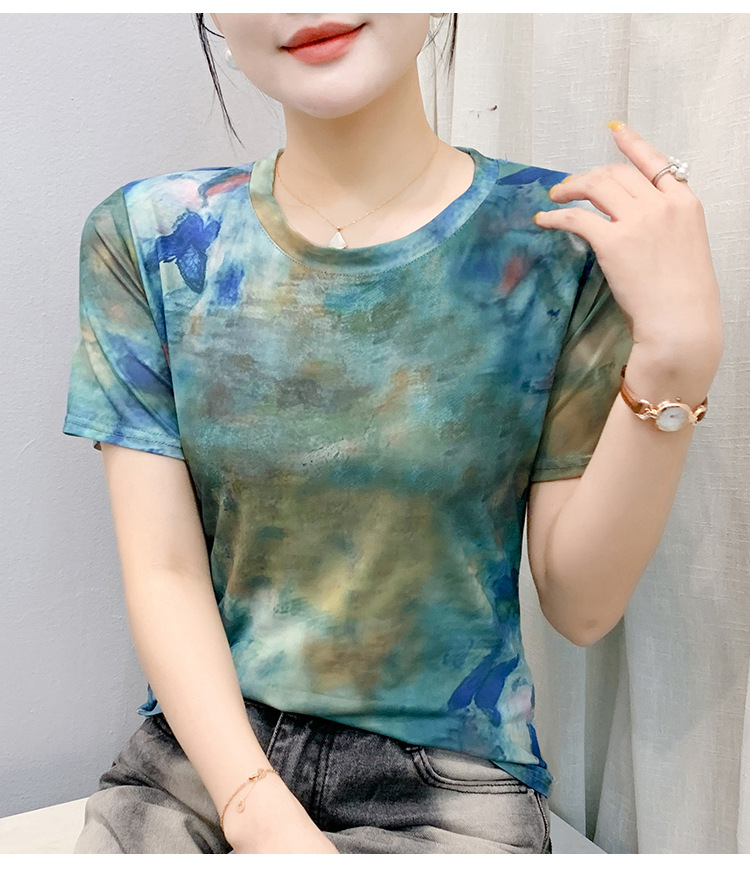 圆领晕染网纱短袖t恤,百搭洋气衣服时尚百搭小衫KQL-311H9057