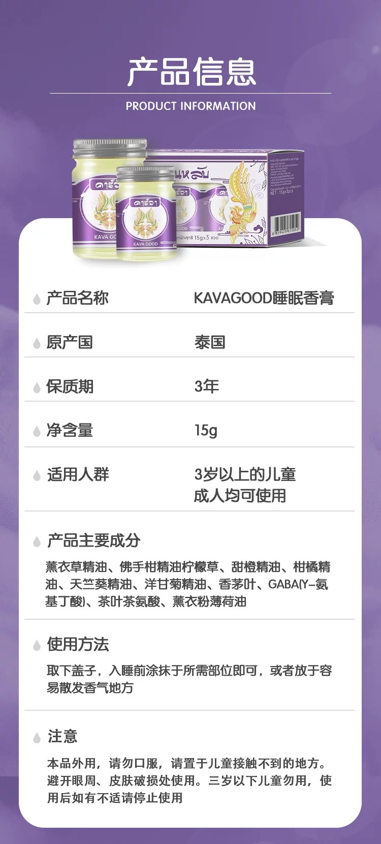 KAVAGOOD卡瓦库德睡眠香膏 泰国原装进口 怡香舒心呵护睡眠 15g/盒