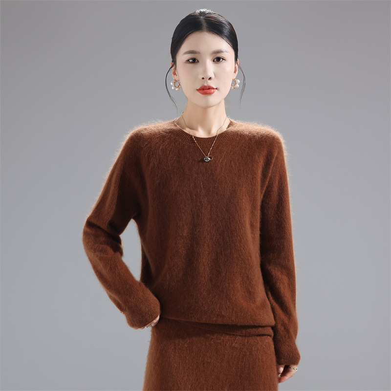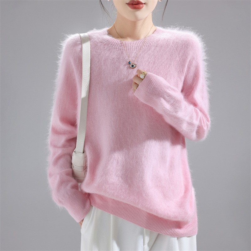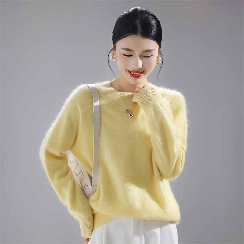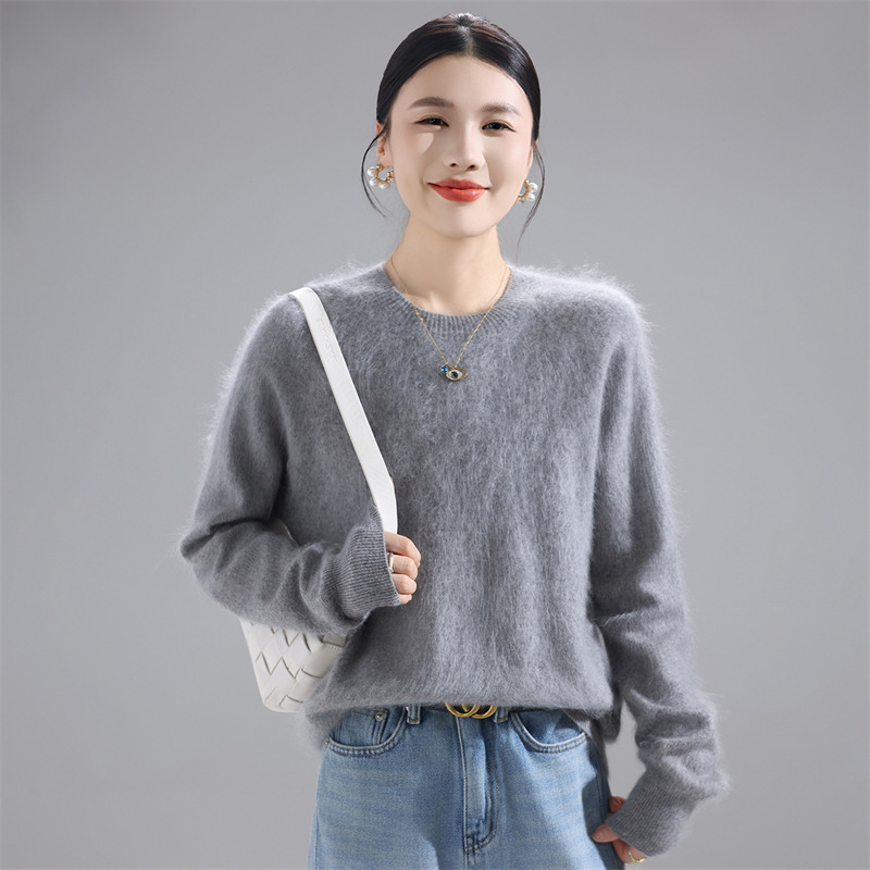 秋冬新款加厚一线成衣拉绒纯羊毛衫女针织打底衫宽松羊毛毛衣上衣