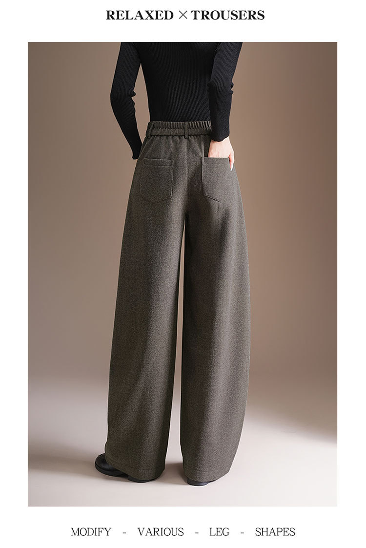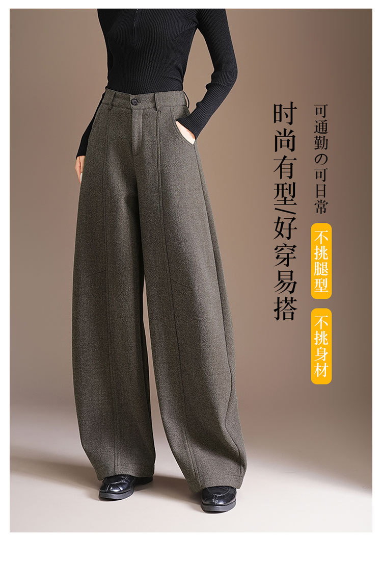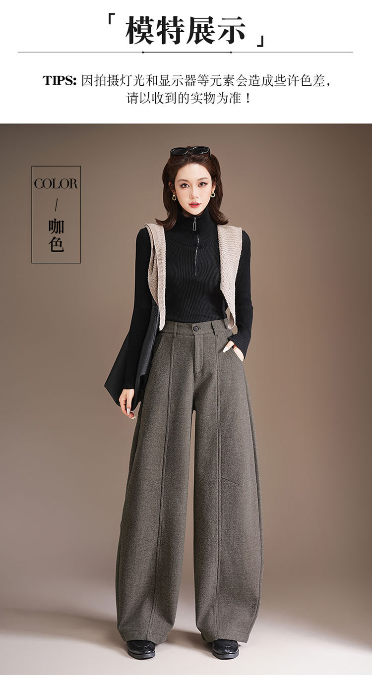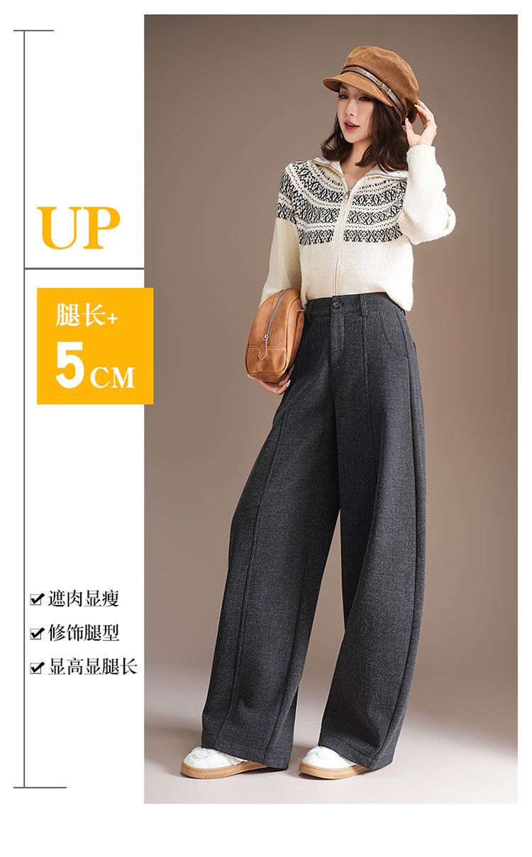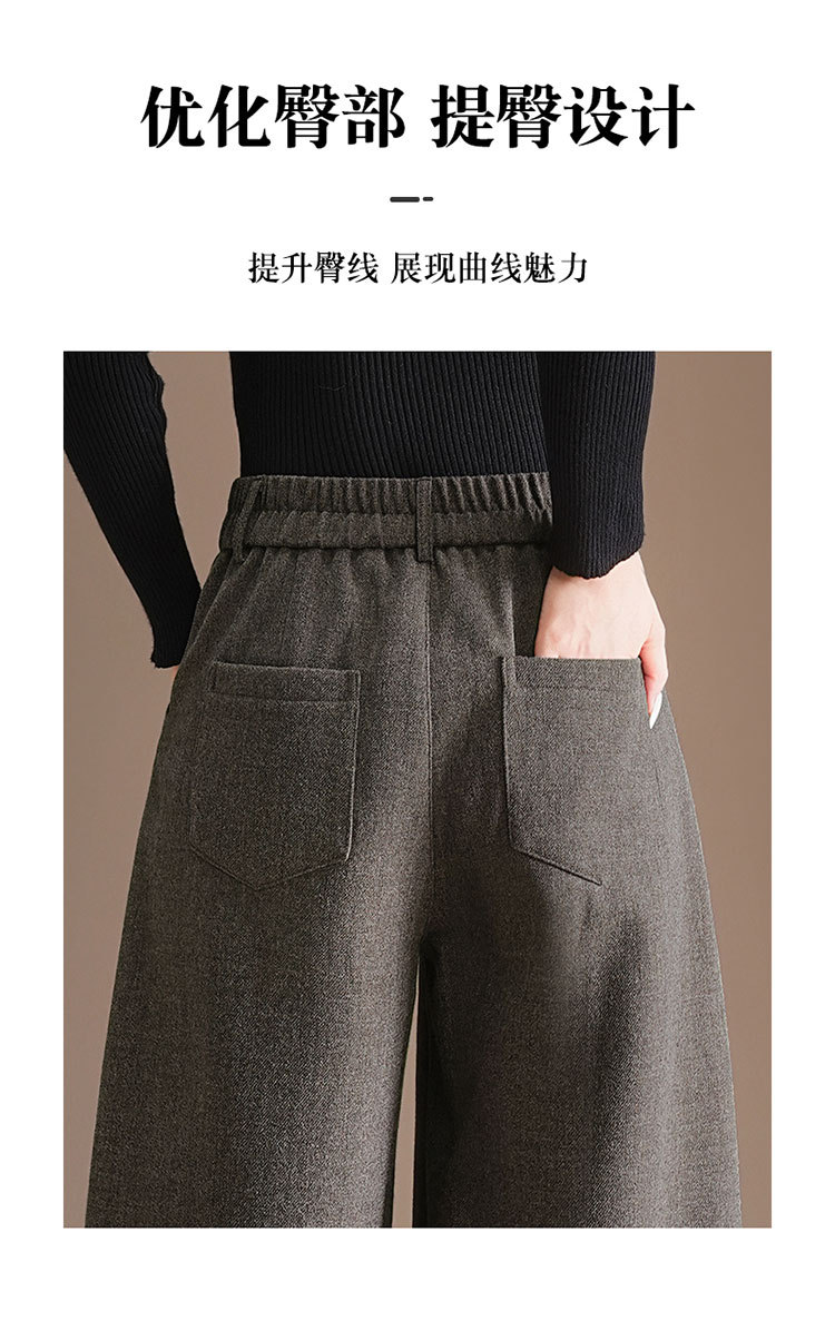 YM 25212-86时尚加绒保暖弯刀阔腿裤高腰垂坠感显瘦休闲裤 商品图4