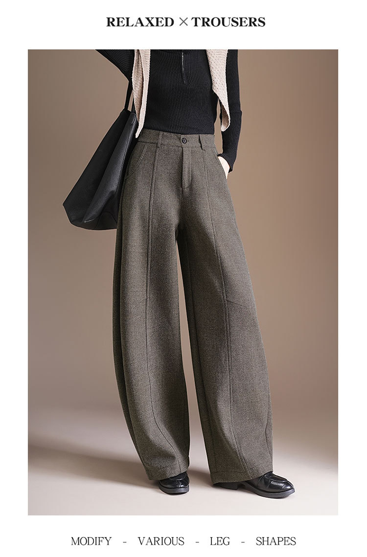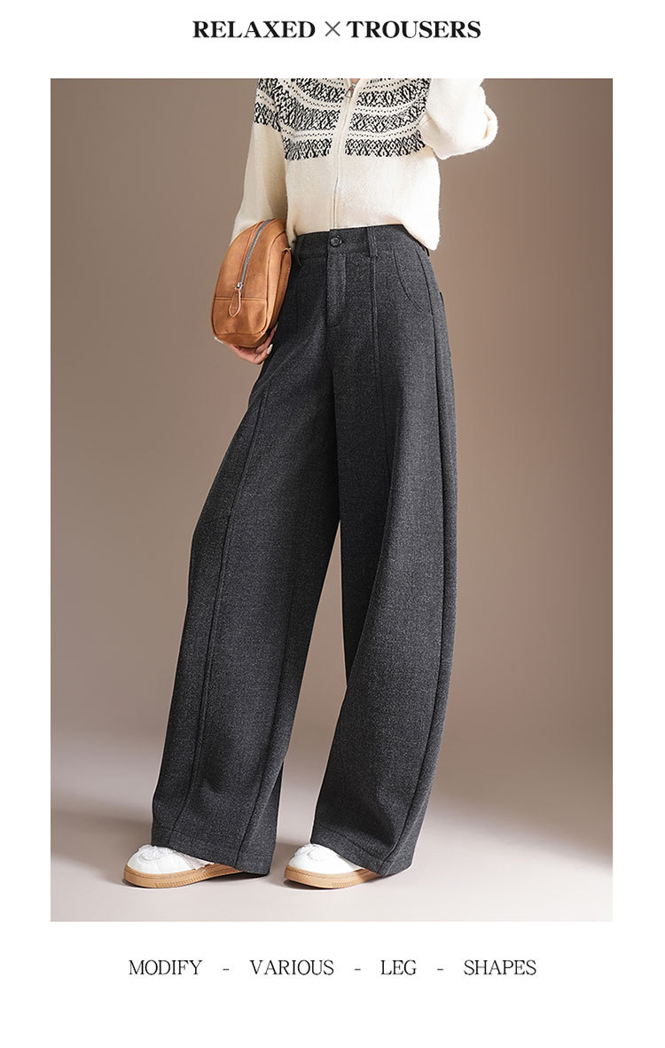 YM 25212-86时尚加绒保暖弯刀阔腿裤高腰垂坠感显瘦休闲裤 商品图1