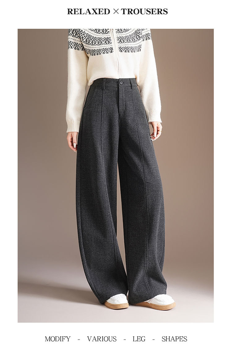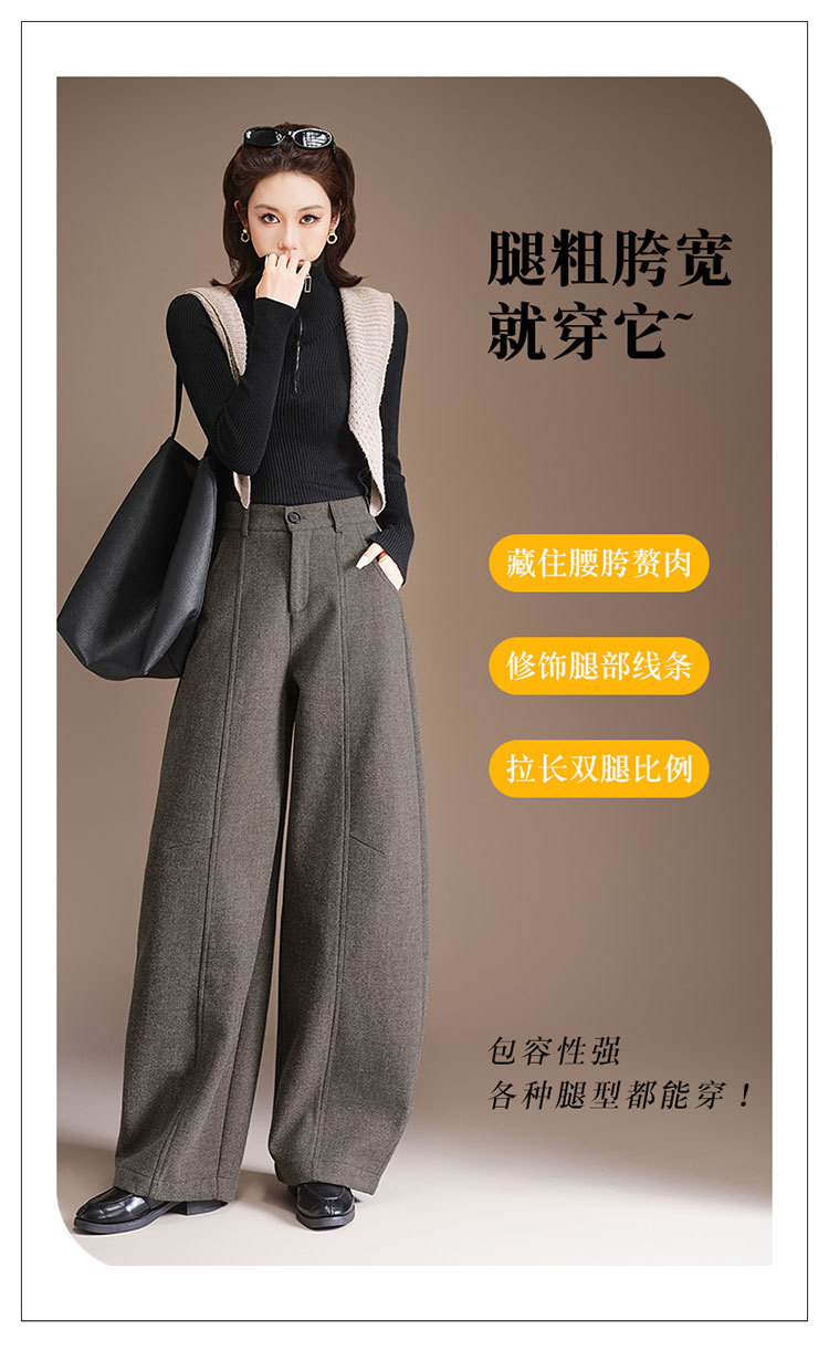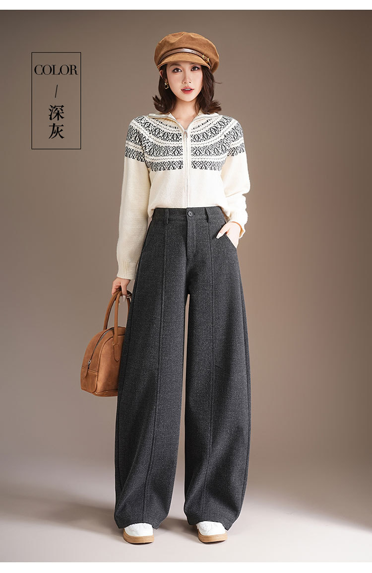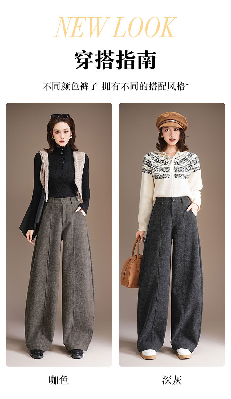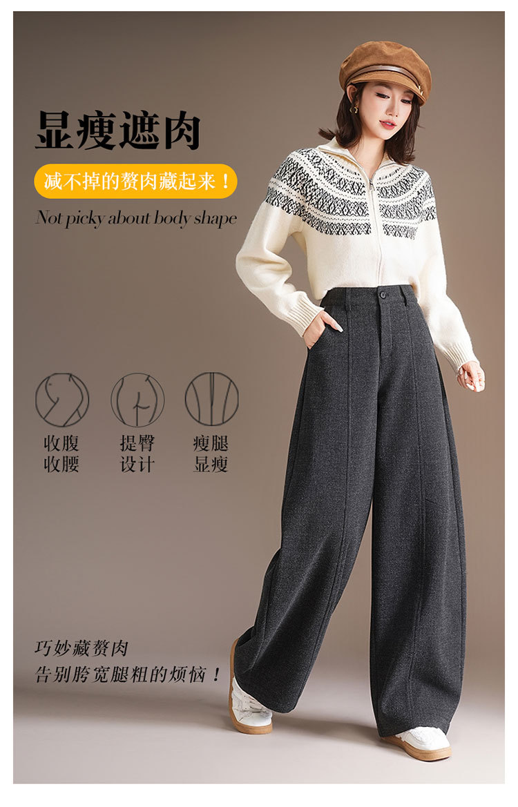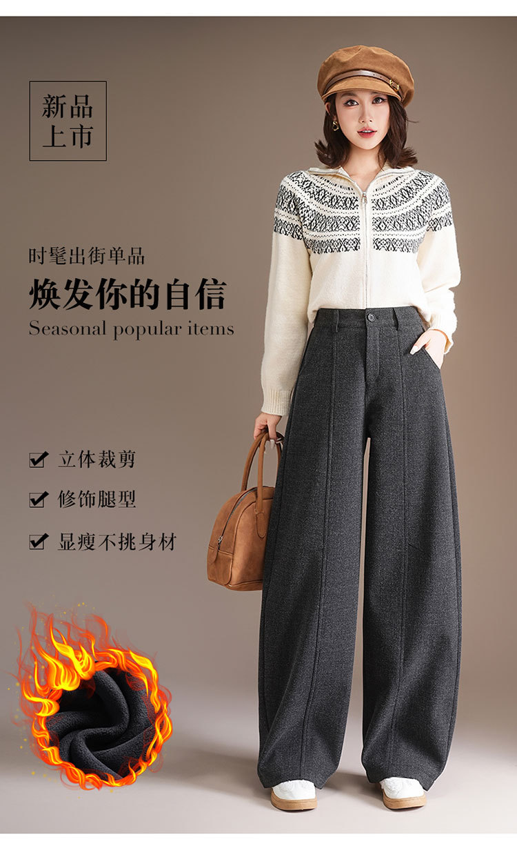 YM 25212-86时尚加绒保暖弯刀阔腿裤高腰垂坠感显瘦休闲裤 商品图0
