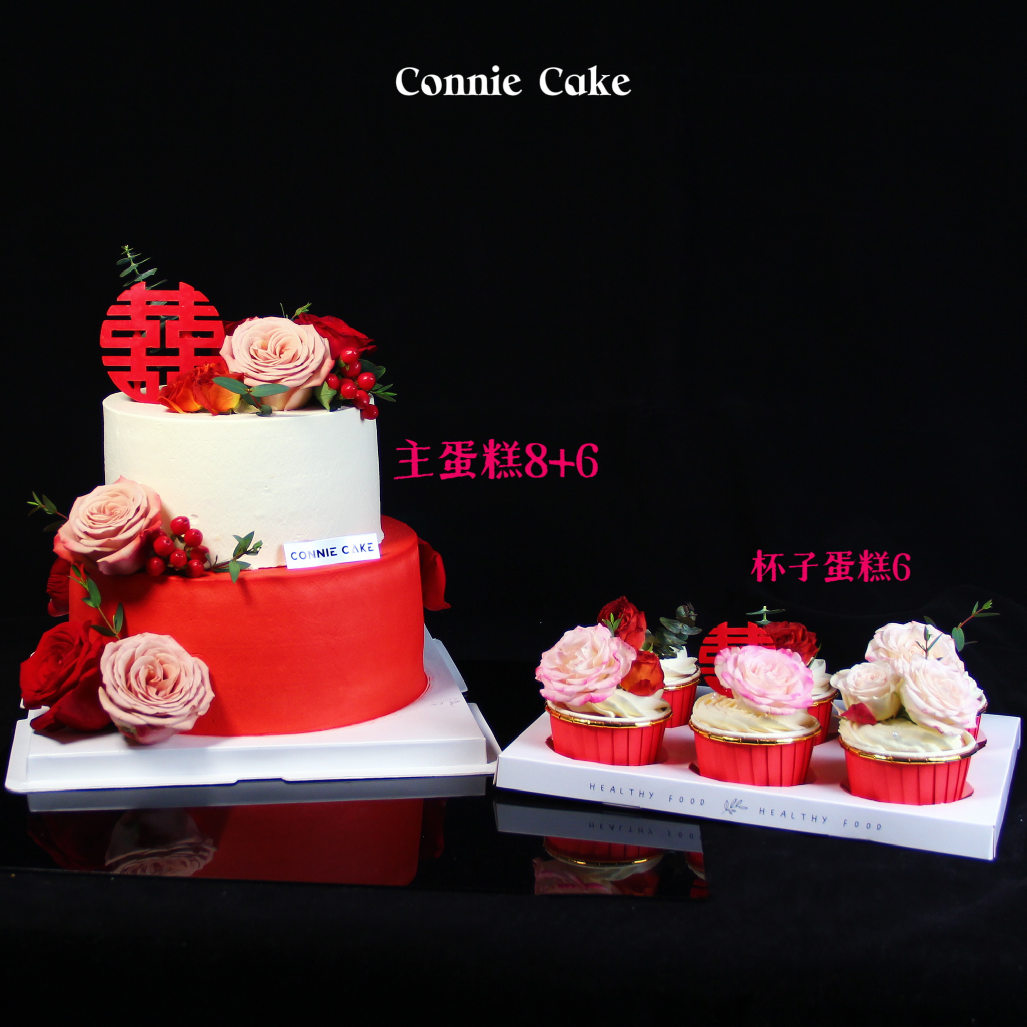 【1525】简约高级订婚结婚蛋糕+杯子蛋糕
