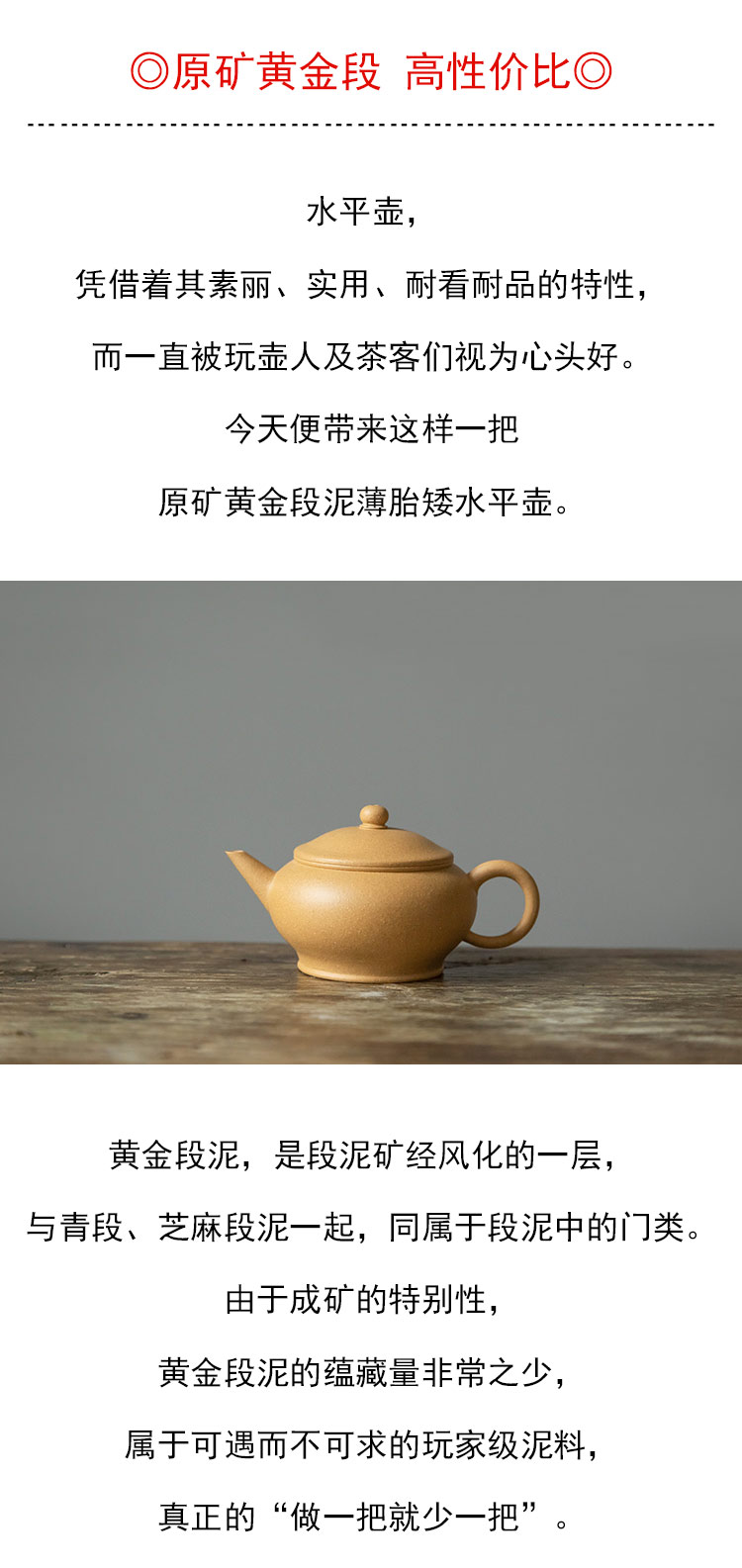 茶香记 紫砂壶 原矿黄金段泥 薄胎矮水平