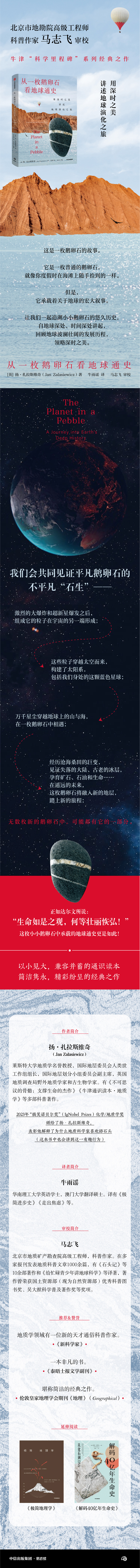 这是一枚鹅卵石的故事,它属于一枚普通的鹅卵石,就像你度假时在海滩上随手捡到的一样。这也是关于地球本身的宏大叙事,追溯小小鹅卵石悠久历史的过程将带我们回顾地球波澜壮阔的发展史,穿越到空间的深处和地球生命起源之时,领略深时之美。