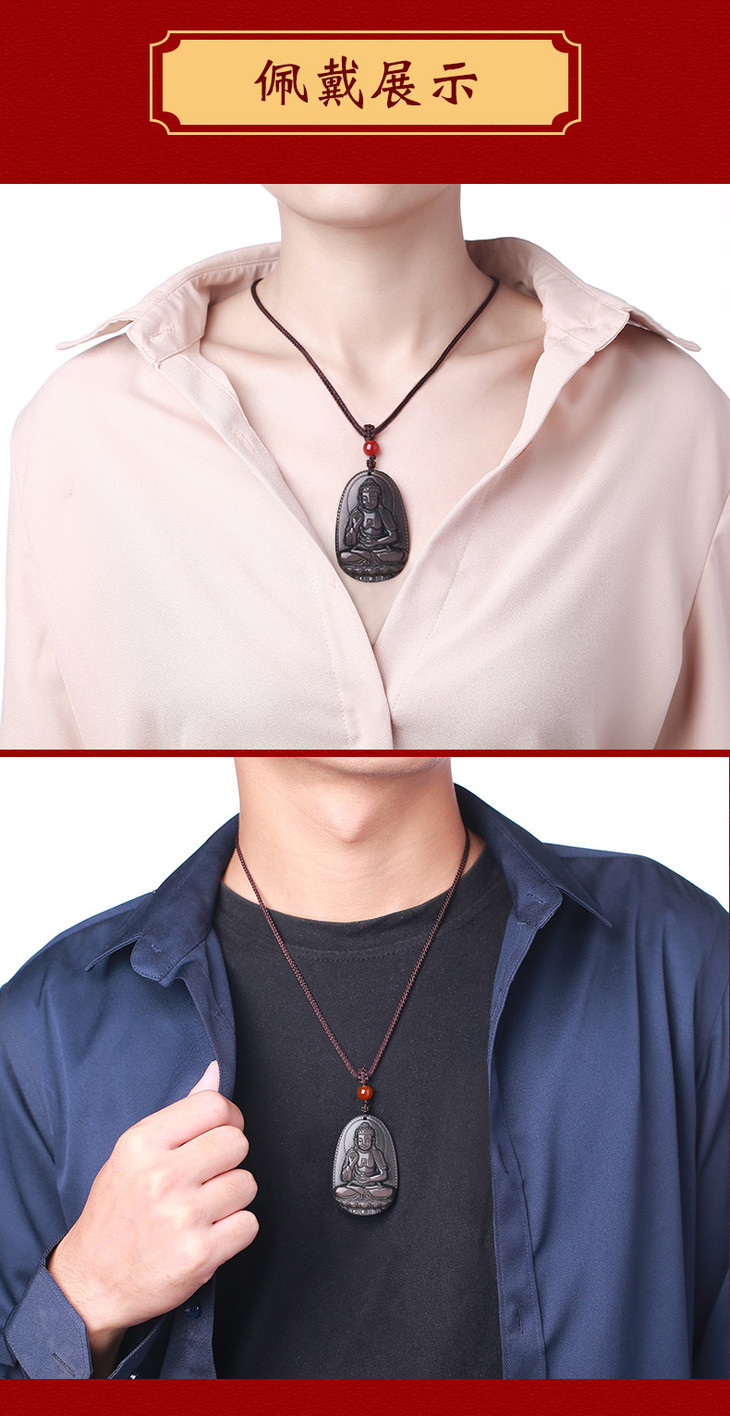 宋韶光十二生肖冰彩黑曜石男女士吊坠普贤阿弥陀佛项链