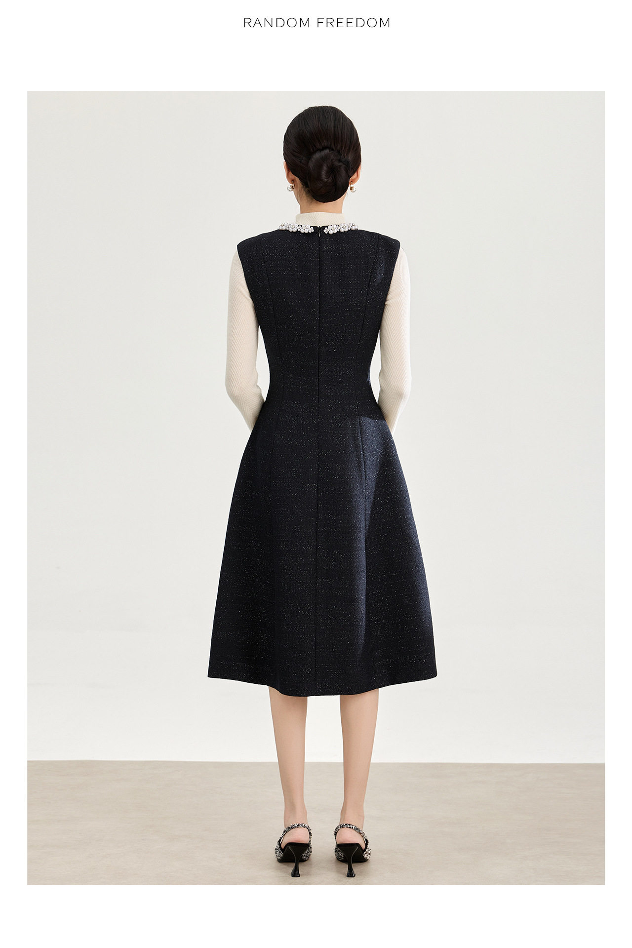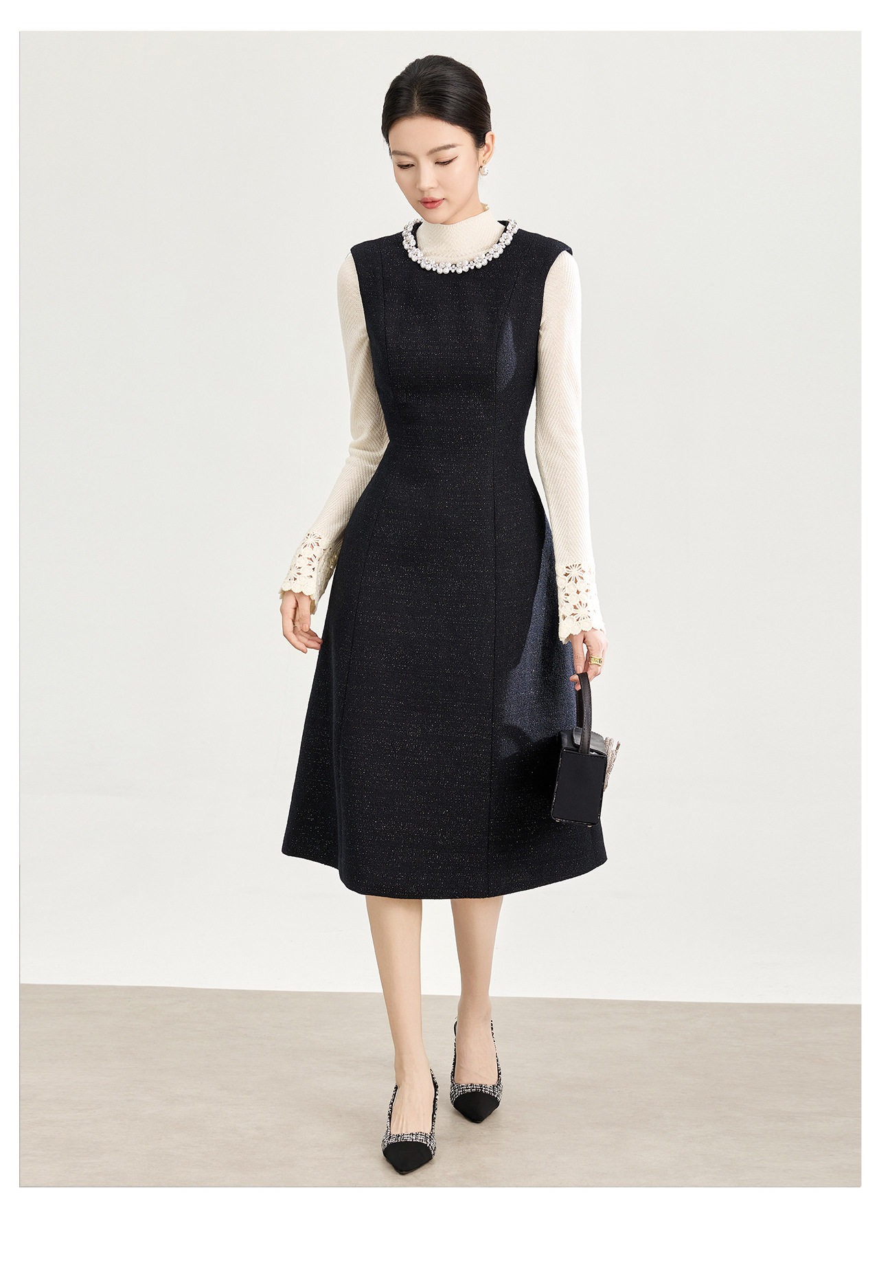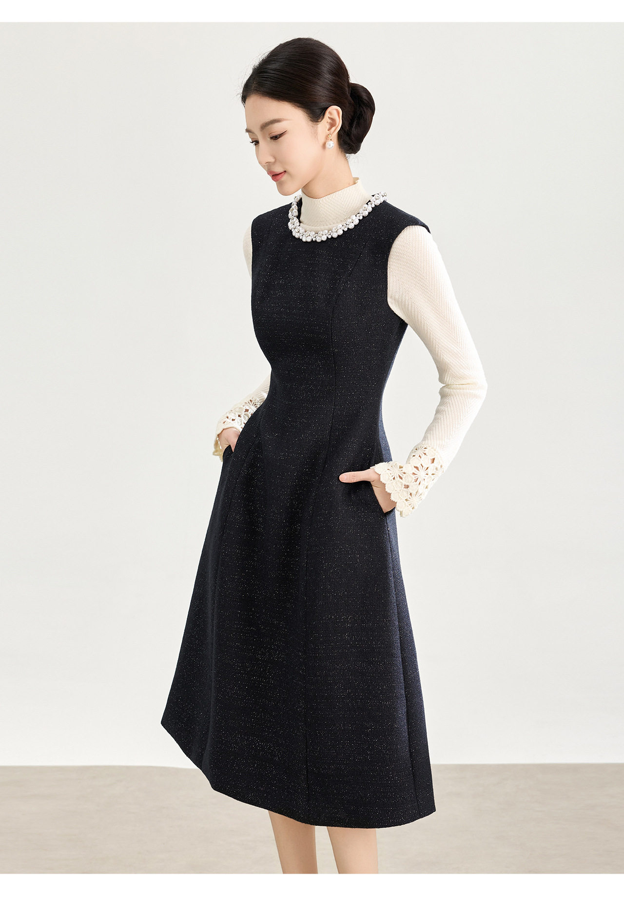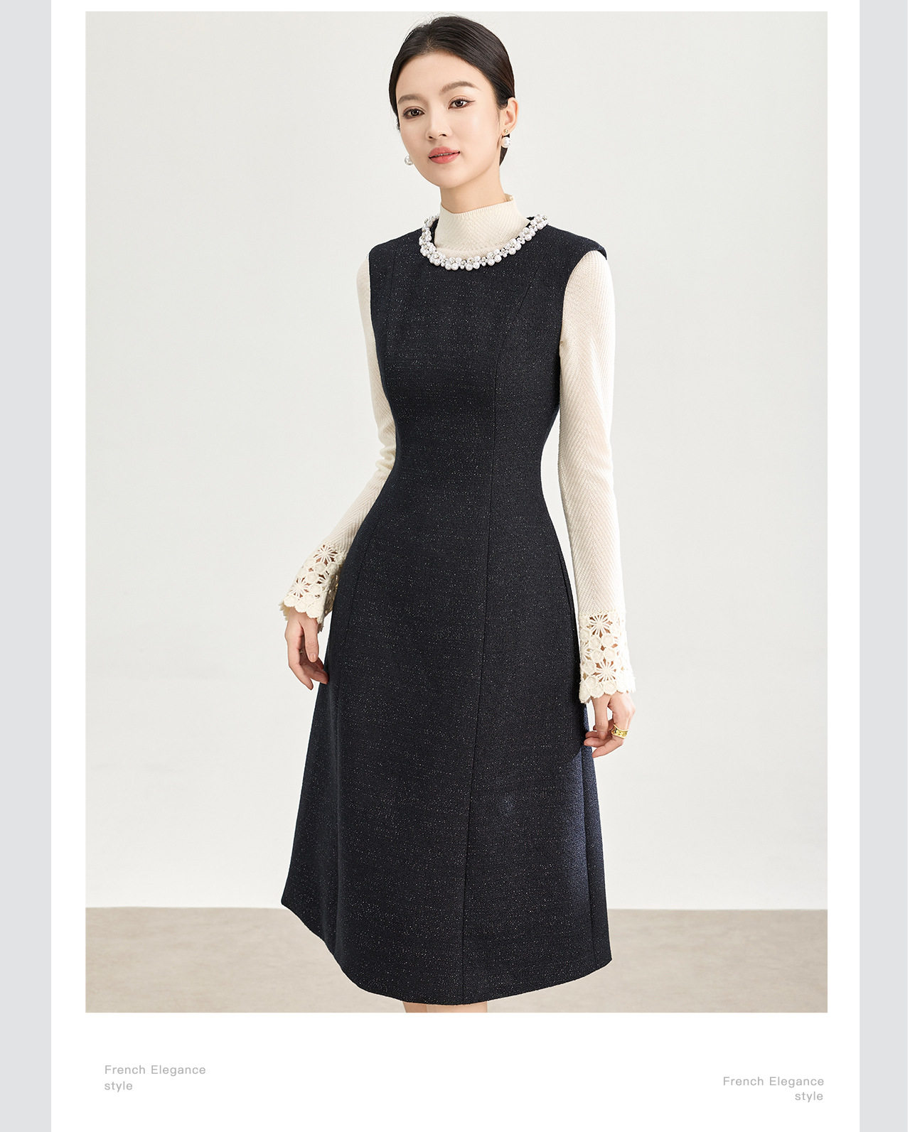 「高货wl」全新升级【铂金会员358/天猫479/差价121】(11943)洛诗琳气质银丝编织连衣裙2025秋冬立裁小香风收腰A摆裙