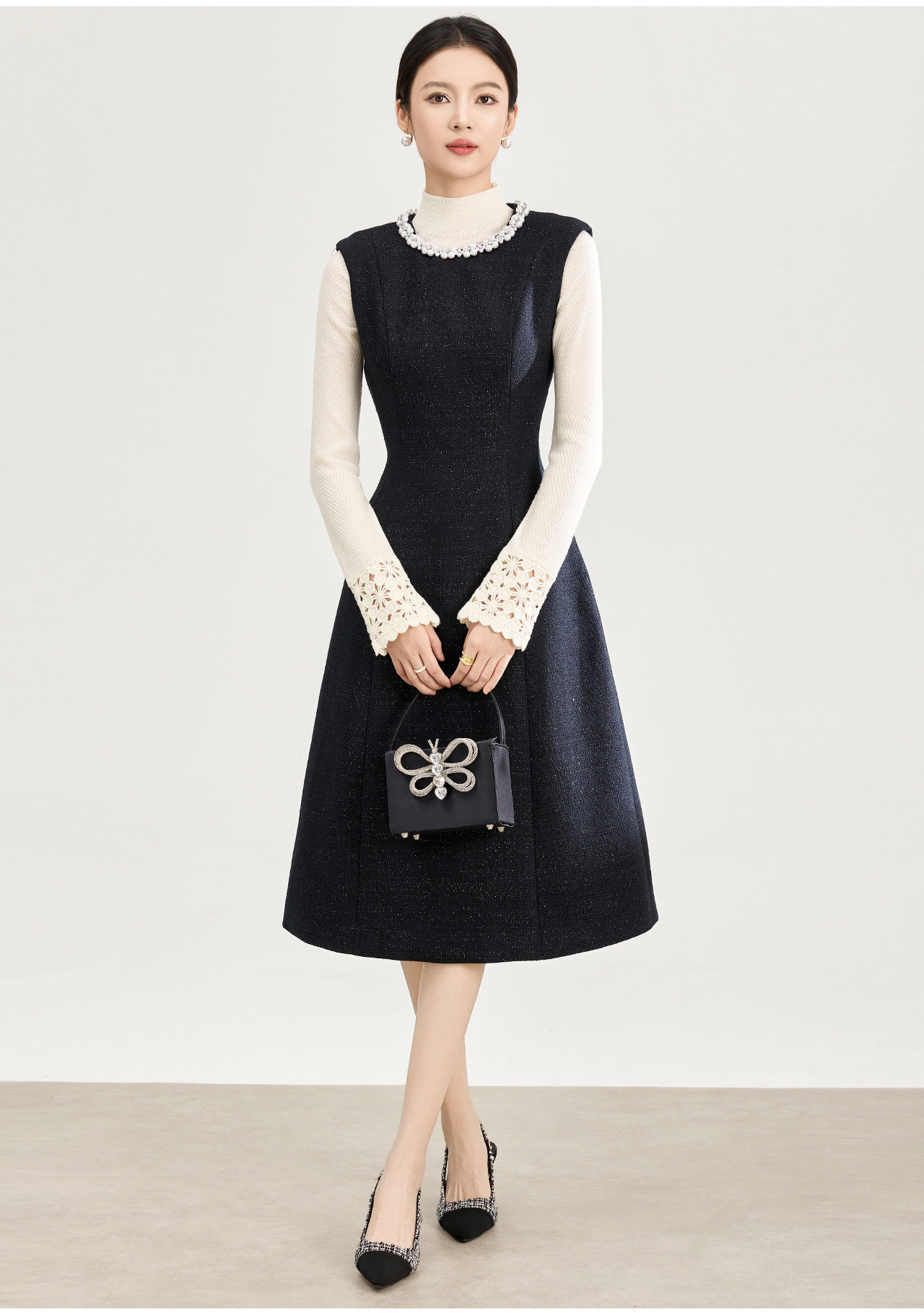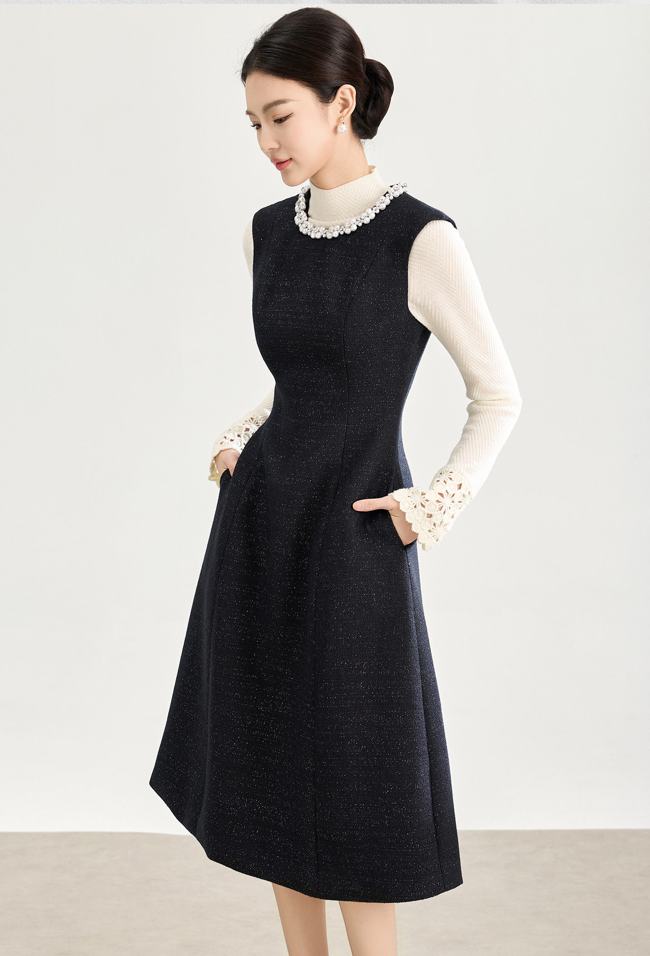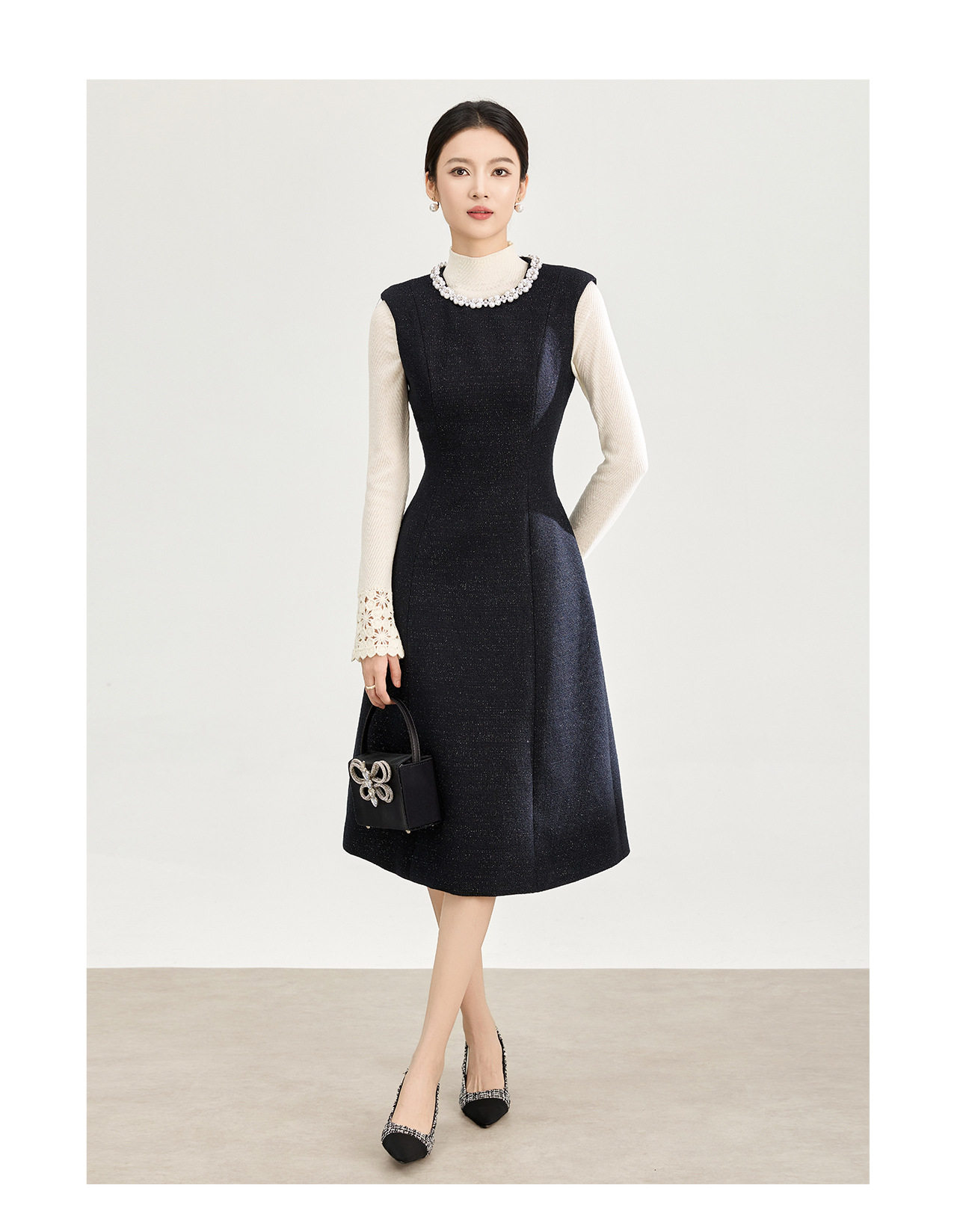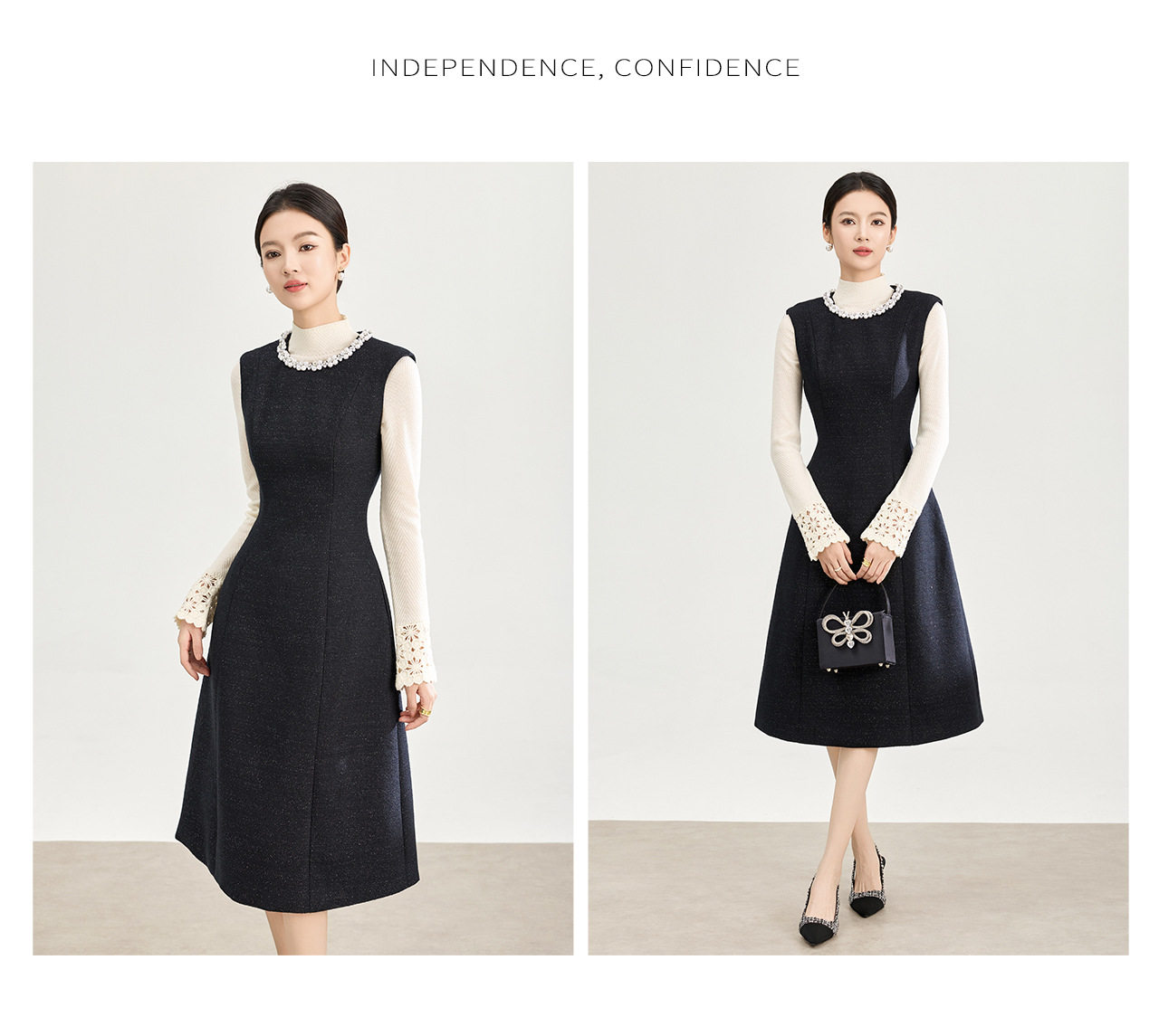 「高货wl」全新升级【铂金会员358/天猫479/差价121】(11943)洛诗琳气质银丝编织连衣裙2025秋冬立裁小香风收腰A摆裙