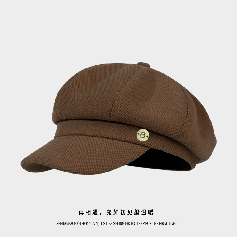 【日系韩版流行复古!精版尽显脸小】2025 新款秋冬帽子女复古纯色百搭八角报童帽显脸小潮。hb