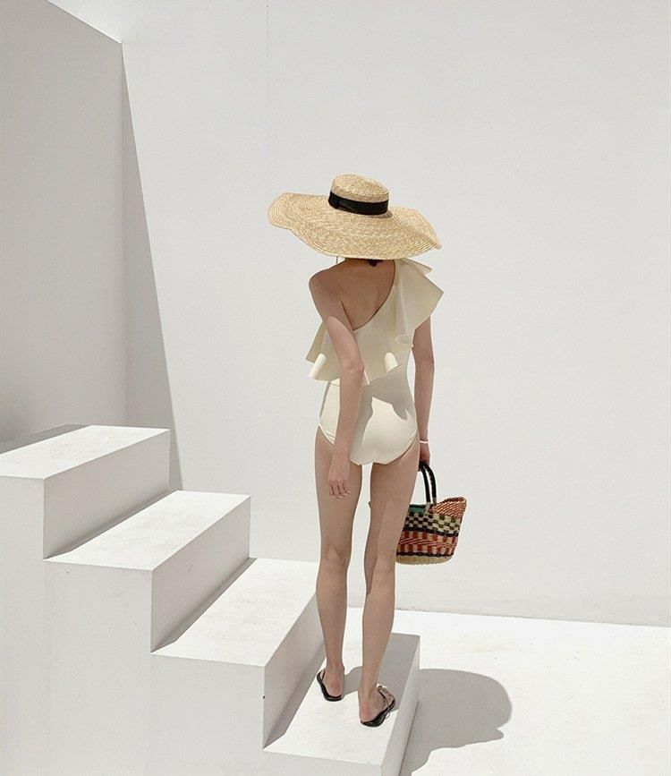 【荷花边连体泳衣】黛唯梵比基尼连体泳衣女性感韩国ins风荷叶边露背网红lest泳装