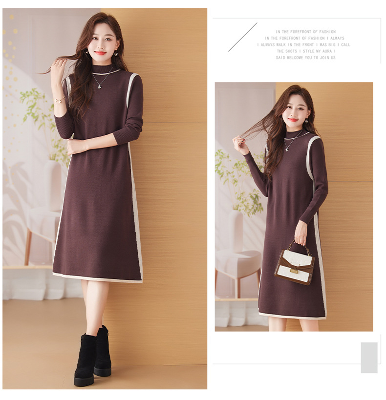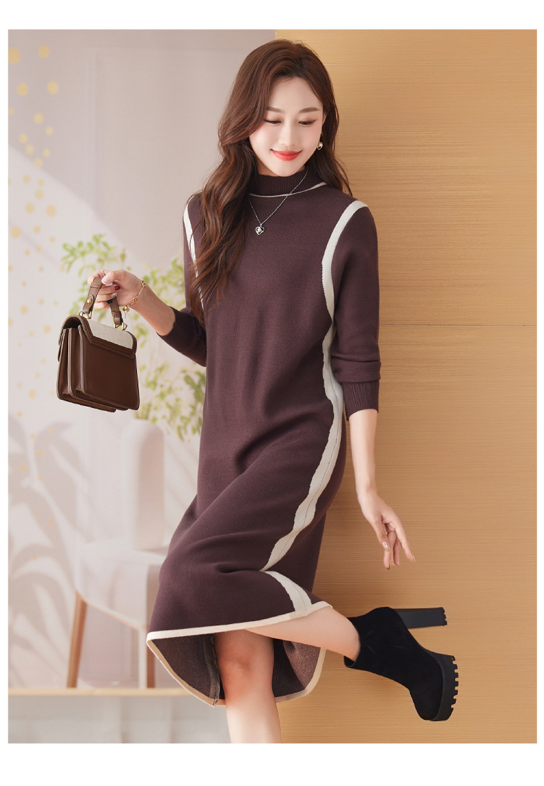 CC-108-2673秋冬季新款毛衣裙气质羊毛针织内搭打底连衣裙中长款洋气裙子