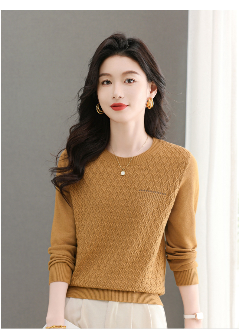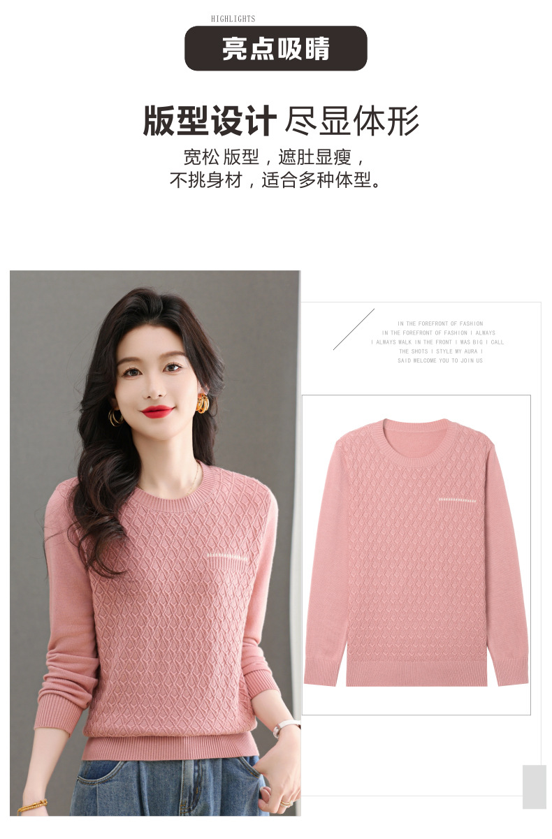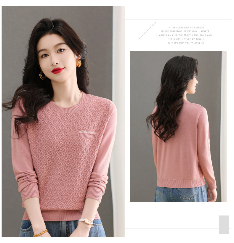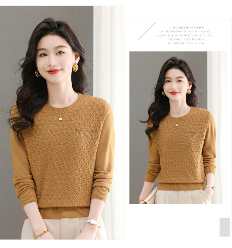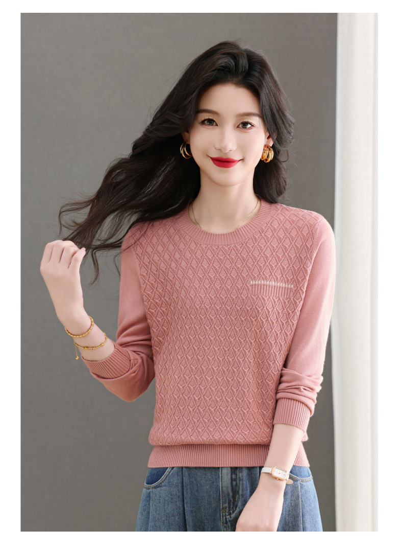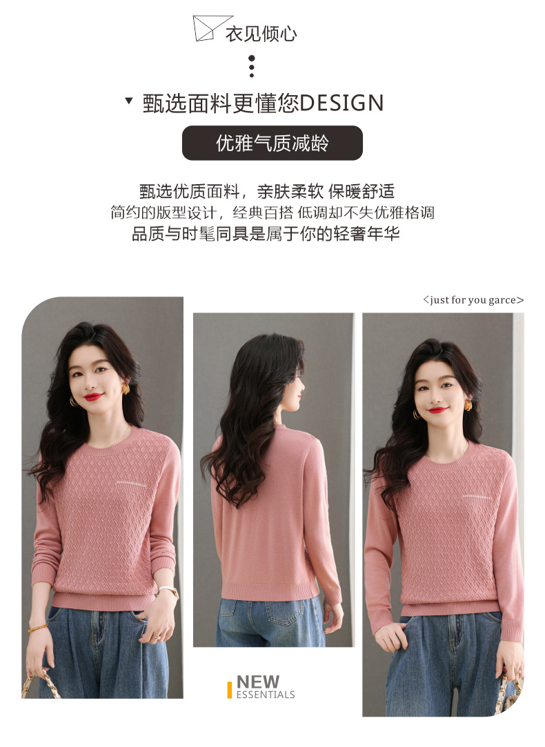 CC-101-51722长袖t恤女士圆领2025春秋新款宽松针织小衫洋气打底上衣T