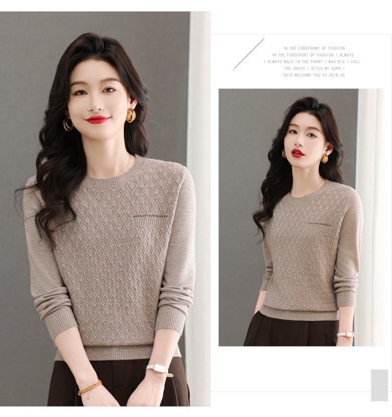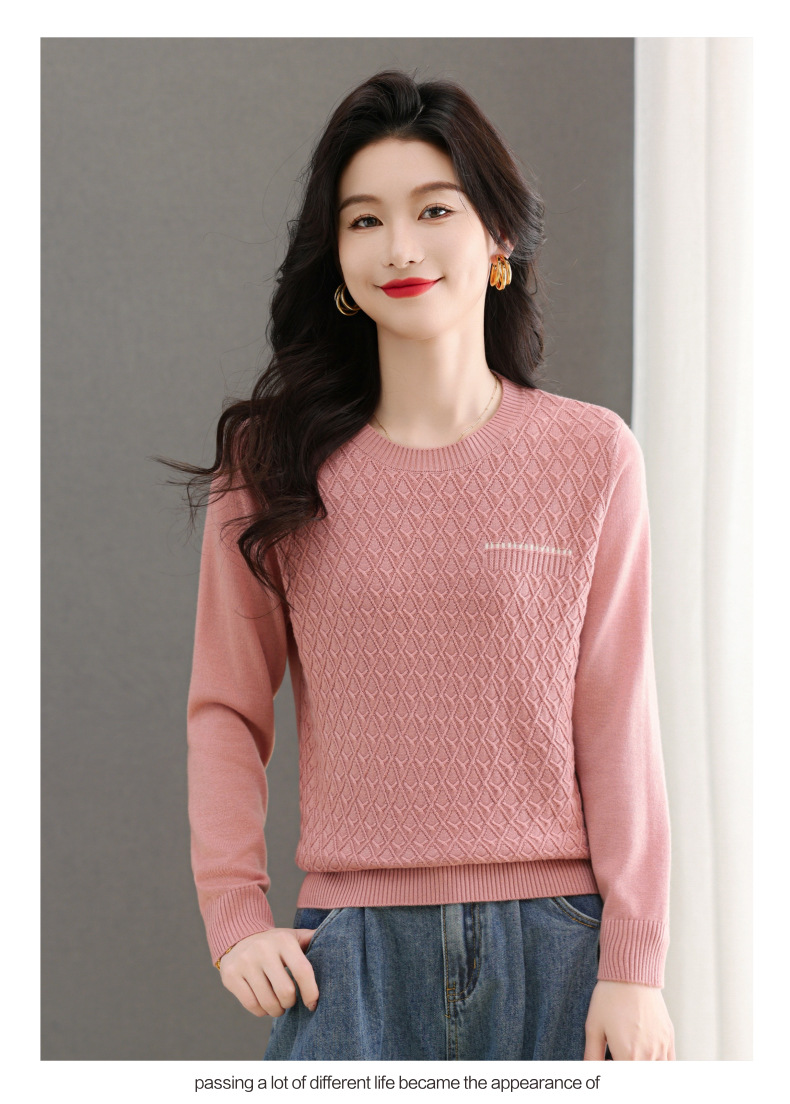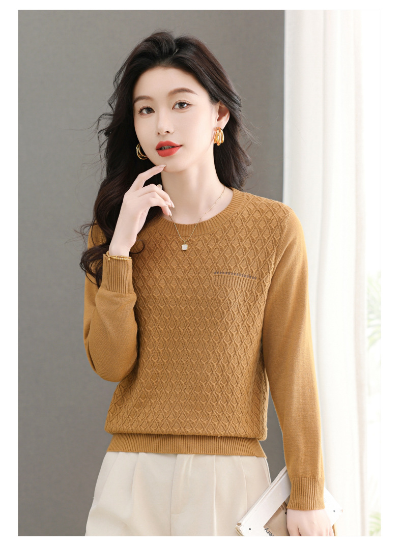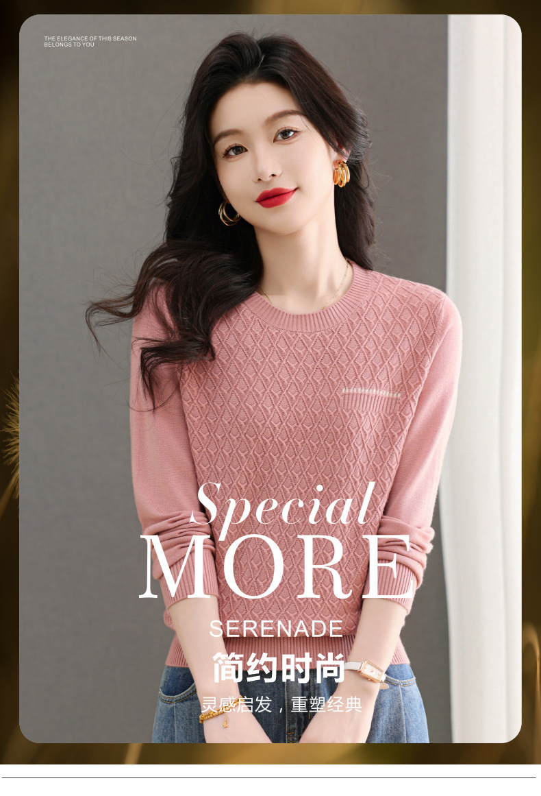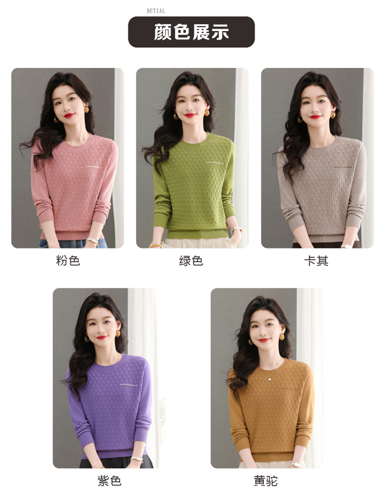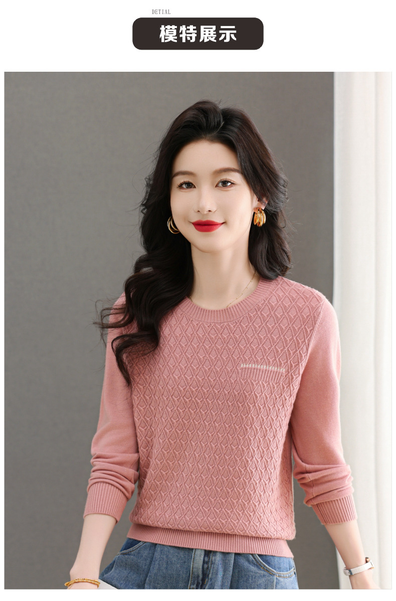 CC-101-51722长袖t恤女士圆领2025春秋新款宽松针织小衫洋气打底上衣T