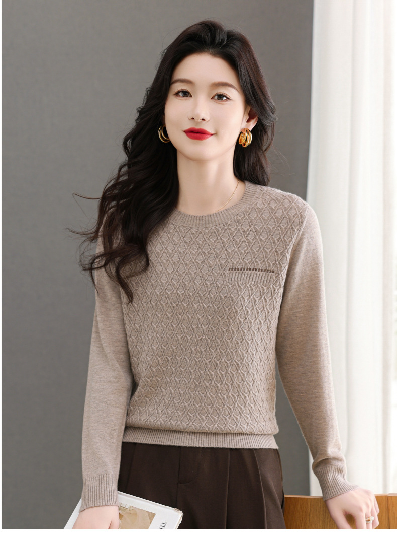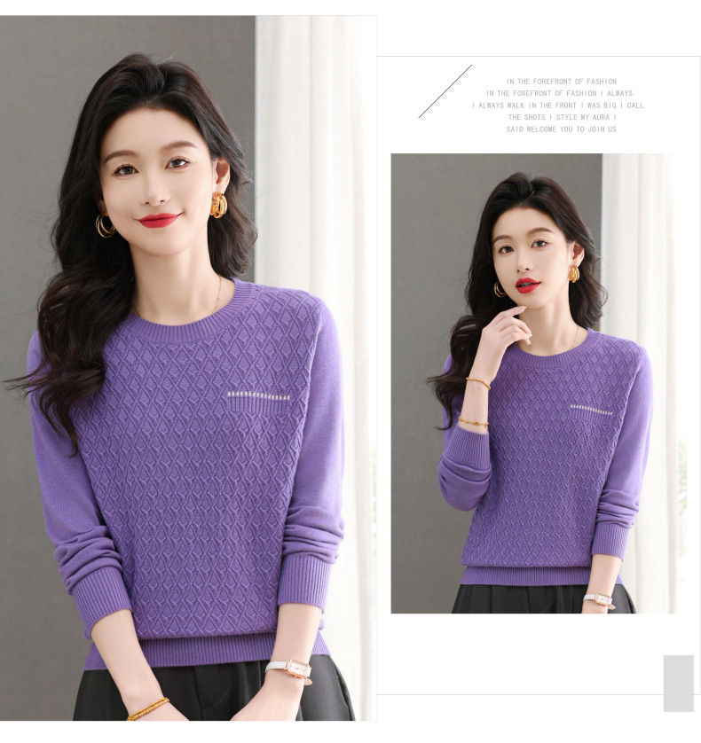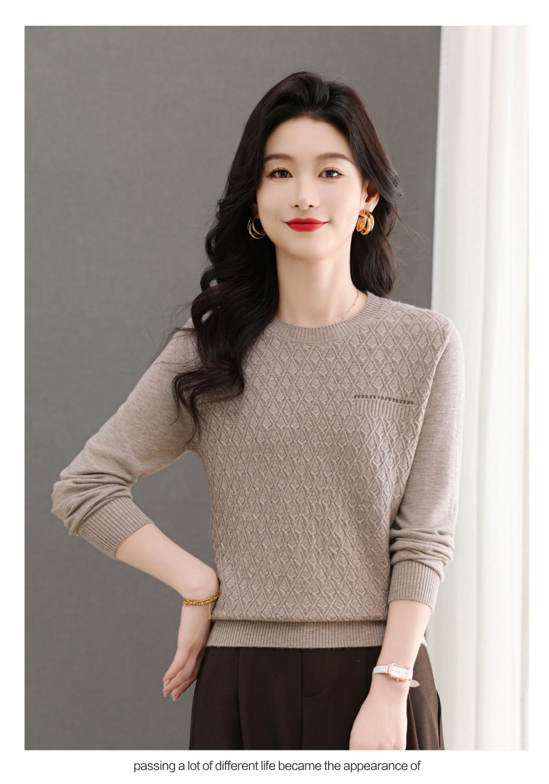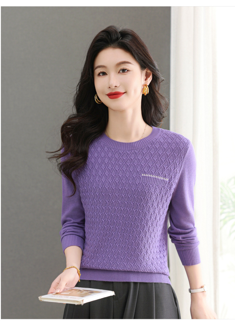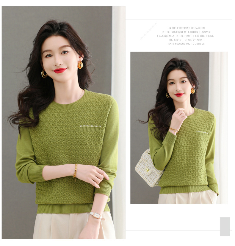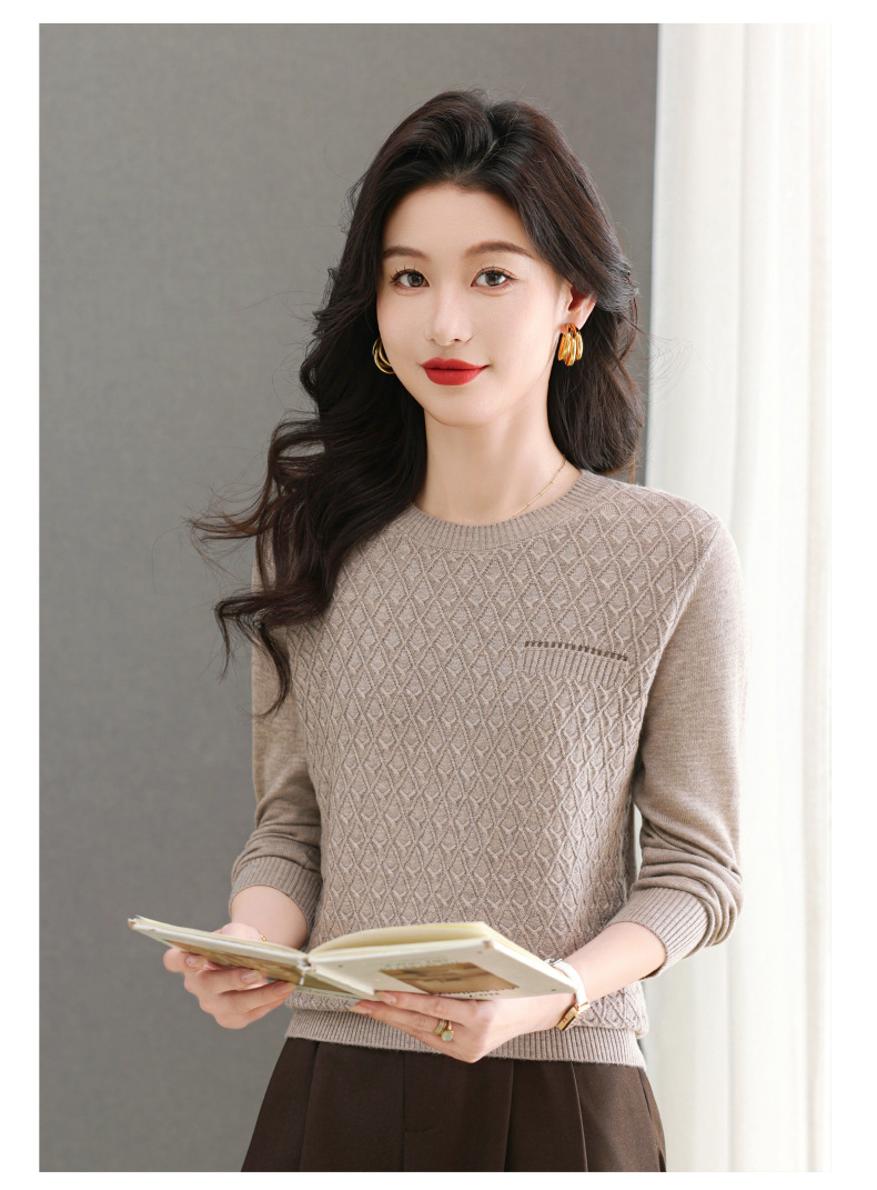 CC-101-51722长袖t恤女士圆领2025春秋新款宽松针织小衫洋气打底上衣T