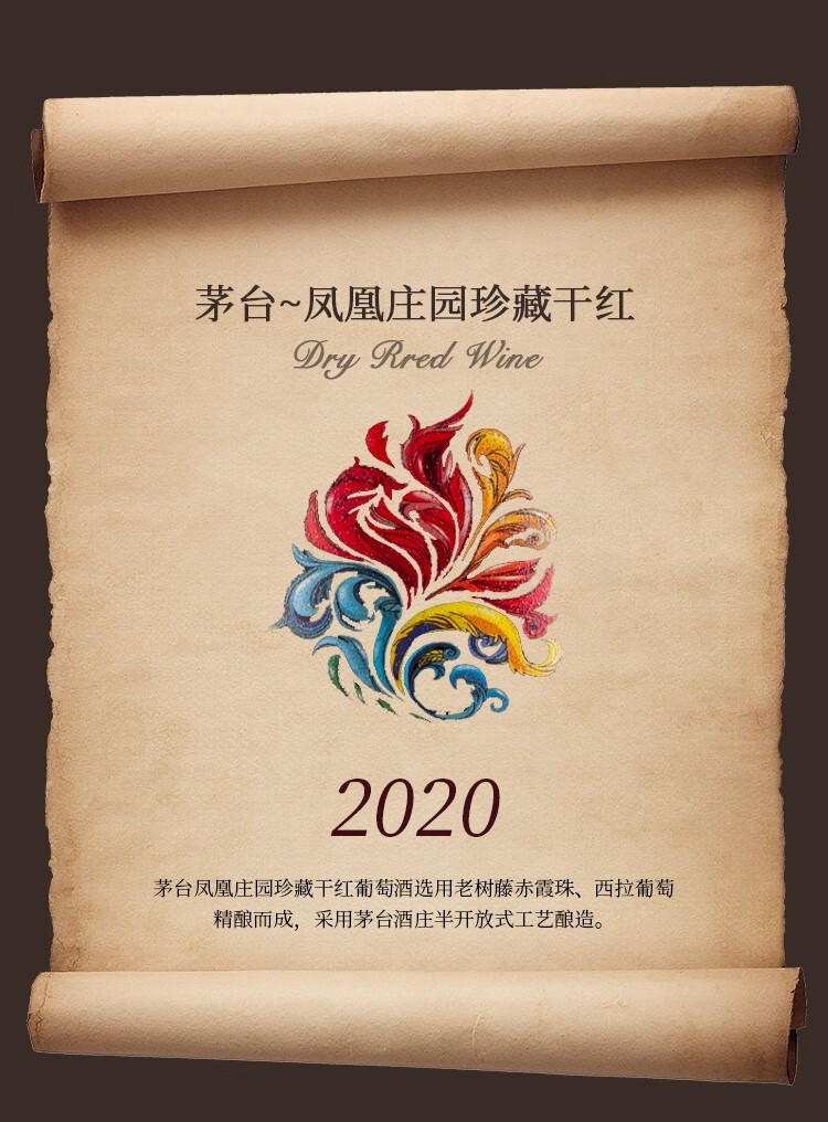 【茅台珍藏级2020年日期】茅台凤凰庄园 珍藏干红 14.5度 750ml