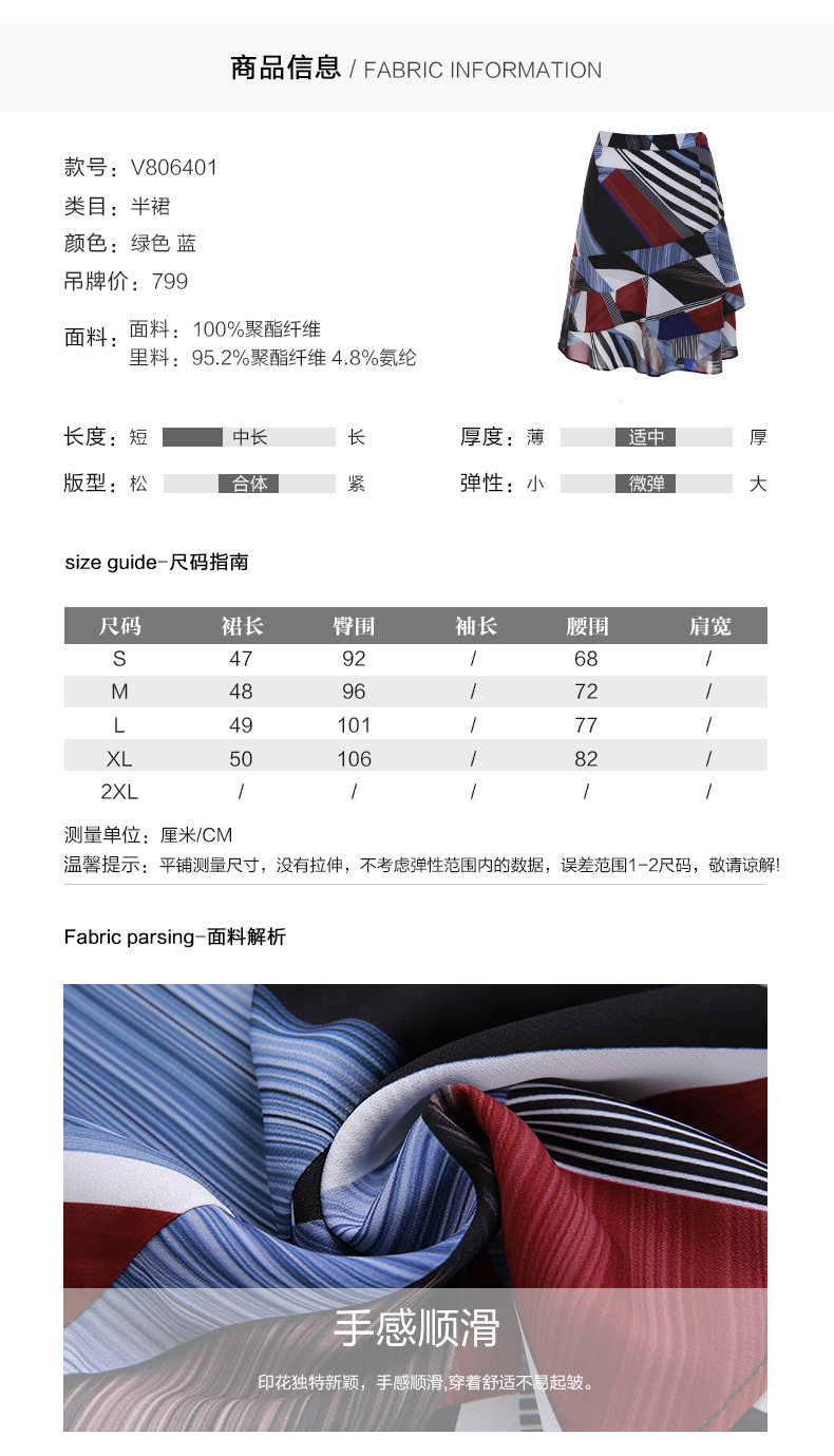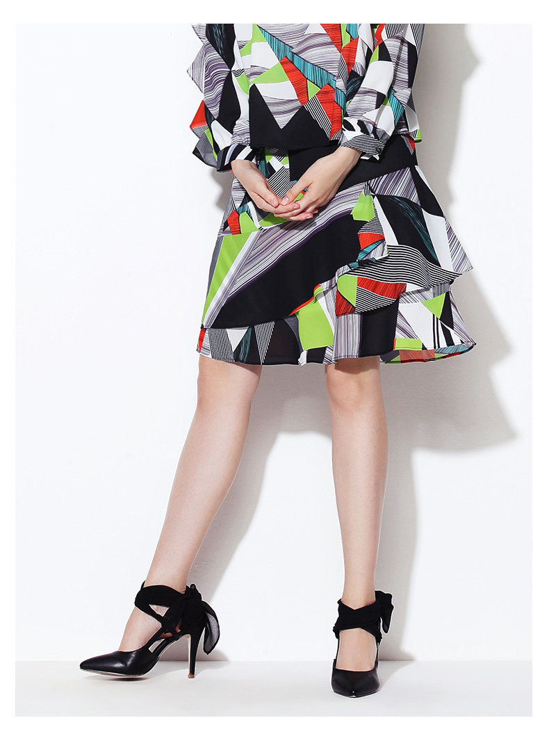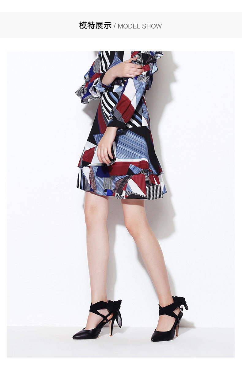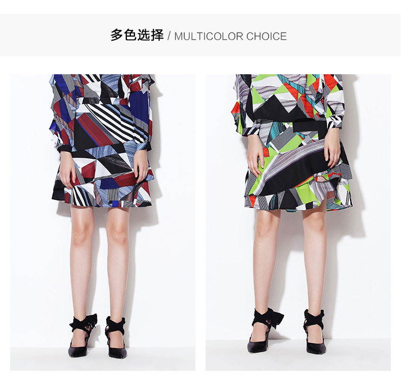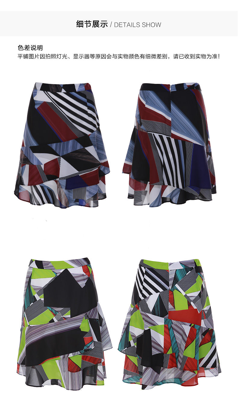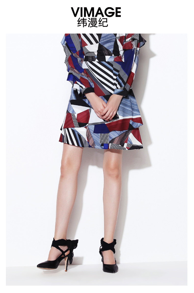 VIMAGE纬漫纪春秋新款短款高腰几何图案半身裙不对称A字裙女V806401