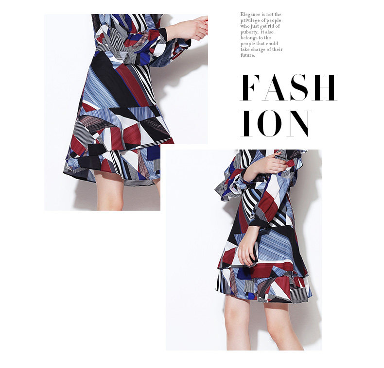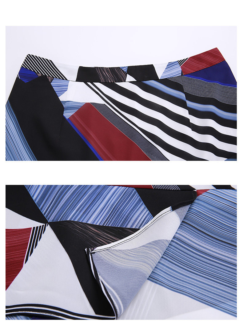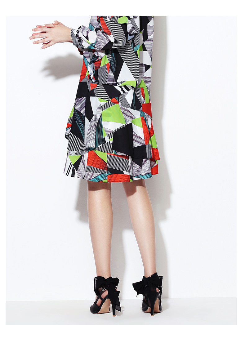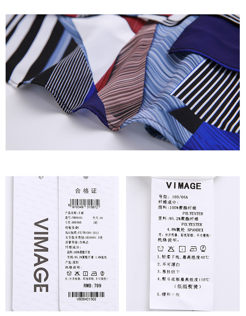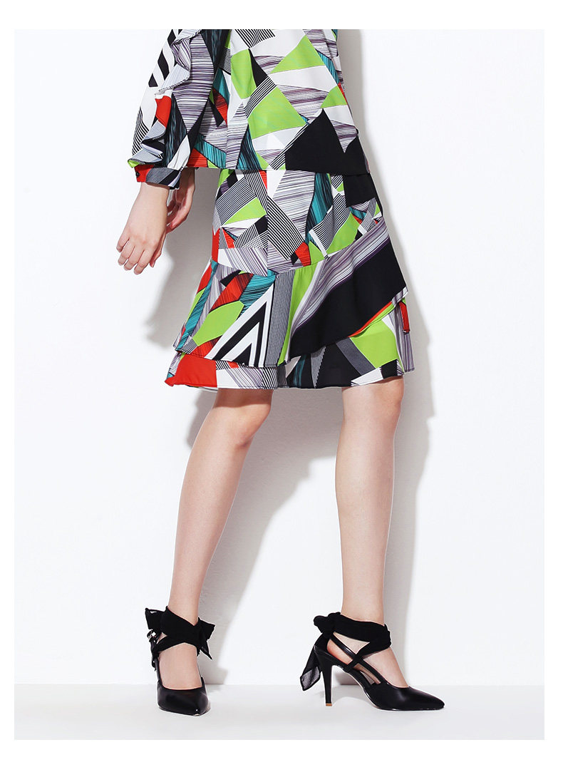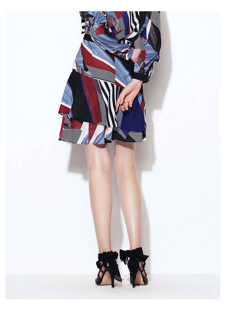VIMAGE纬漫纪春秋新款短款高腰几何图案半身裙不对称A字裙女V806401