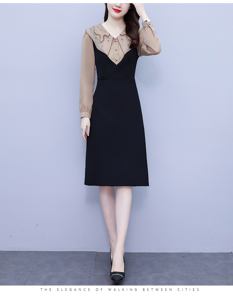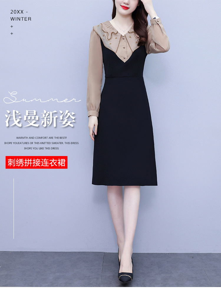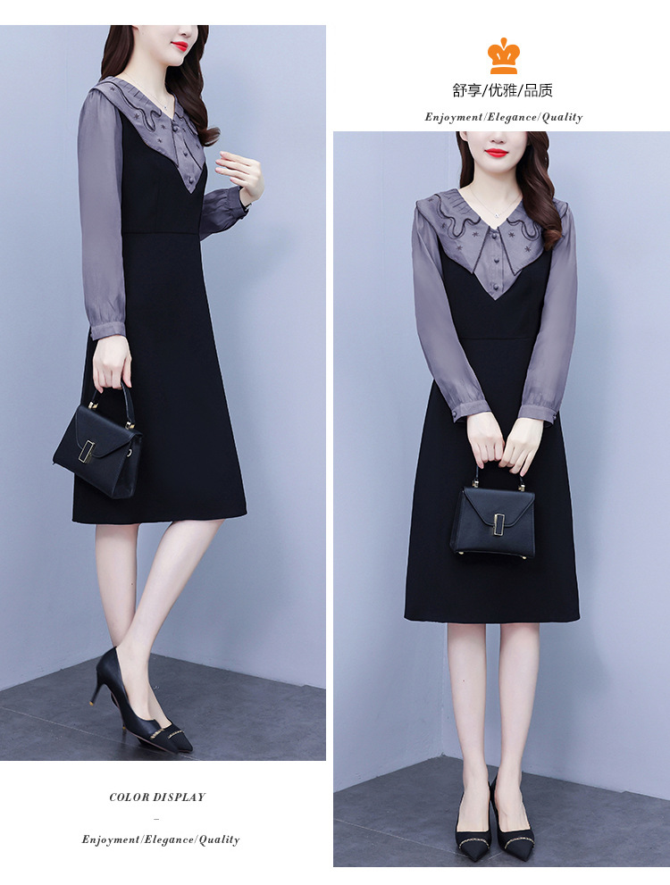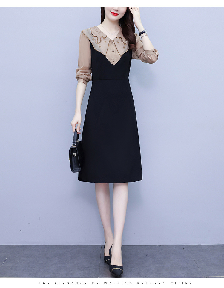 2023年秋季女装新款法式收腰显瘦气质小黑裙假两件连衣裙HTN-B00-0265