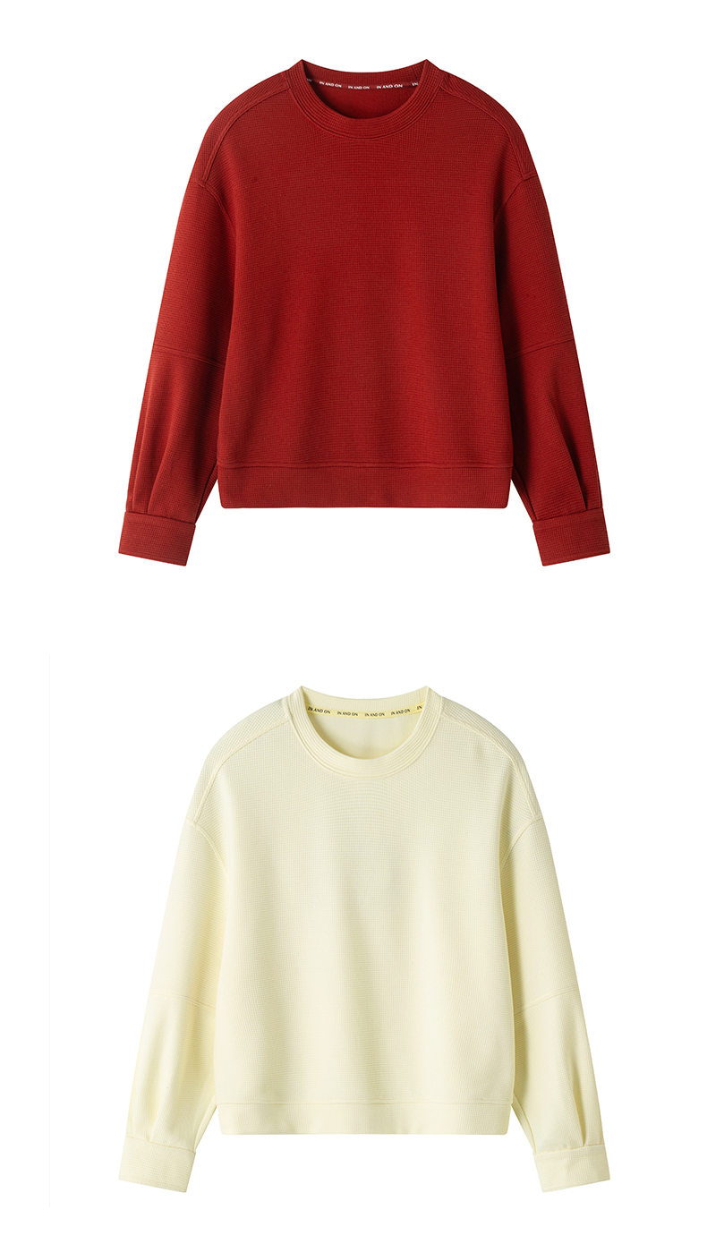 IN AND ON 漫步 精梳棉华夫格休闲圆领卫衣 55178/55179