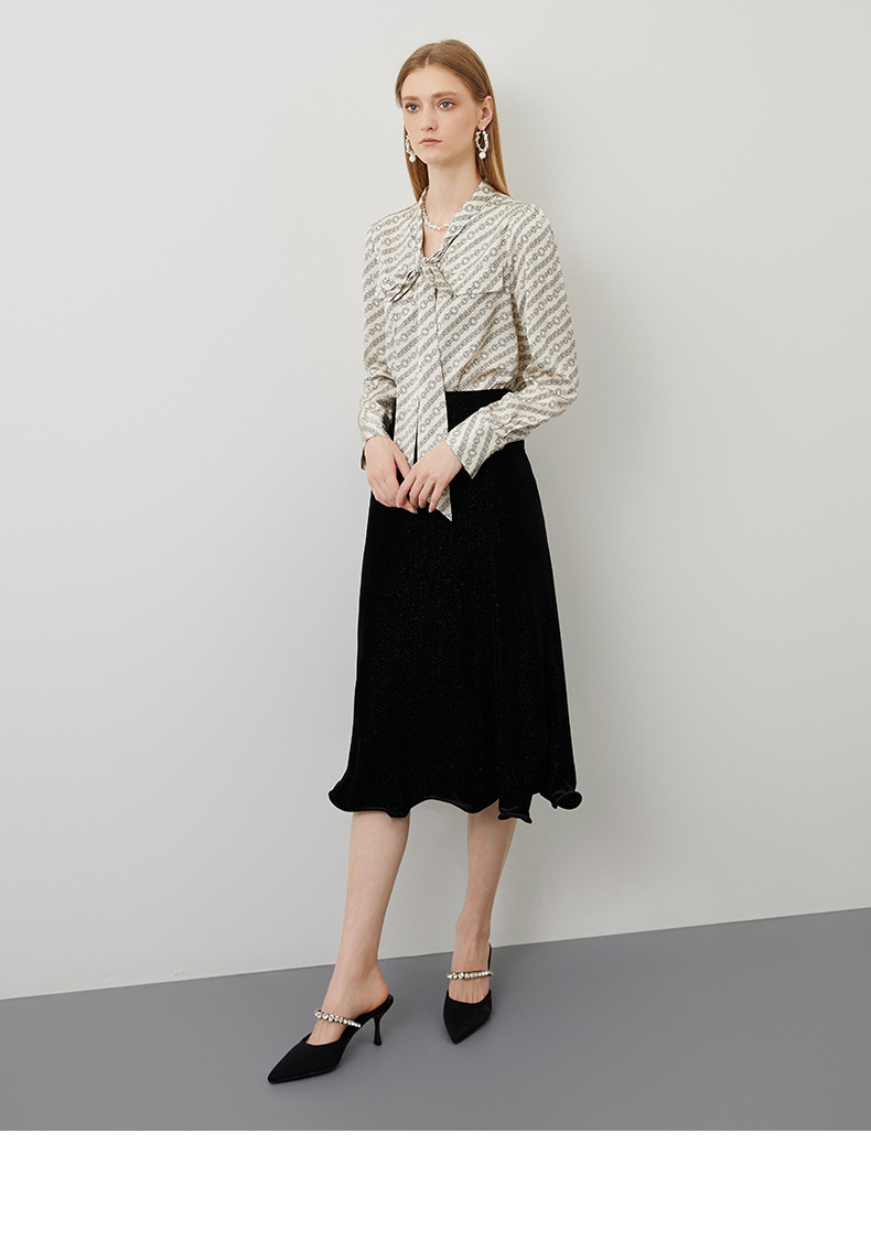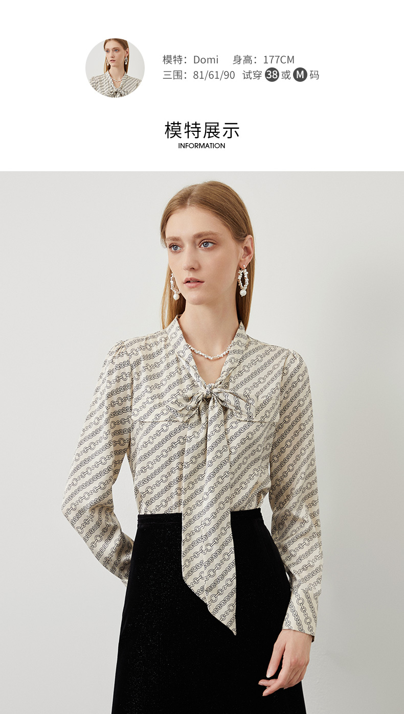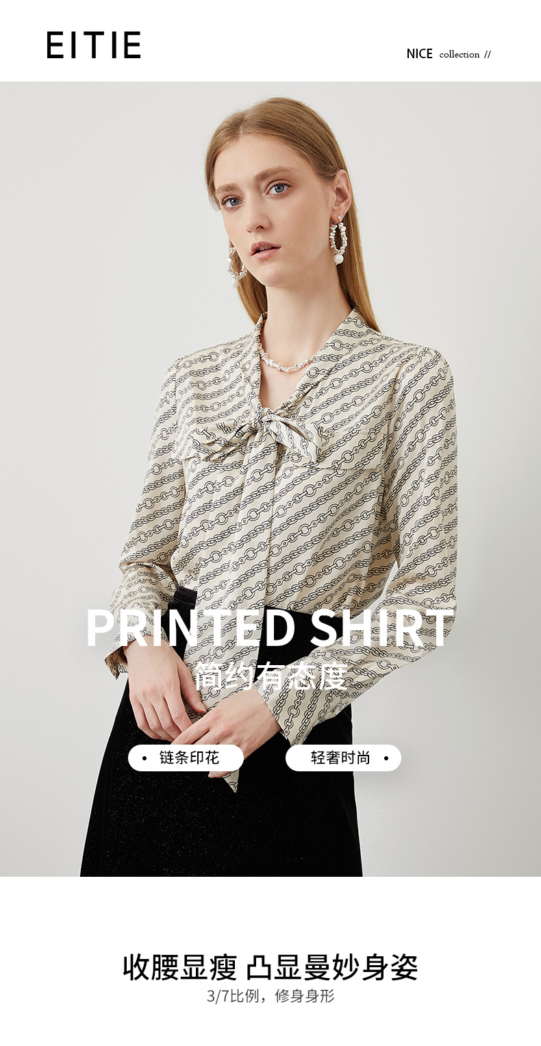 EITIE爱特爱秋季新款时尚通勤印花飘带衬衫女上衣6709416