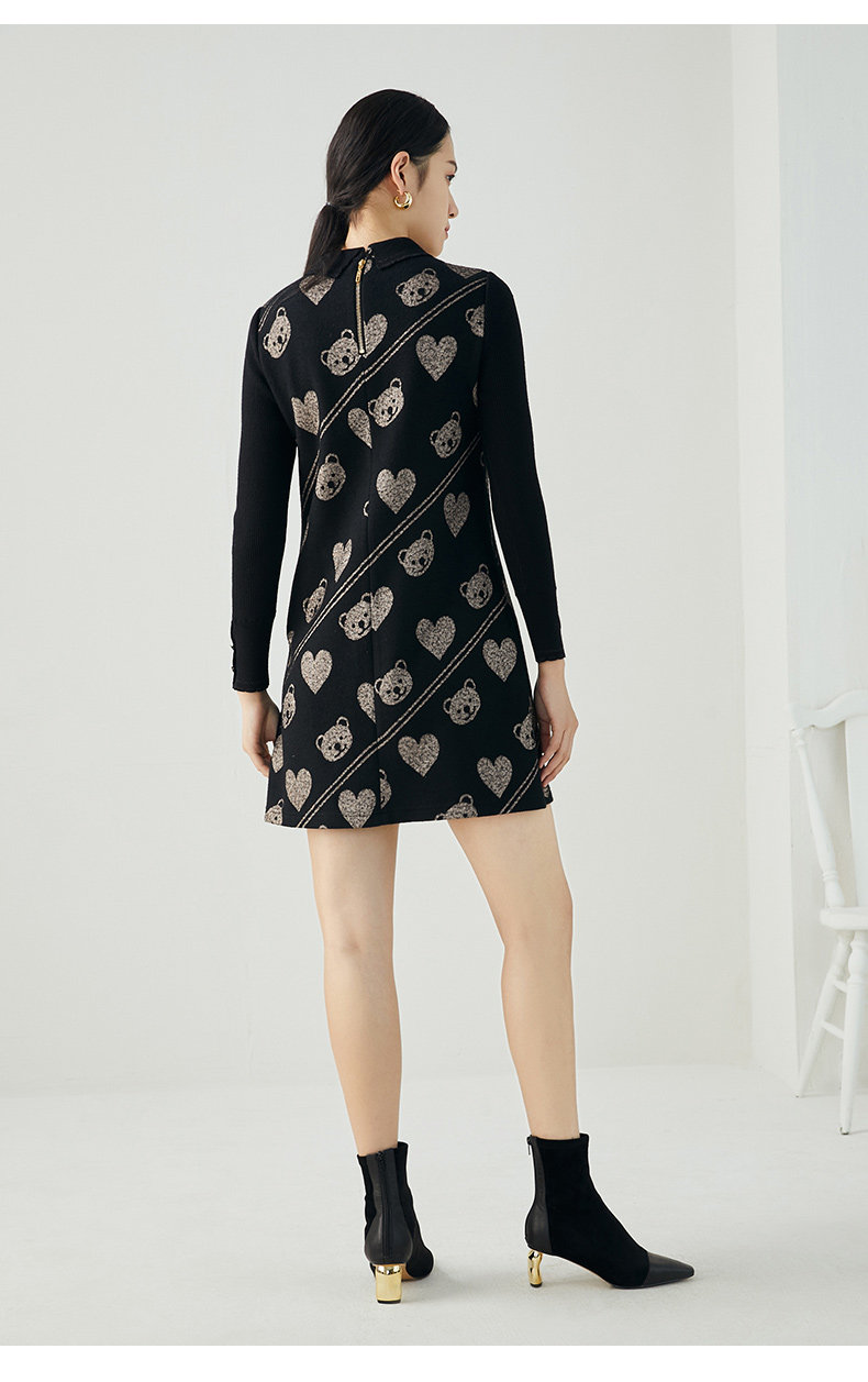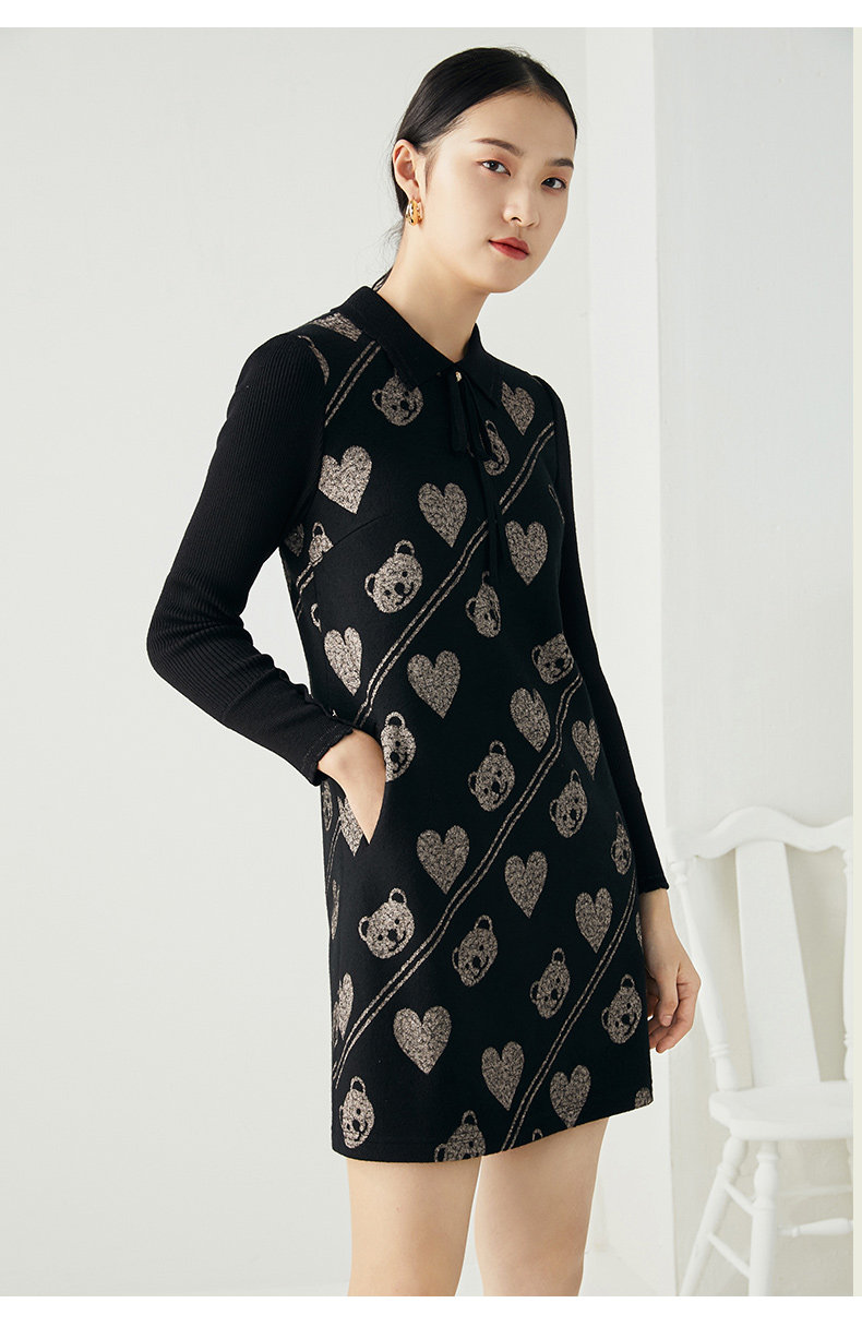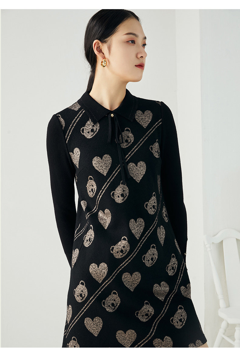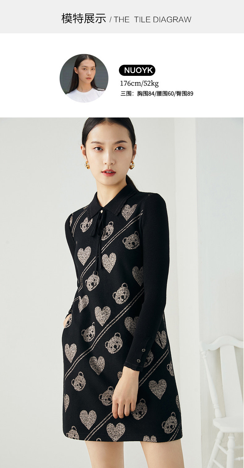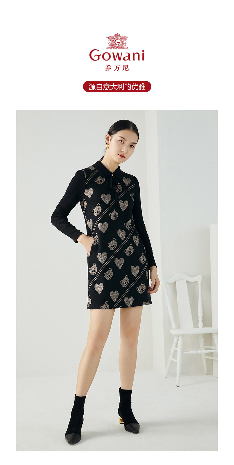 乔万尼秋冬新款羊毛呢针织设计感软糯舒适显瘦保暖长袖连衣裙ES4E306