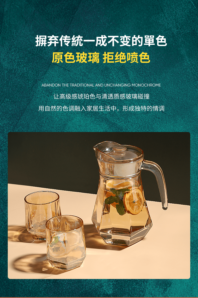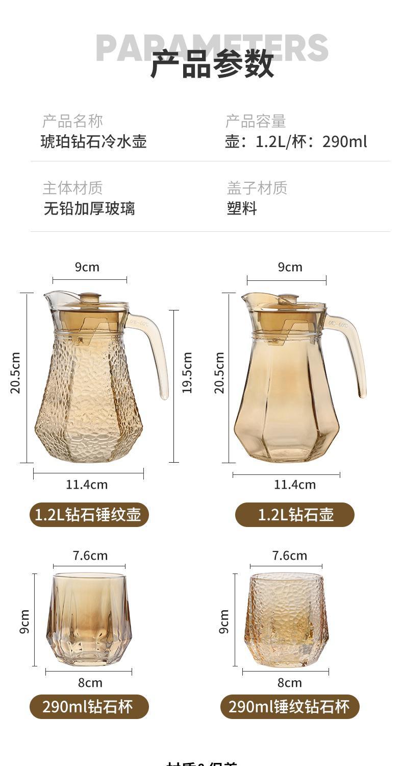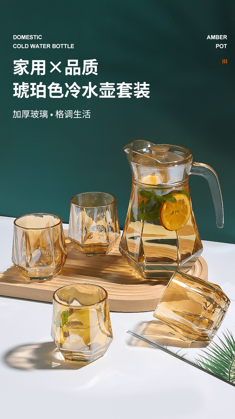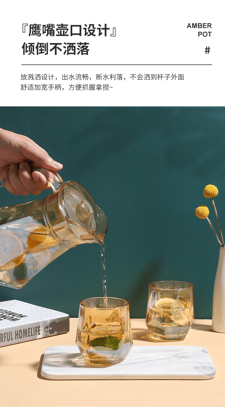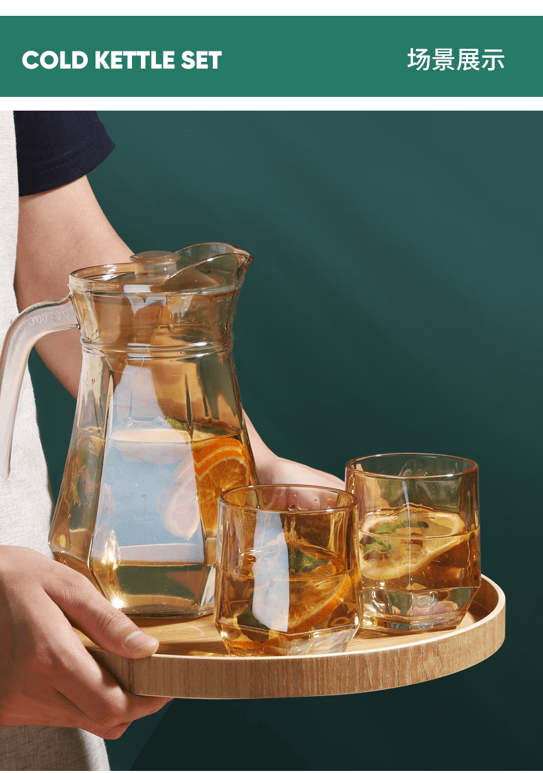 【7件套】琥珀色冷水壶水具套装家用六角杯 喝水杯 网红玻璃杯