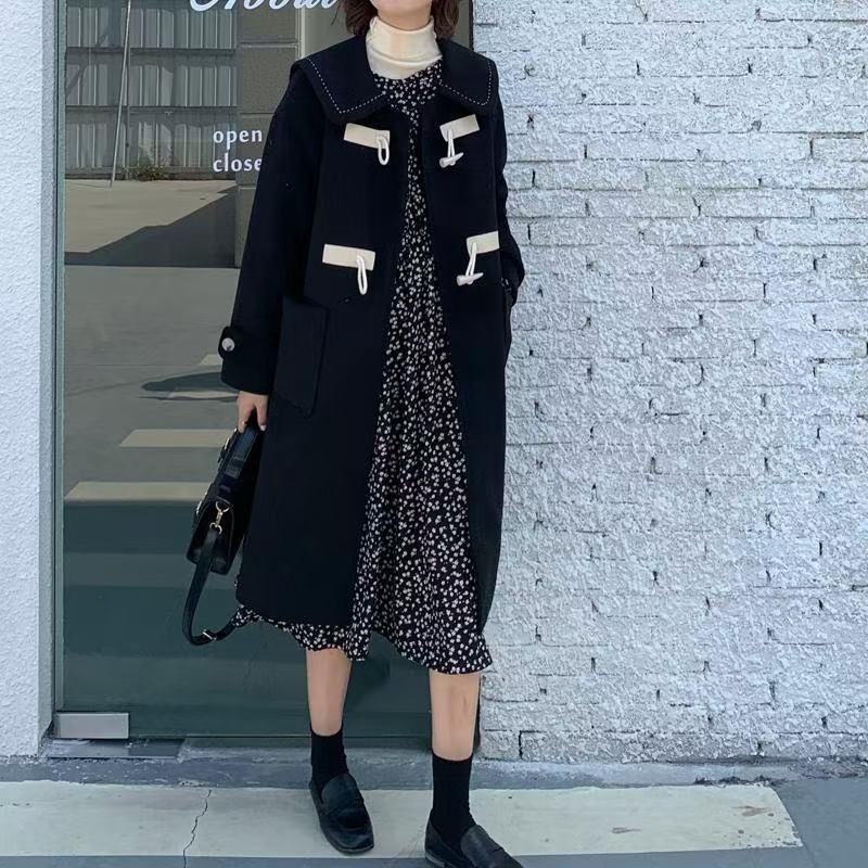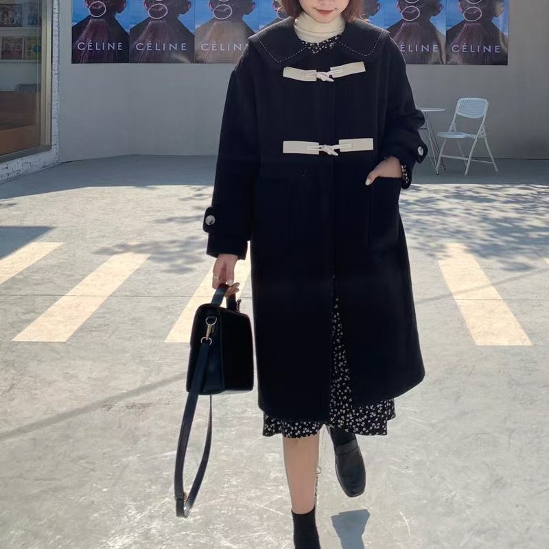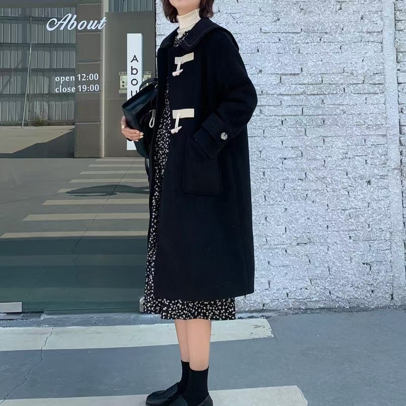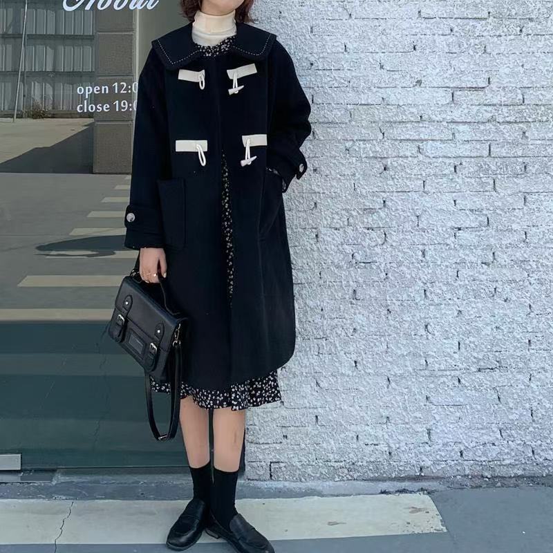 【诗铭洛可】2137 大衣牛角扣韩版毛呢外套B18-1