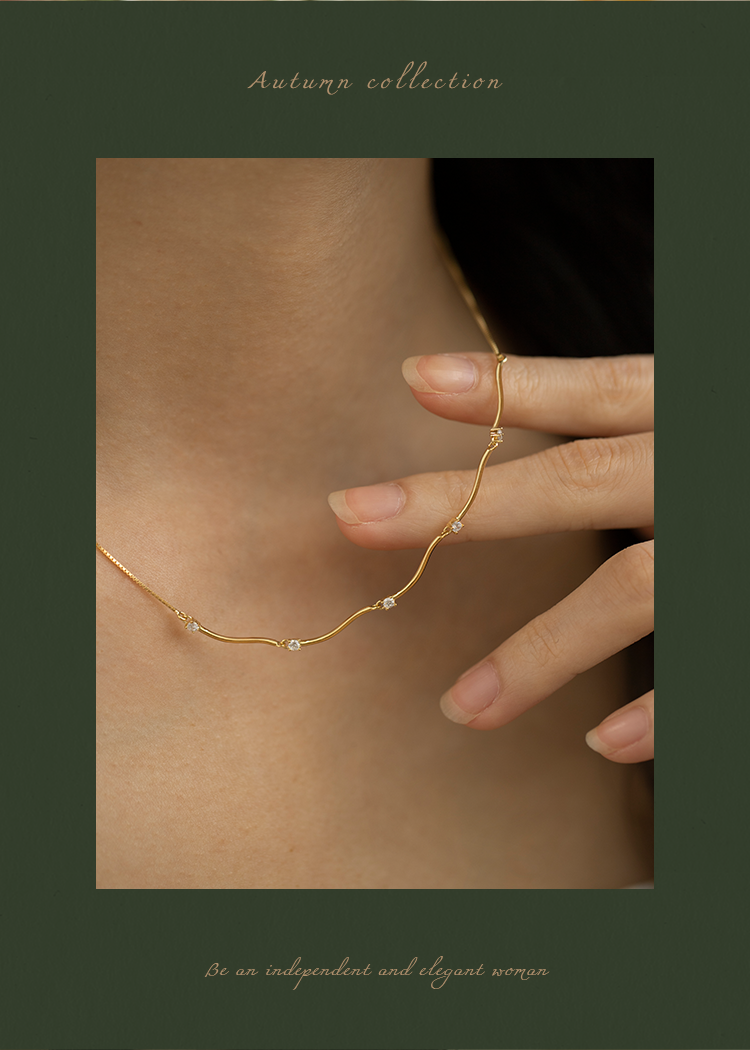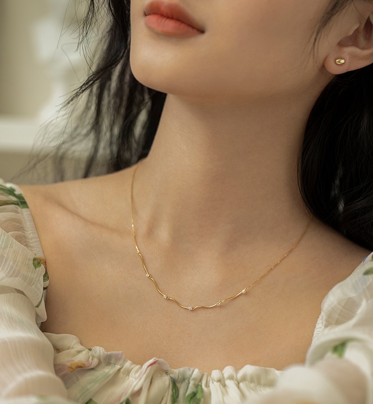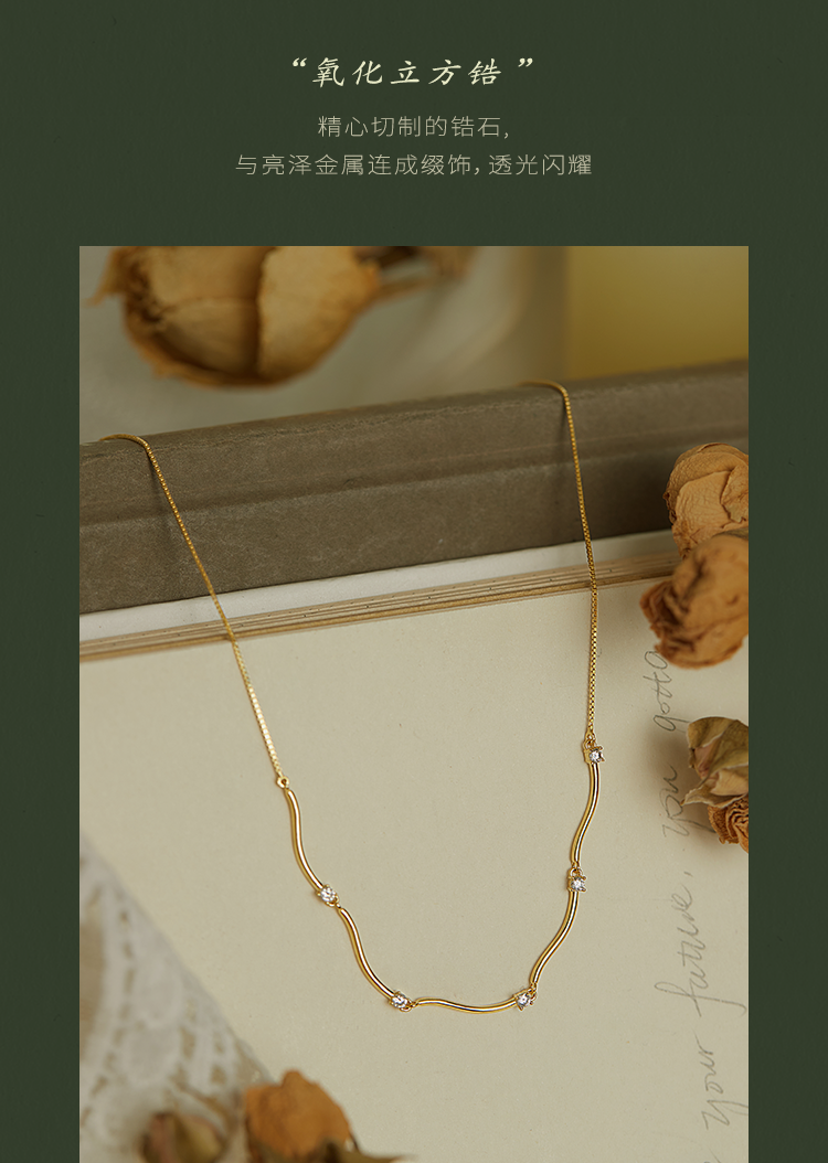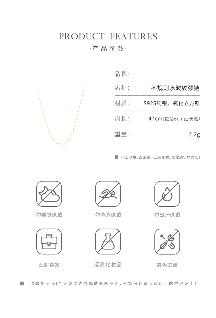Oflye潮流饰品 S925银不规则水波纹设计感银饰项链小众夏季新款锁骨链颈链女