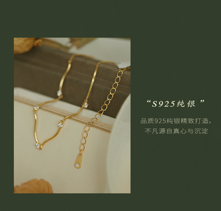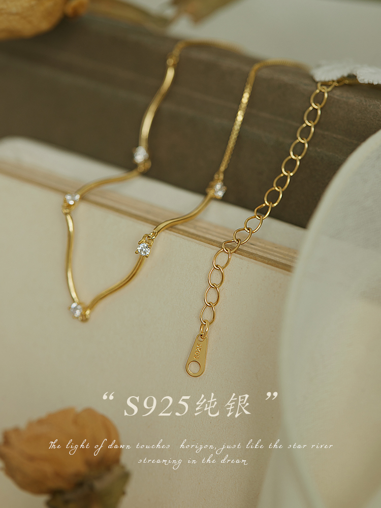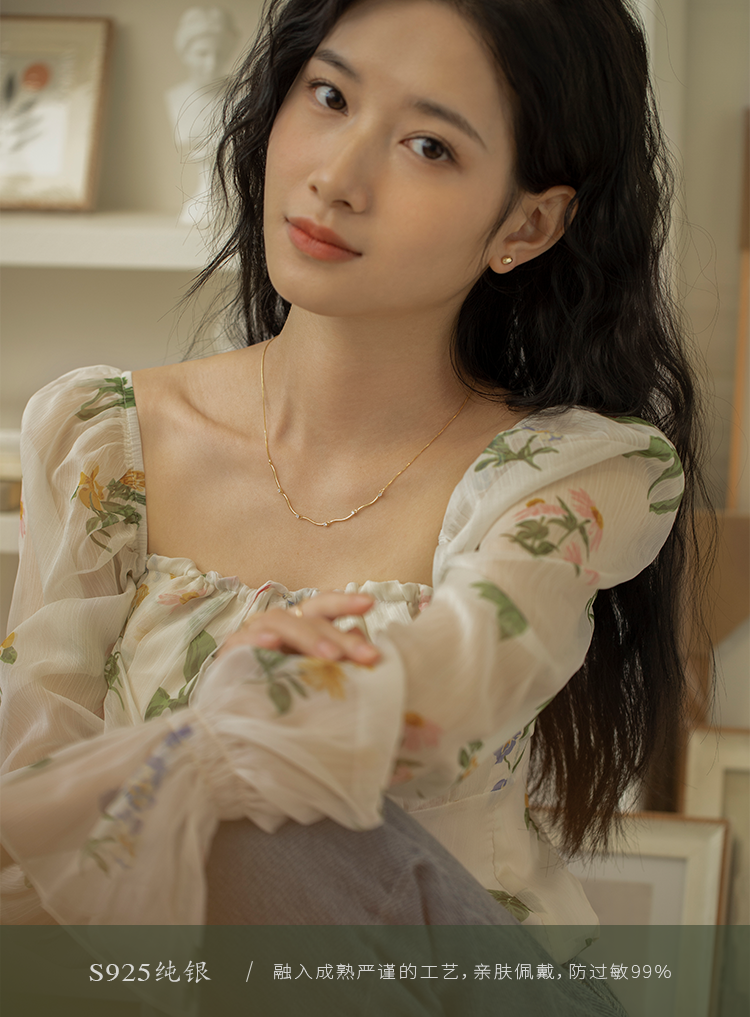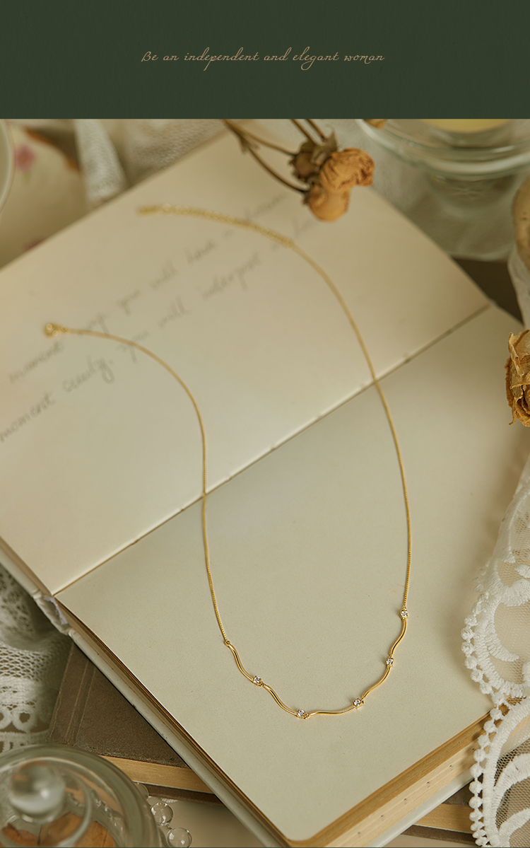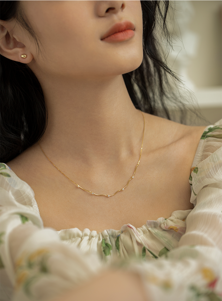Oflye潮流饰品 S925银不规则水波纹设计感银饰项链小众夏季新款锁骨链颈链女