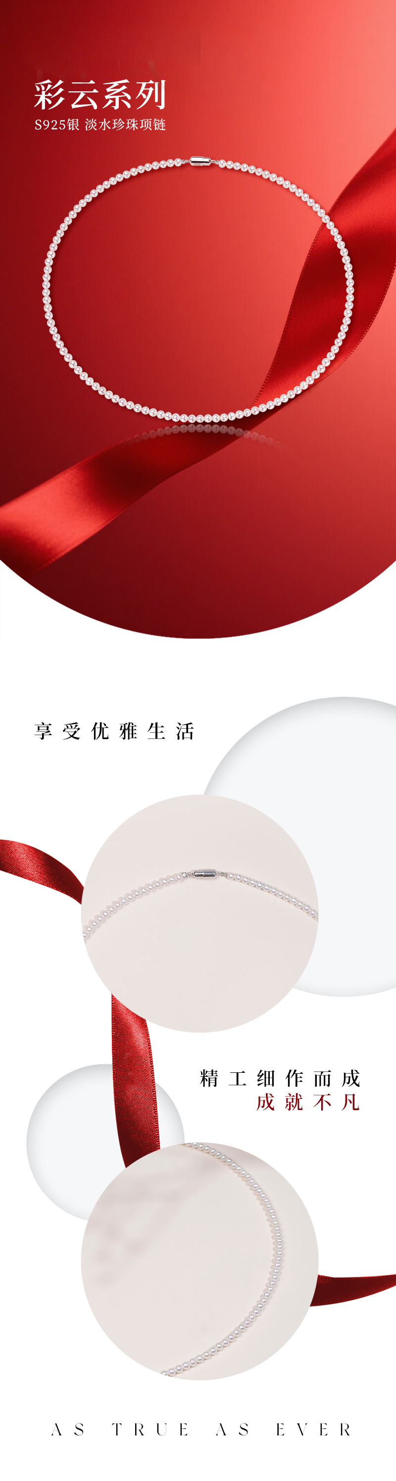 彩云系列 S925银淡水珍珠项链 3-4mm