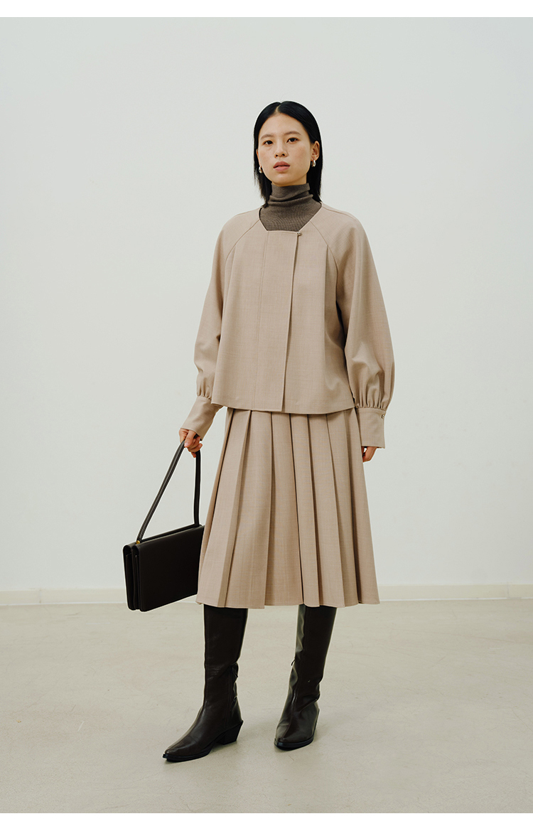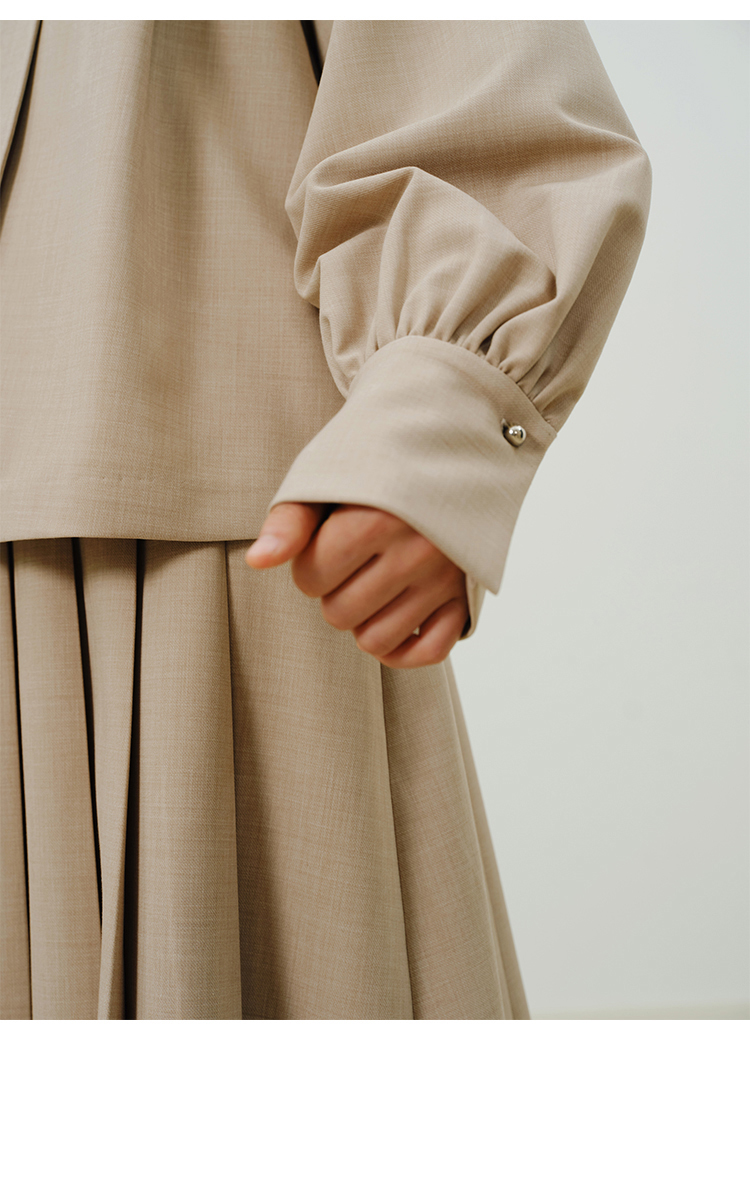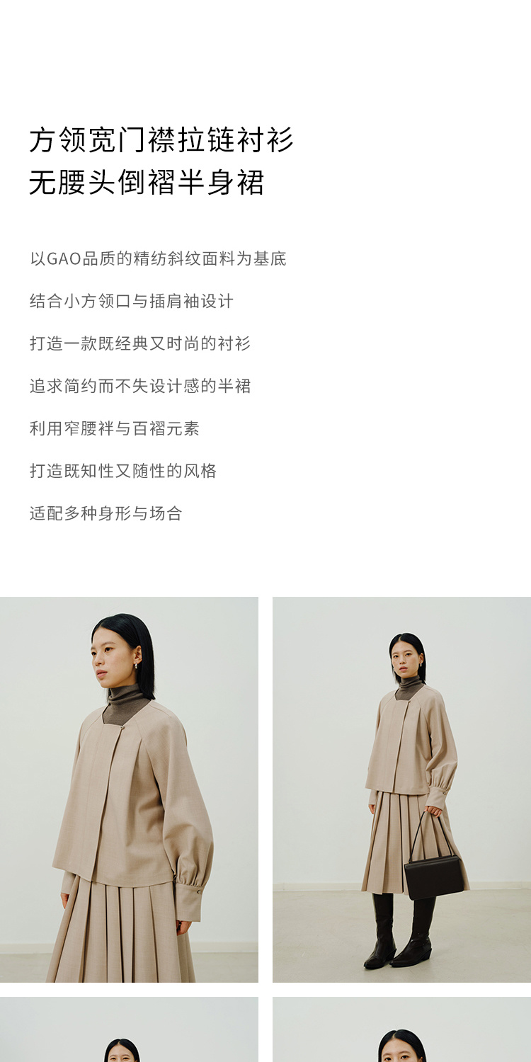 HeyDress宽门襟衬衫女秋季宽松显瘦衬衣百褶裙套装慵懒长袖上衣