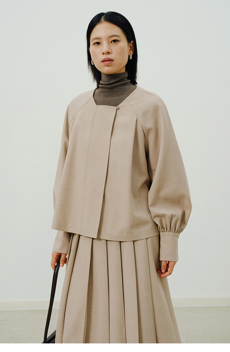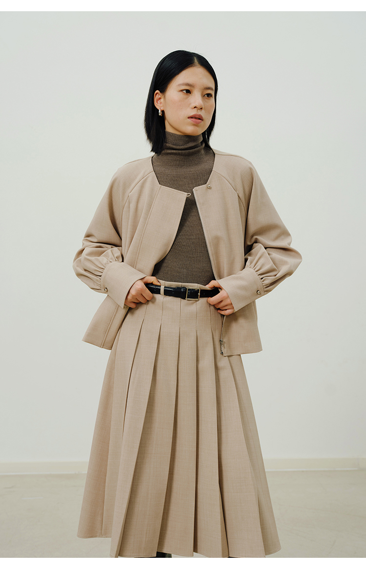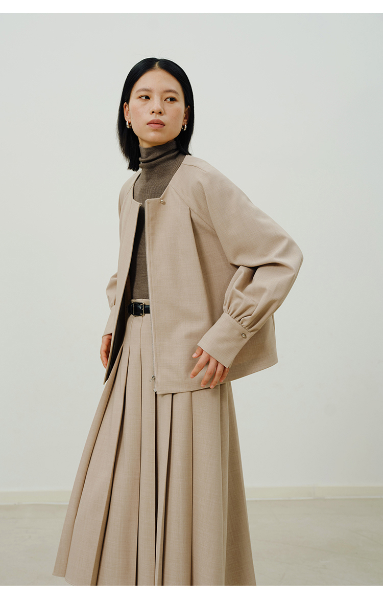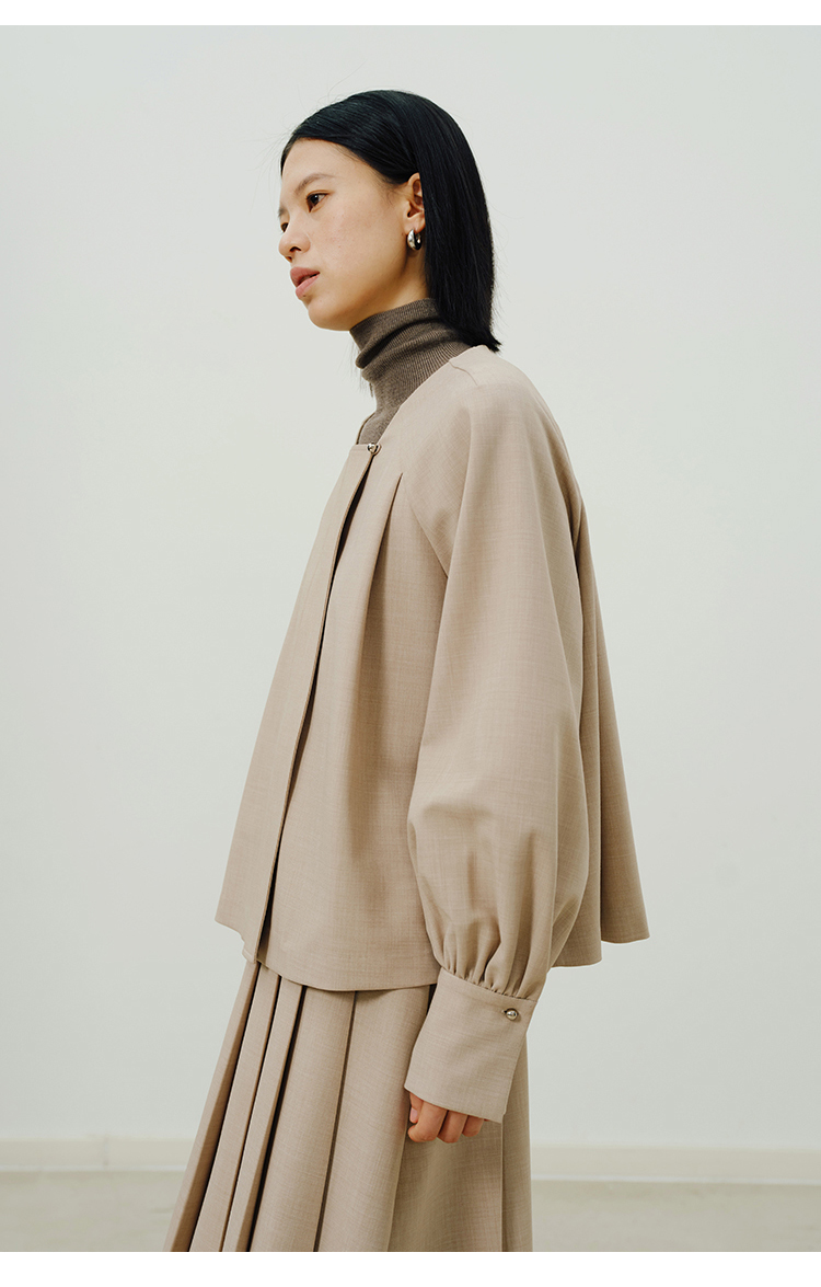 HeyDress宽门襟衬衫女秋季宽松显瘦衬衣百褶裙套装慵懒长袖上衣