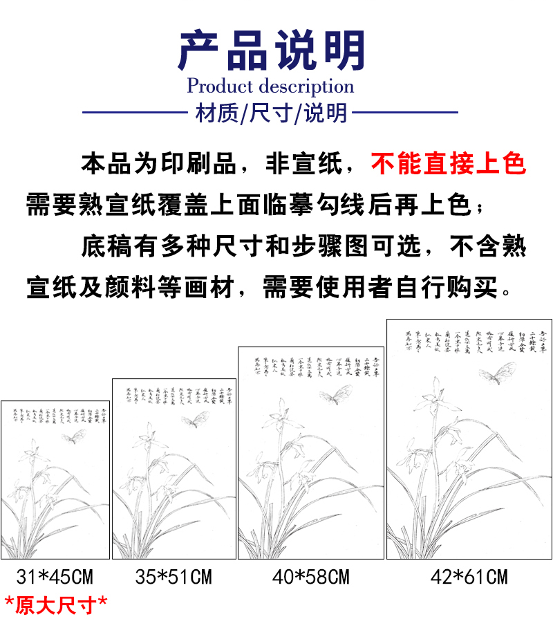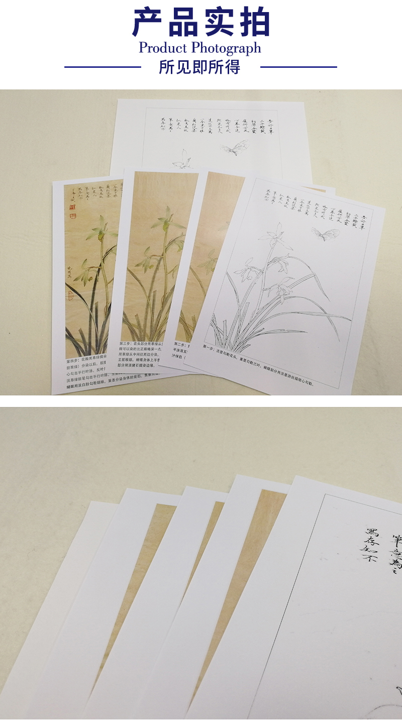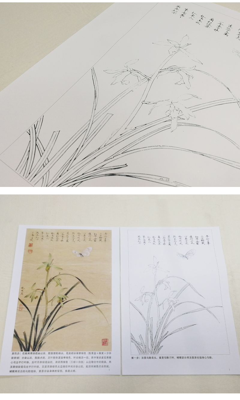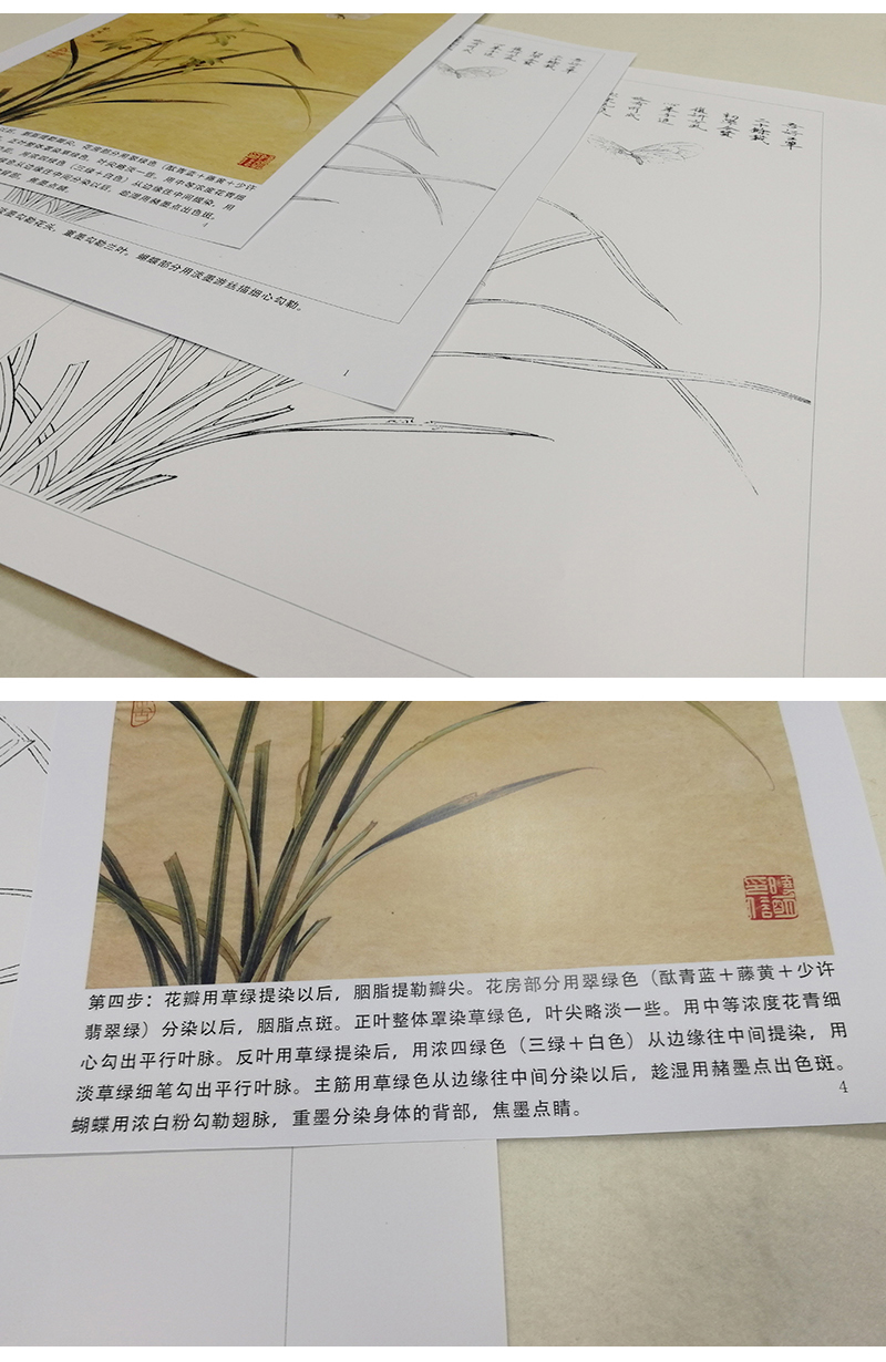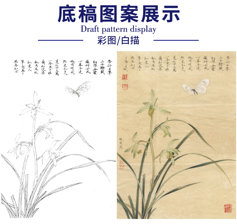 【有步骤、大彩图】李晓明工笔画白描底稿《春兰嬉蝶图》蝴蝶兰花临摹勾线花鸟线稿KB24