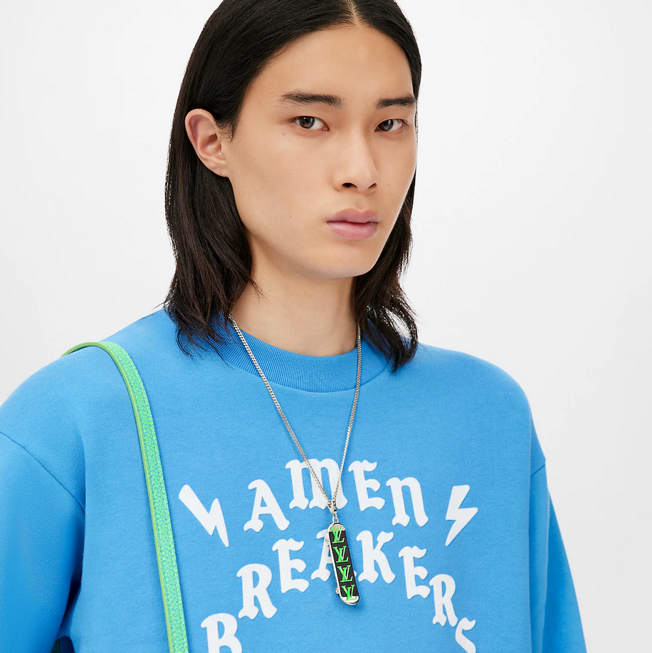 黄色logo的项链和滑板都是金色,其余两款是银色