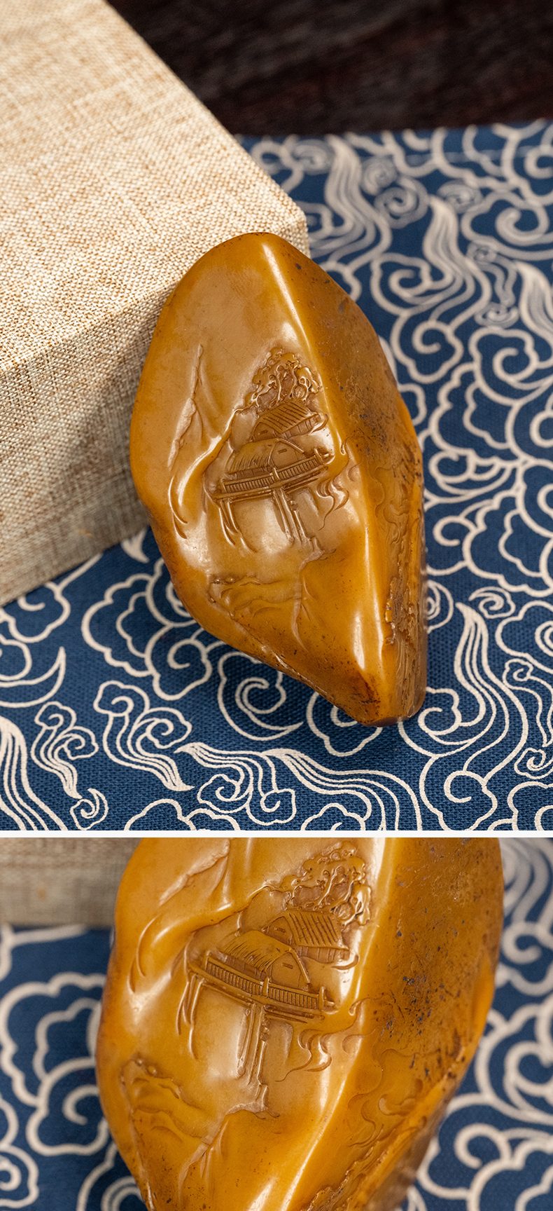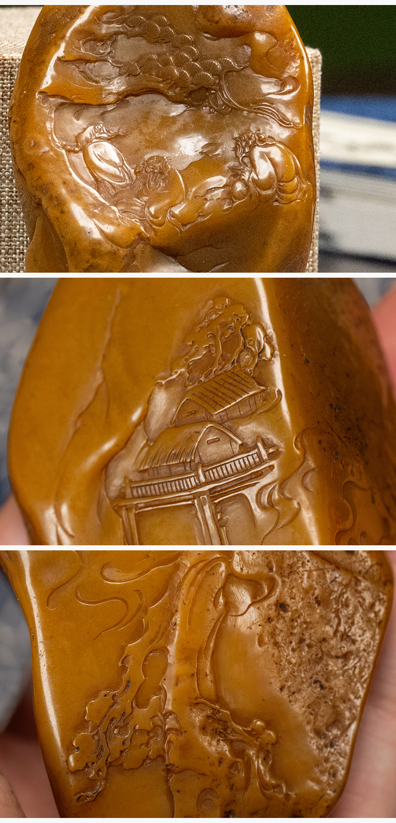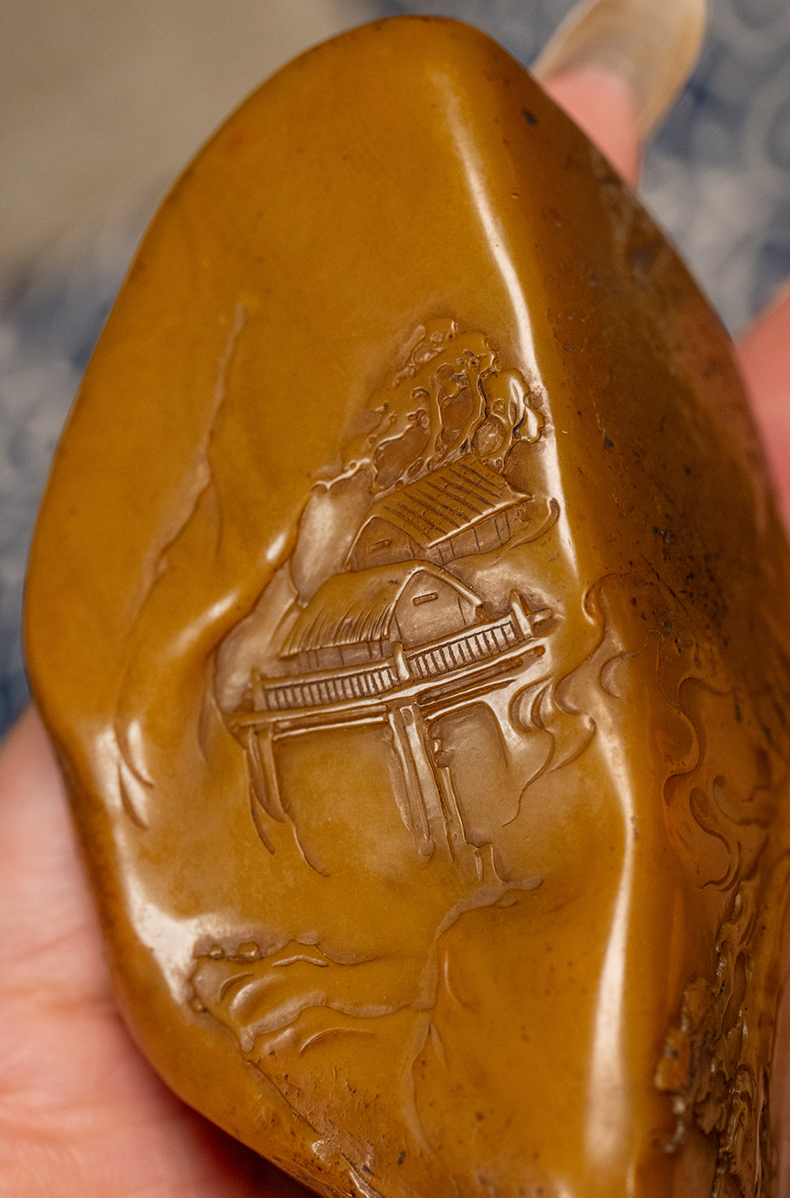 清 田黄石雕松下高仕把件