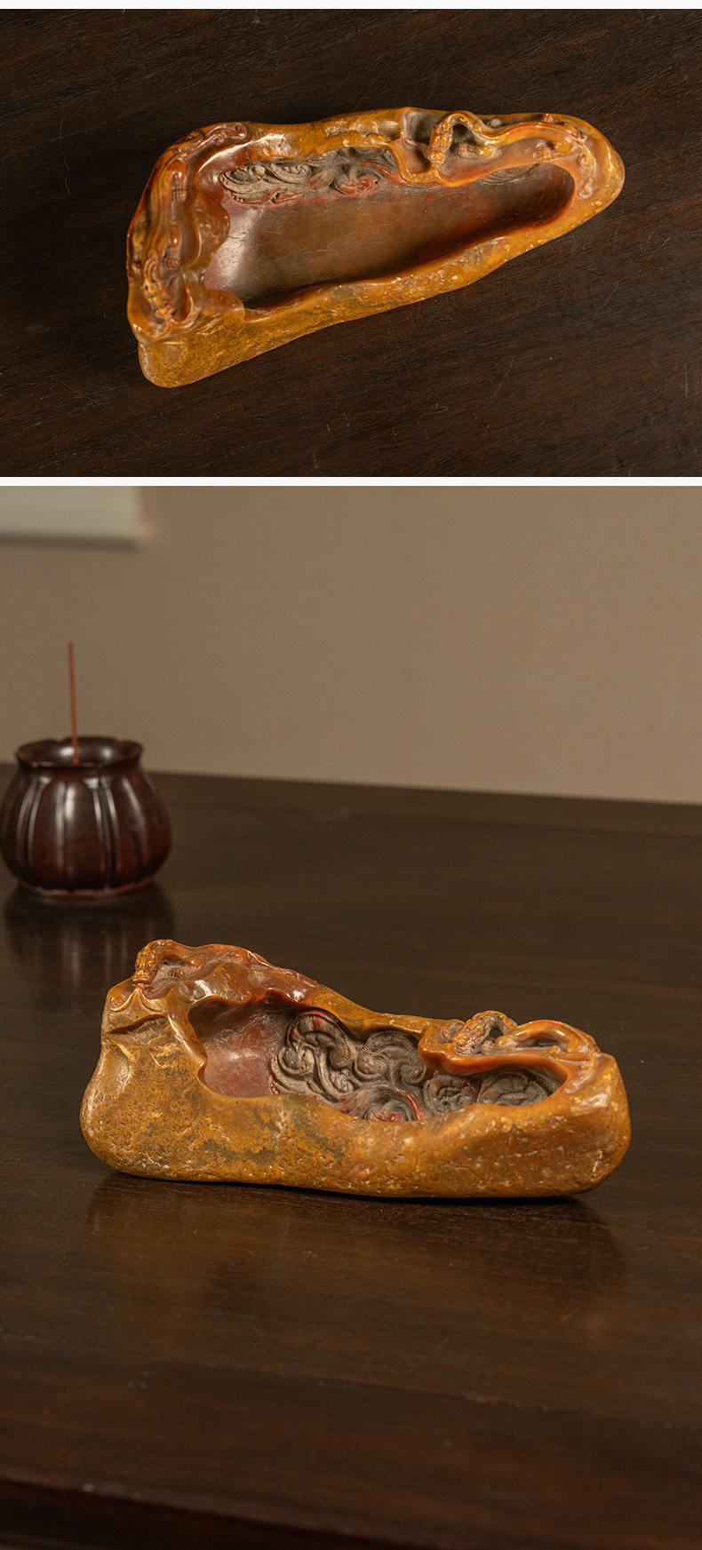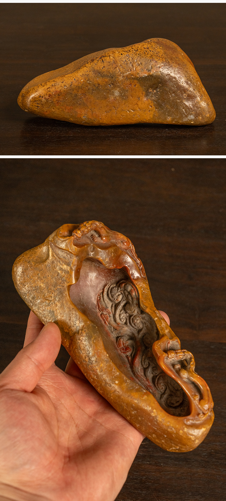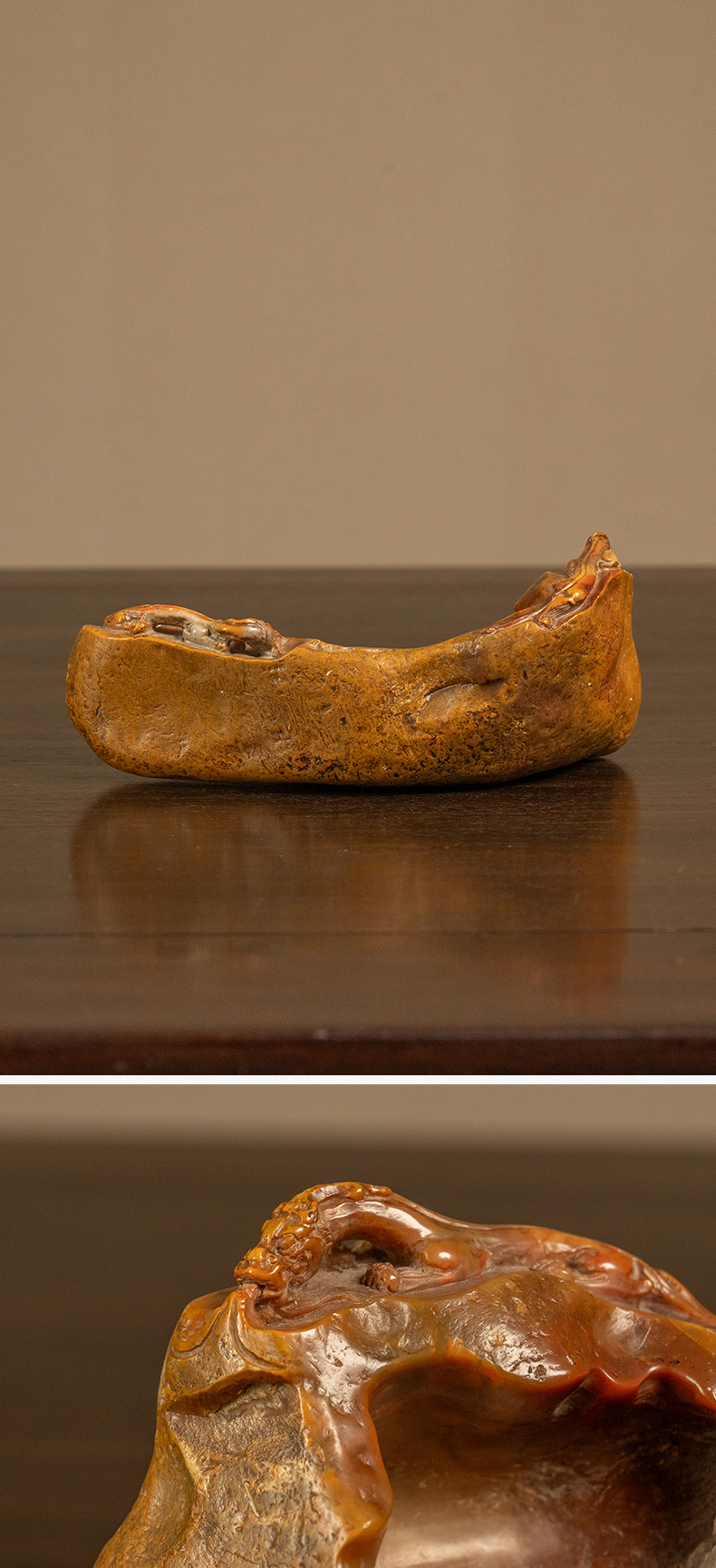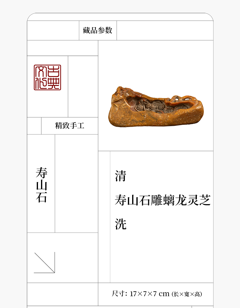 清 寿山石雕螭龙灵芝洗
