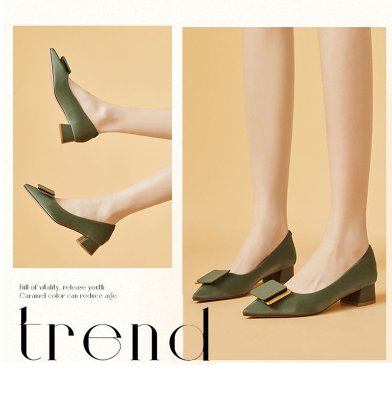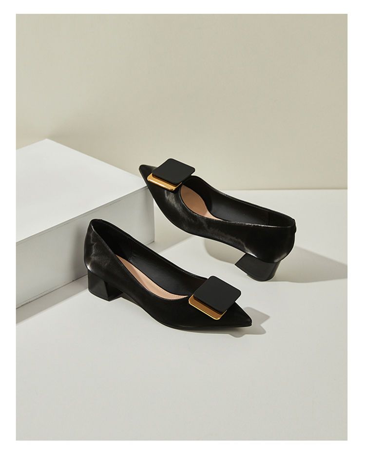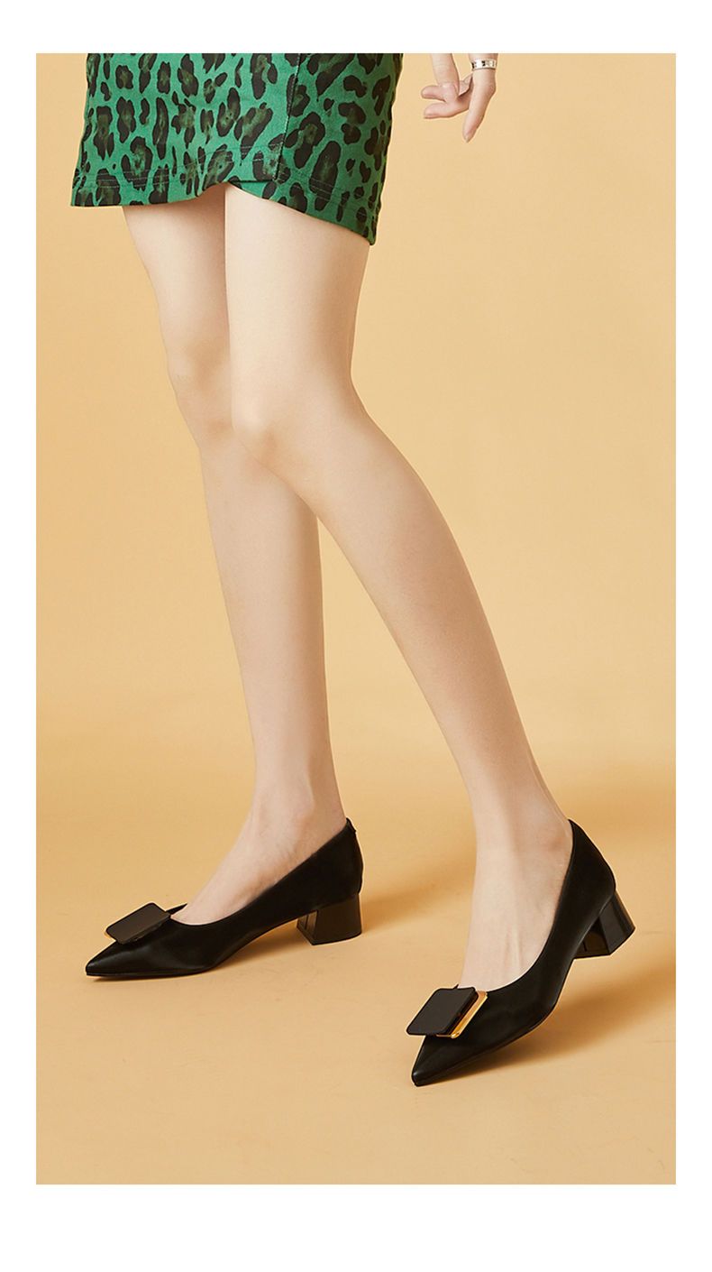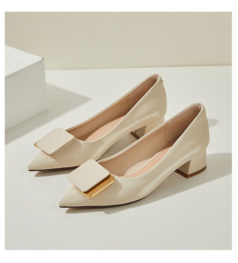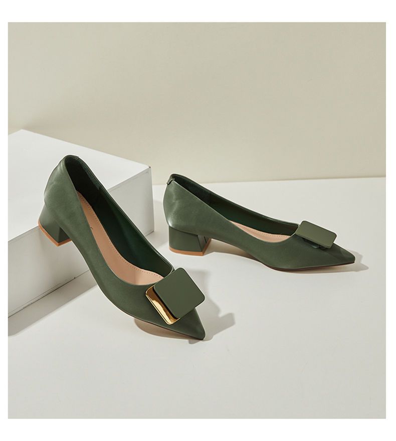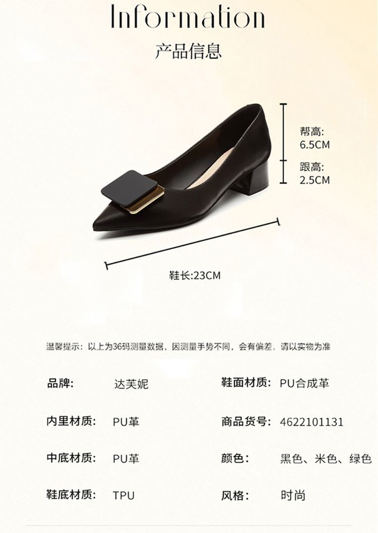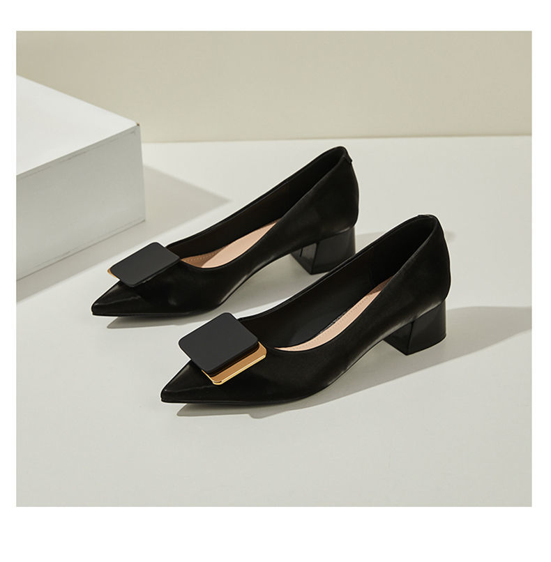 DD-粗跟高跟鞋女春秋新款时尚浅口单鞋女百搭方扣尖头女鞋