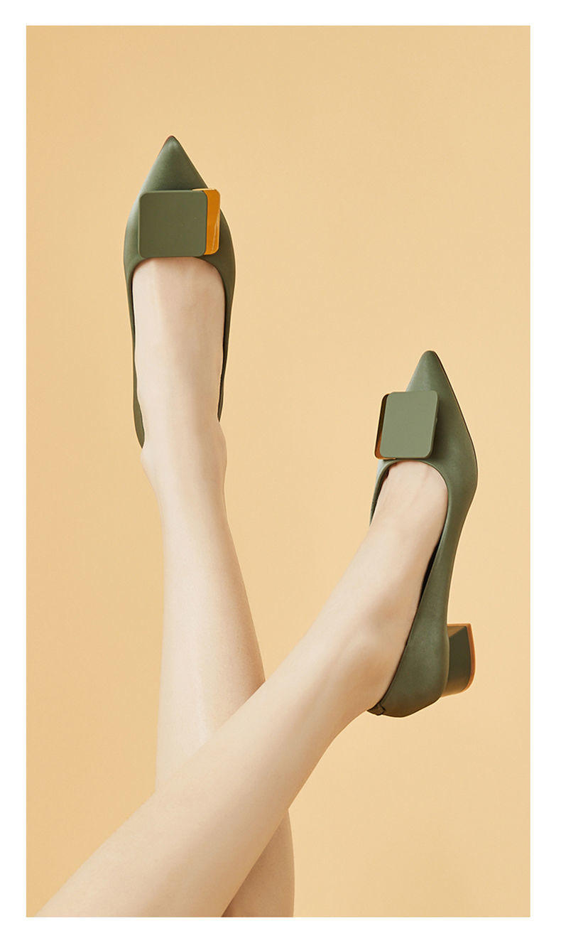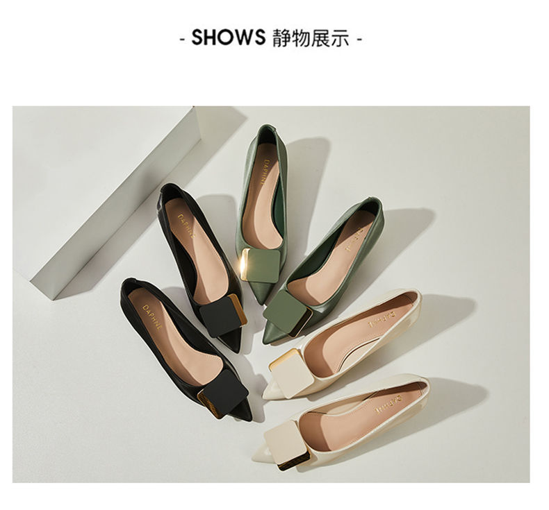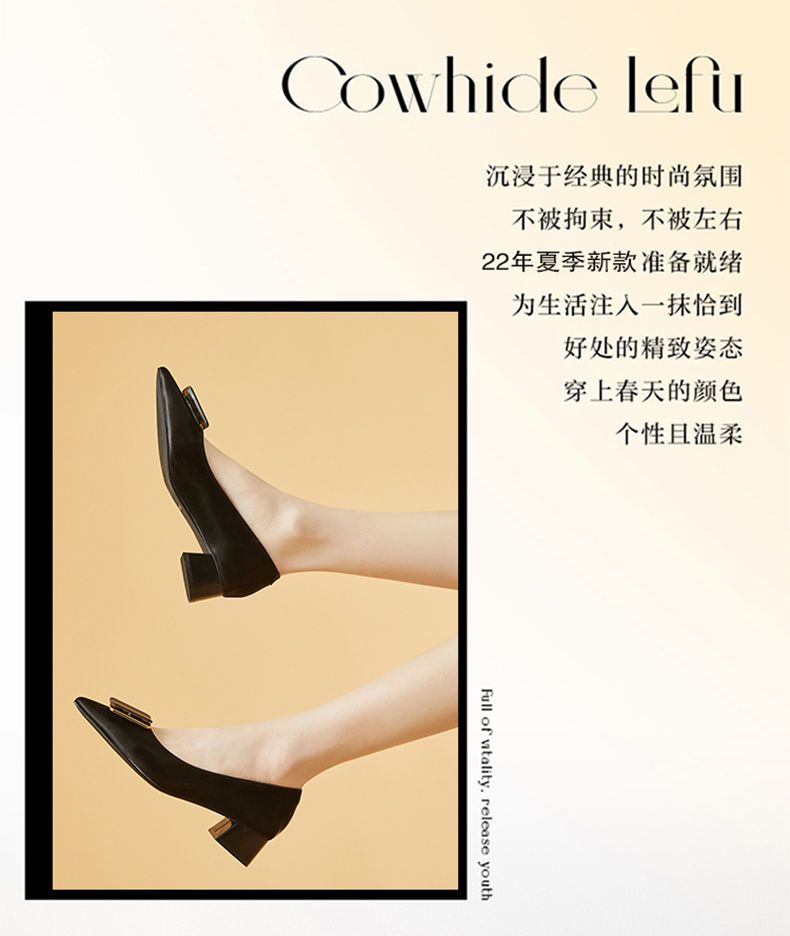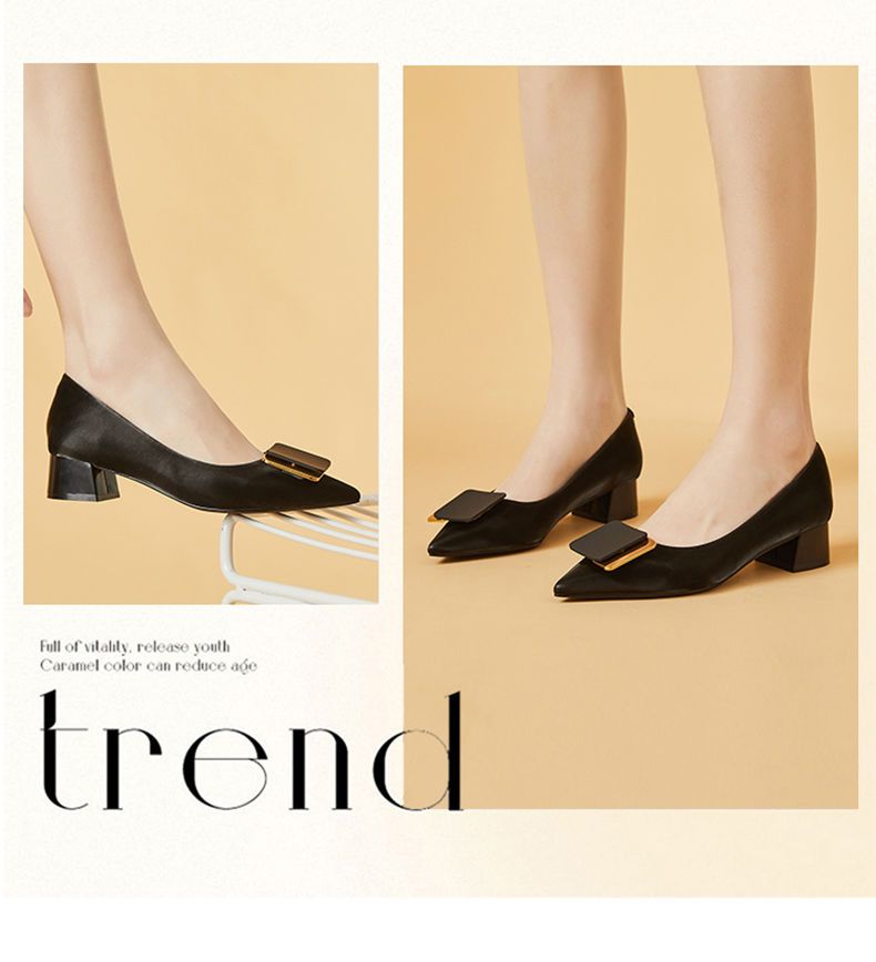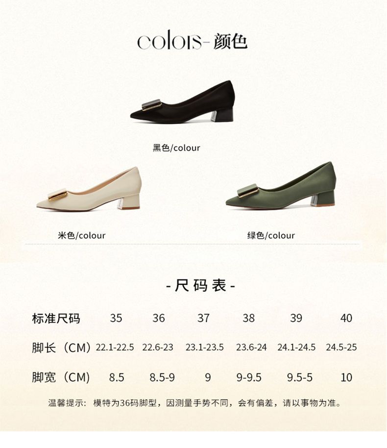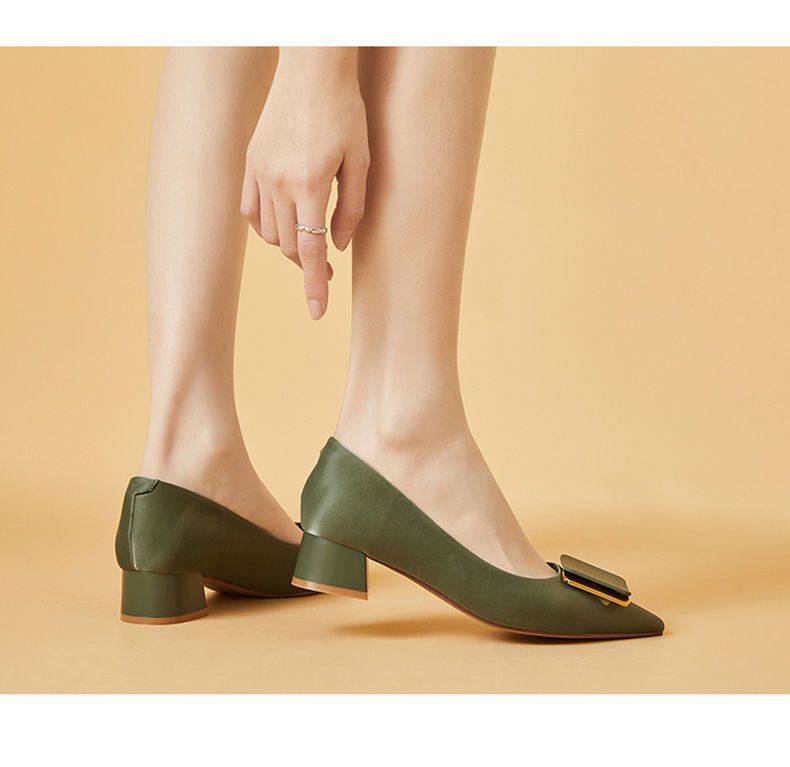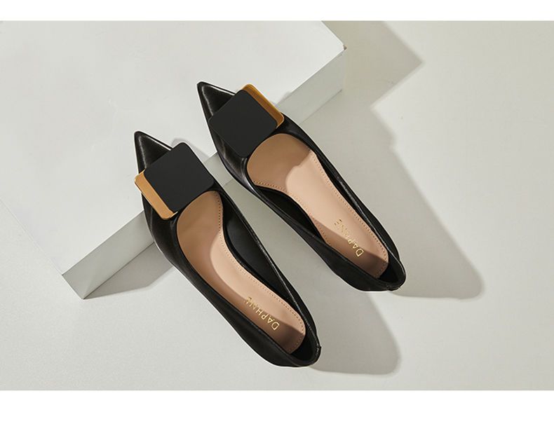 DD-粗跟高跟鞋女春秋新款时尚浅口单鞋女百搭方扣尖头女鞋