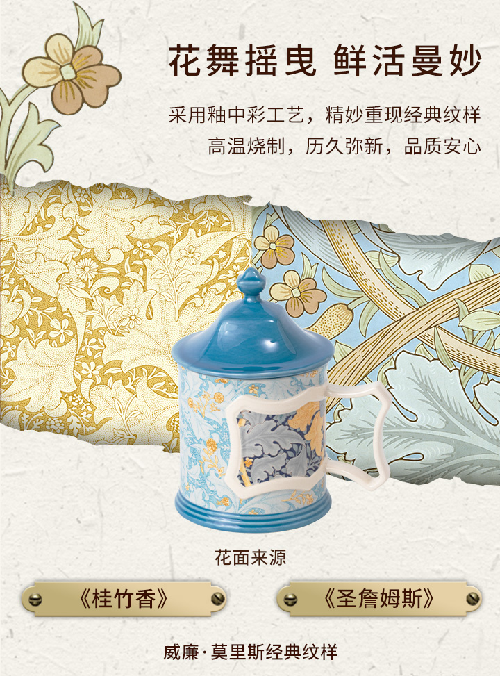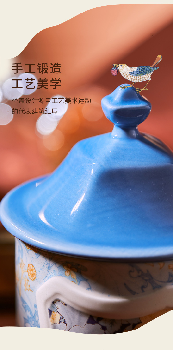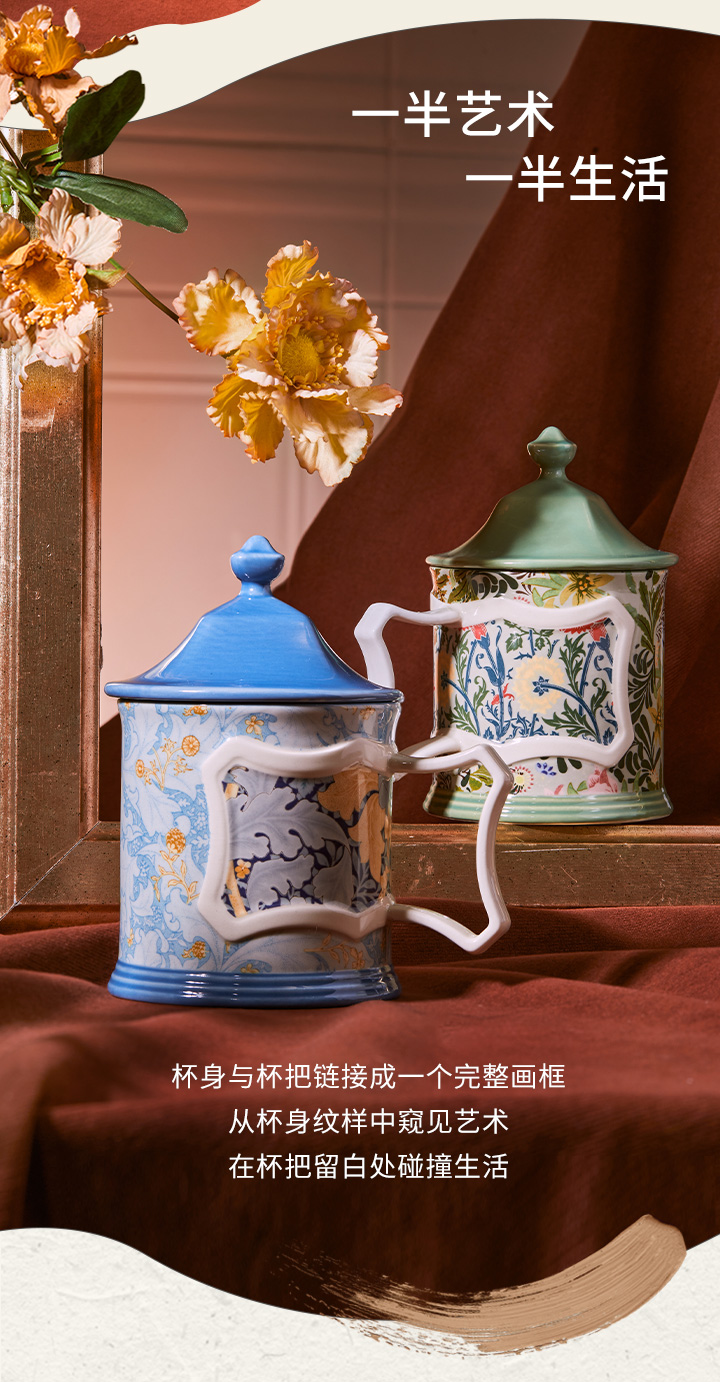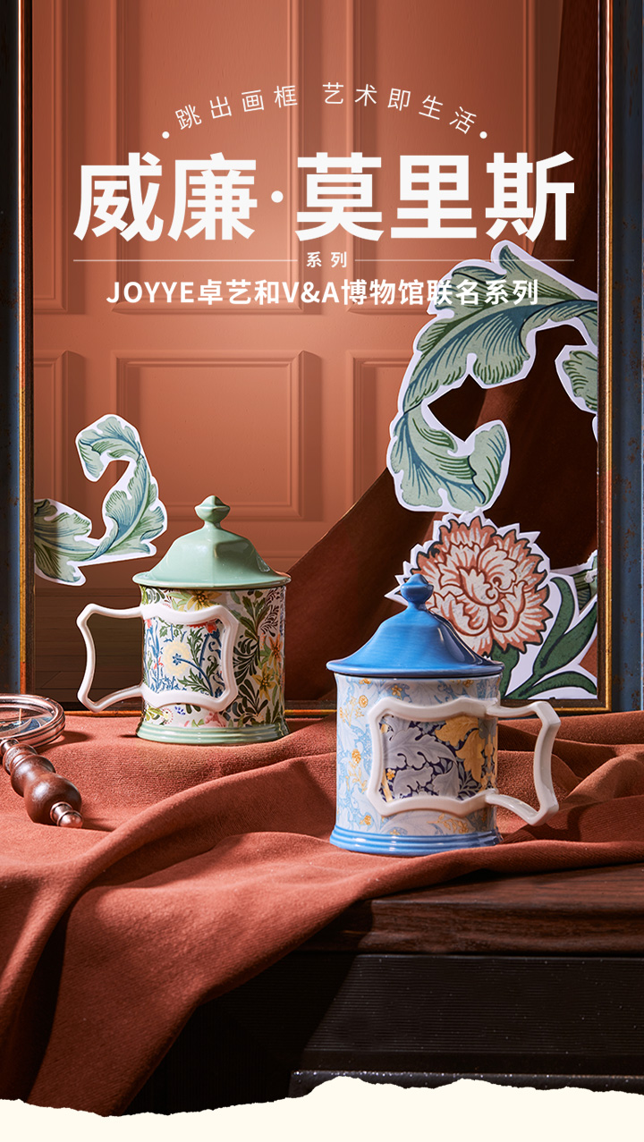 JOYYE威廉·莫里斯-高颜值创意陶瓷马克杯女情侣带盖小众设计联名杯子轻奢礼物
