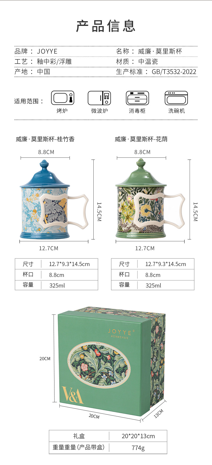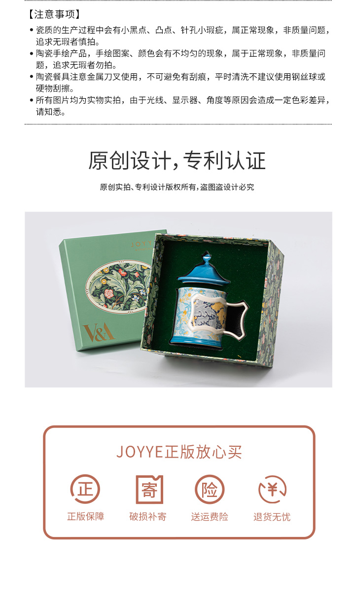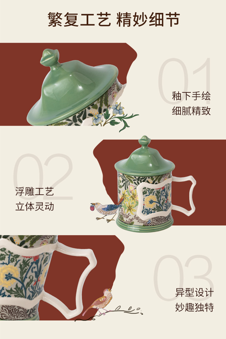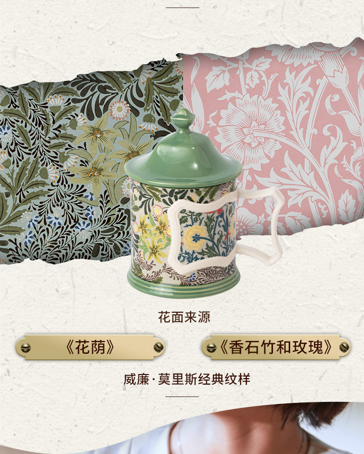JOYYE威廉·莫里斯-高颜值创意陶瓷马克杯女情侣带盖小众设计联名杯子轻奢礼物