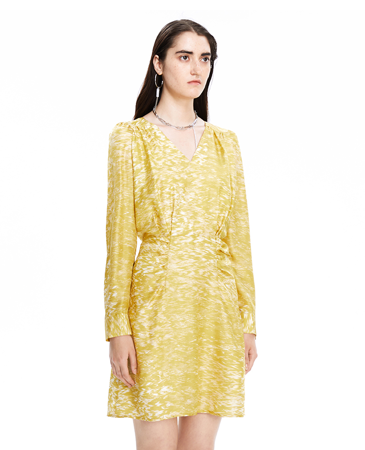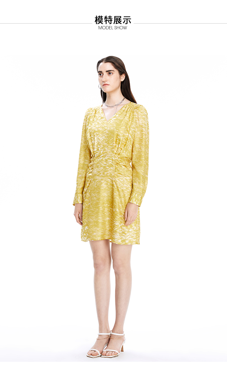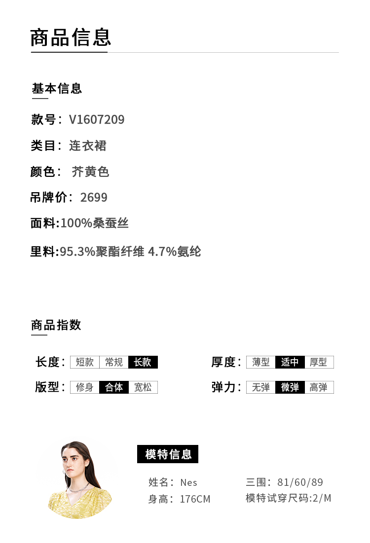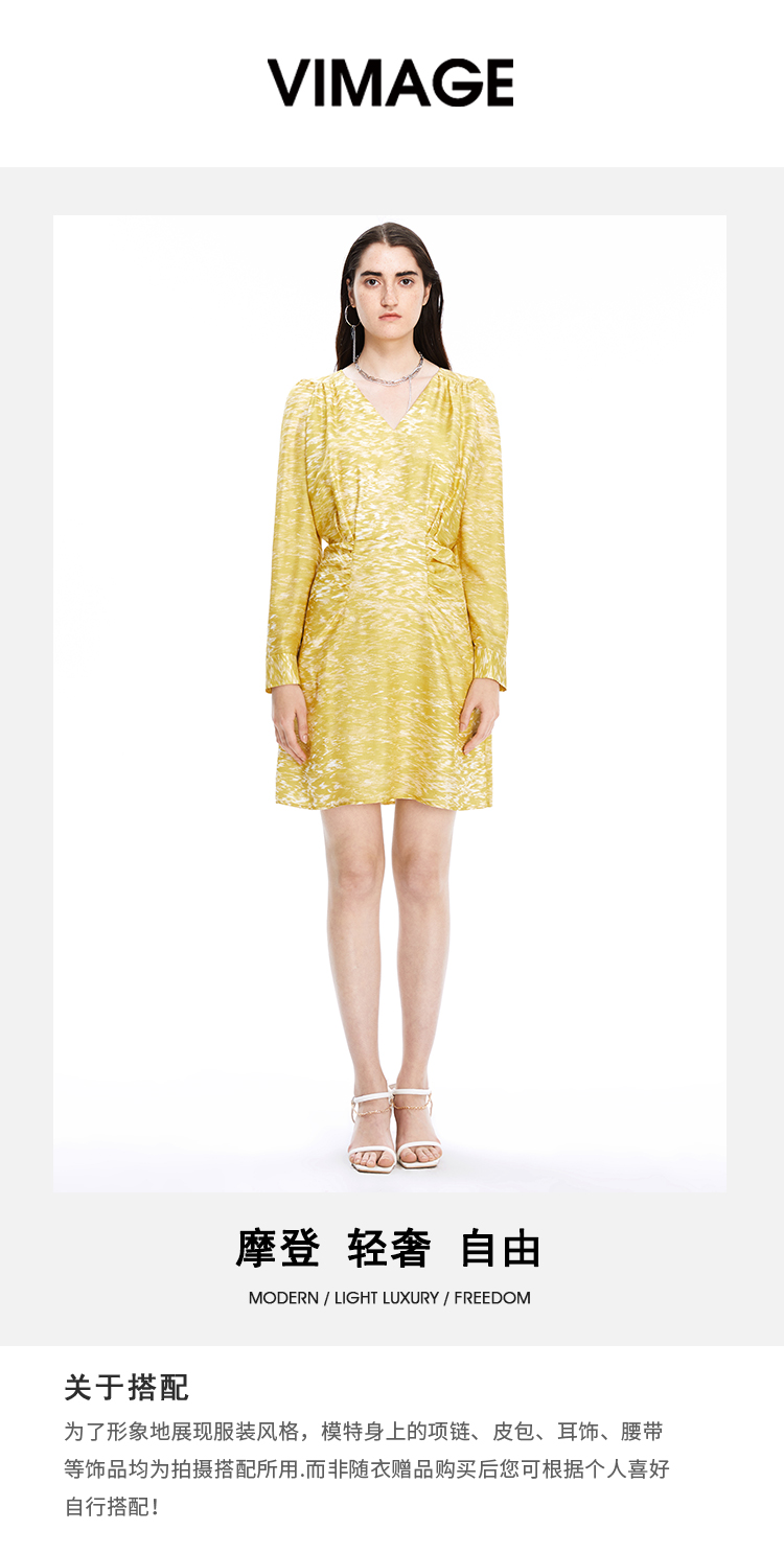 VIMAGE纬漫纪秋季新品V领简约时尚长袖高腰优雅连衣裙V1607209