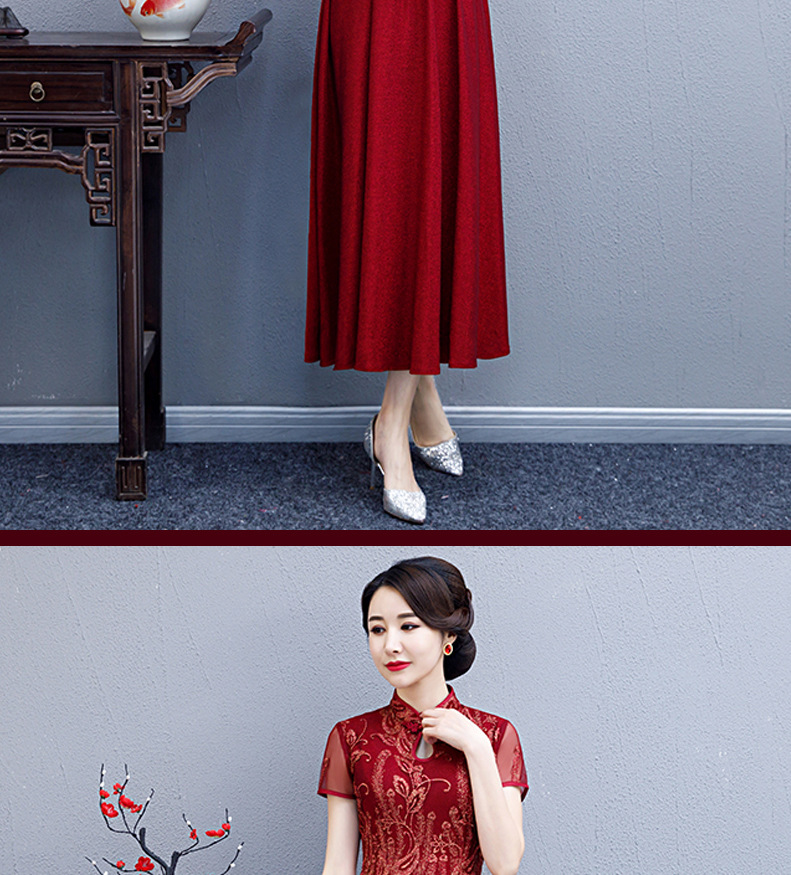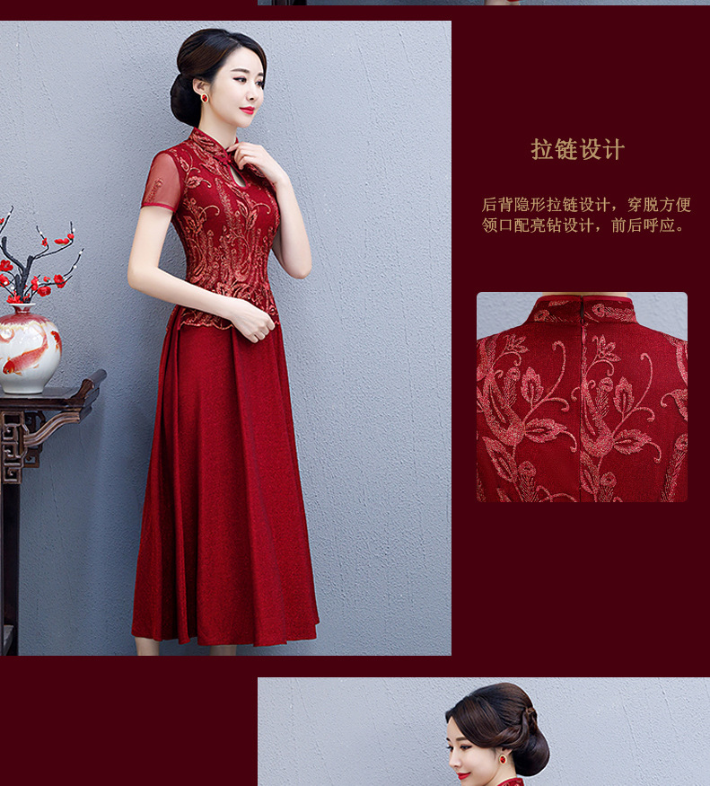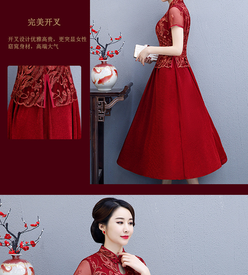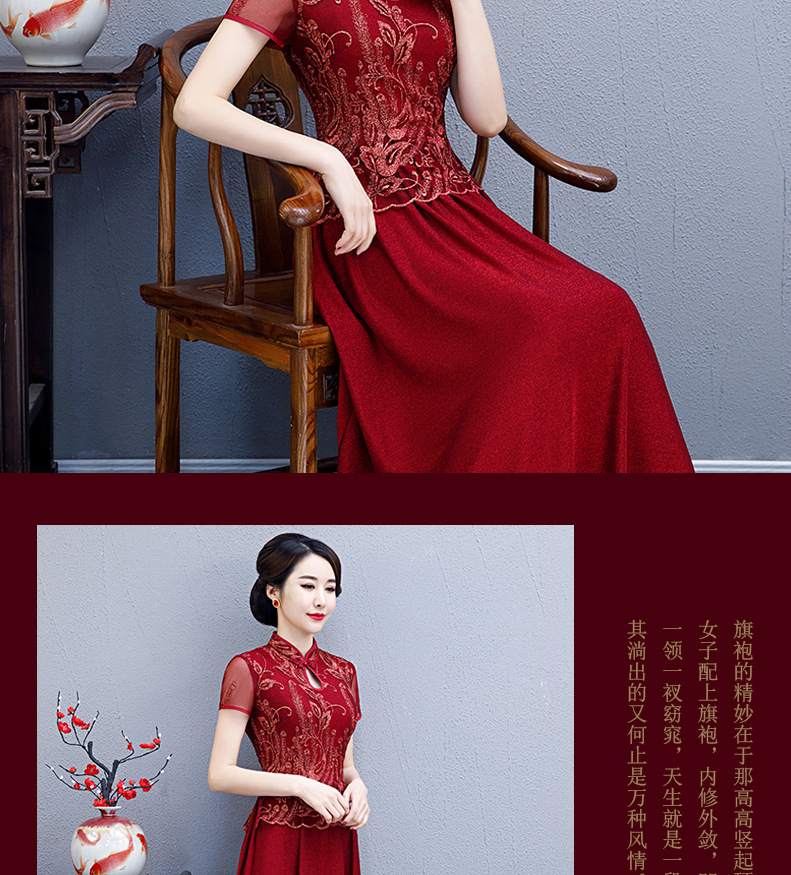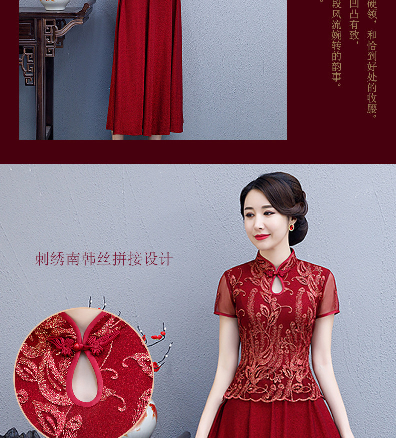 WXG-1950新款中式复古长款南韩丝礼服旗袍连衣裙