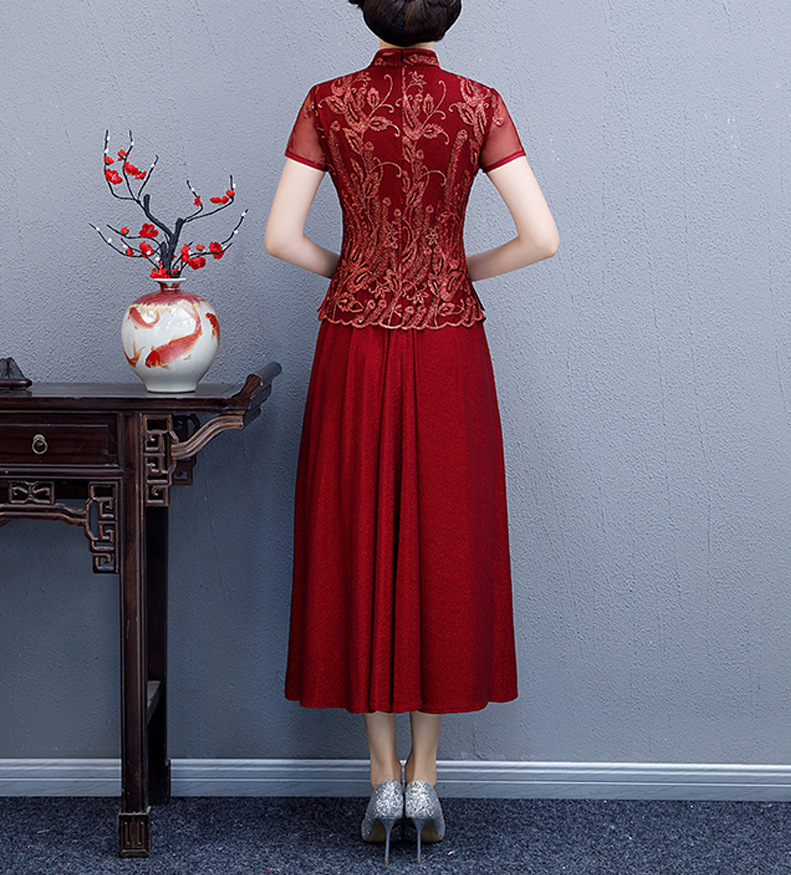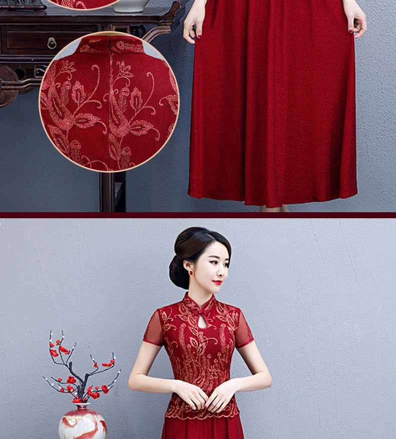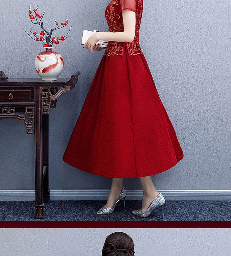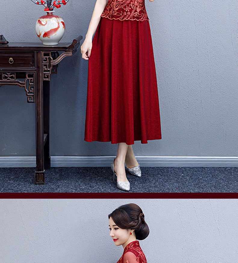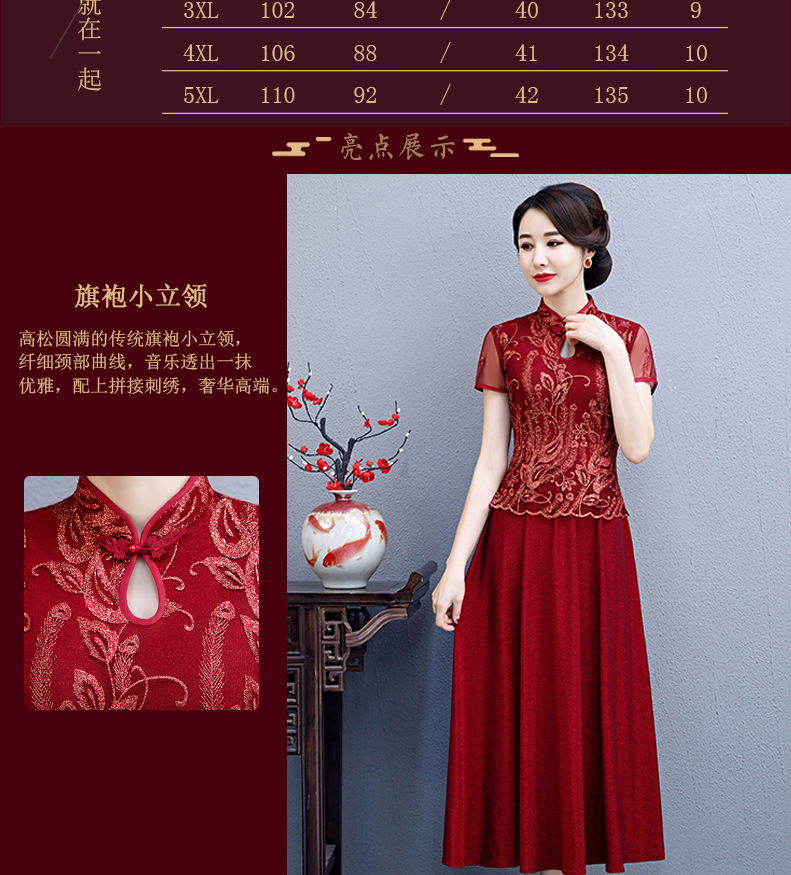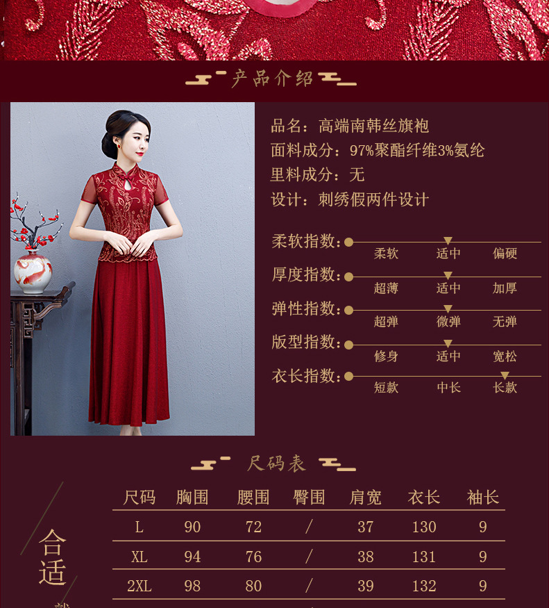 WXG-1950新款中式复古长款南韩丝礼服旗袍连衣裙