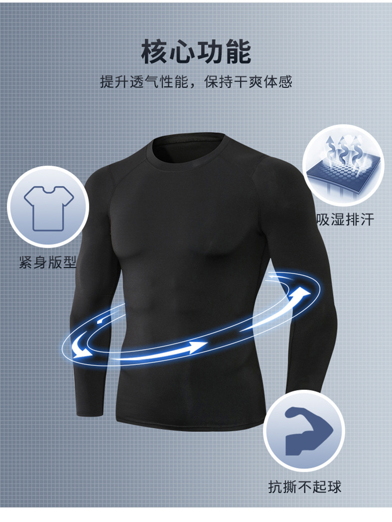 跃牌【欲动春风】男装系列 男士秋冬新款运动长袖户外跑步紧身训练T恤11515